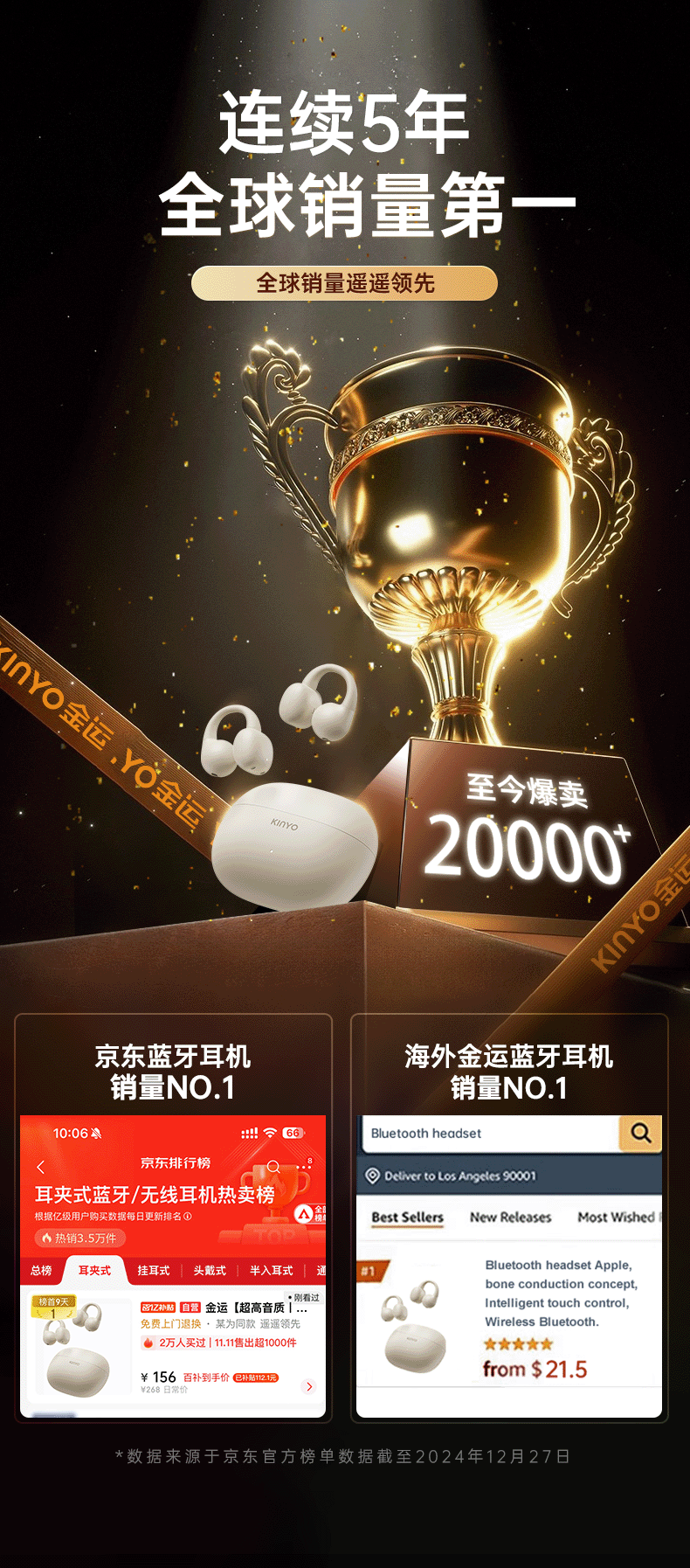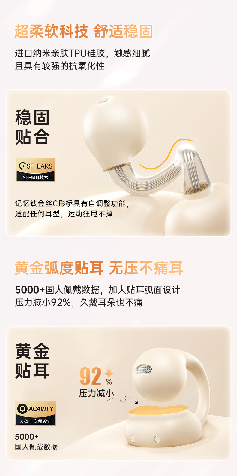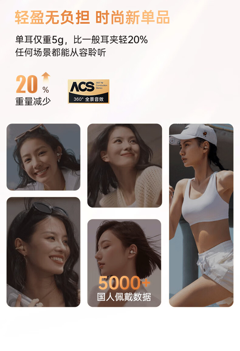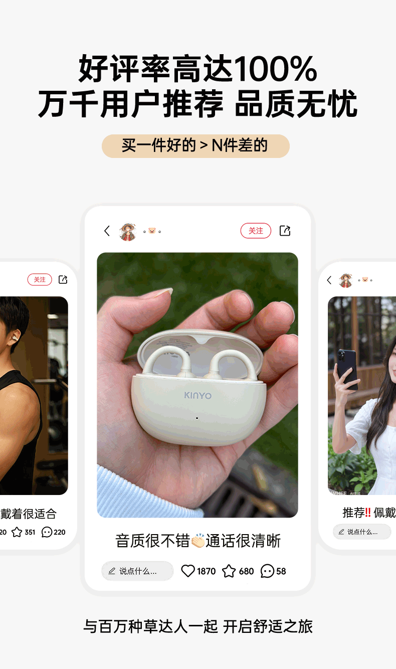 金运(KINYO)【音质0差评丨云柔亲肤】蓝牙耳机骨传导概念耳夹式无线跑步通话降噪排行前十金榜第1名i2