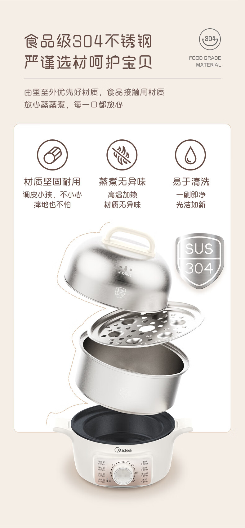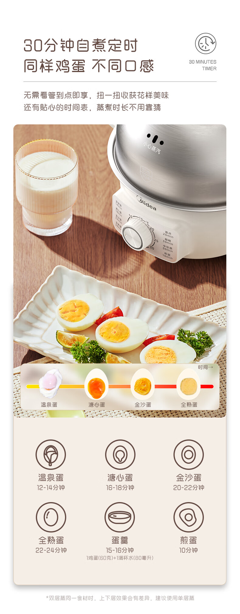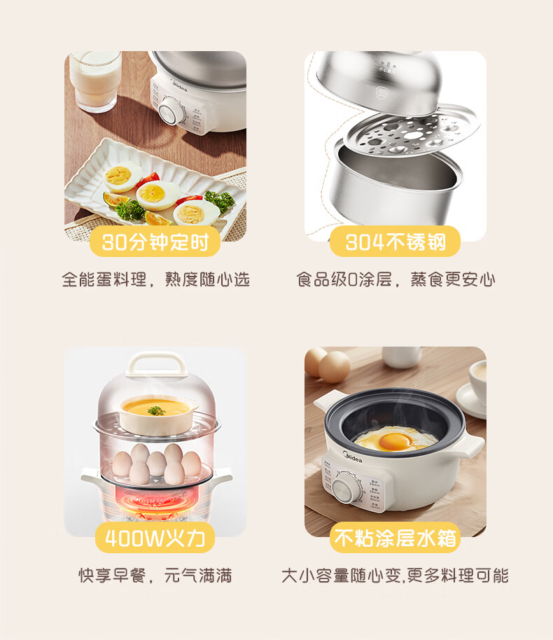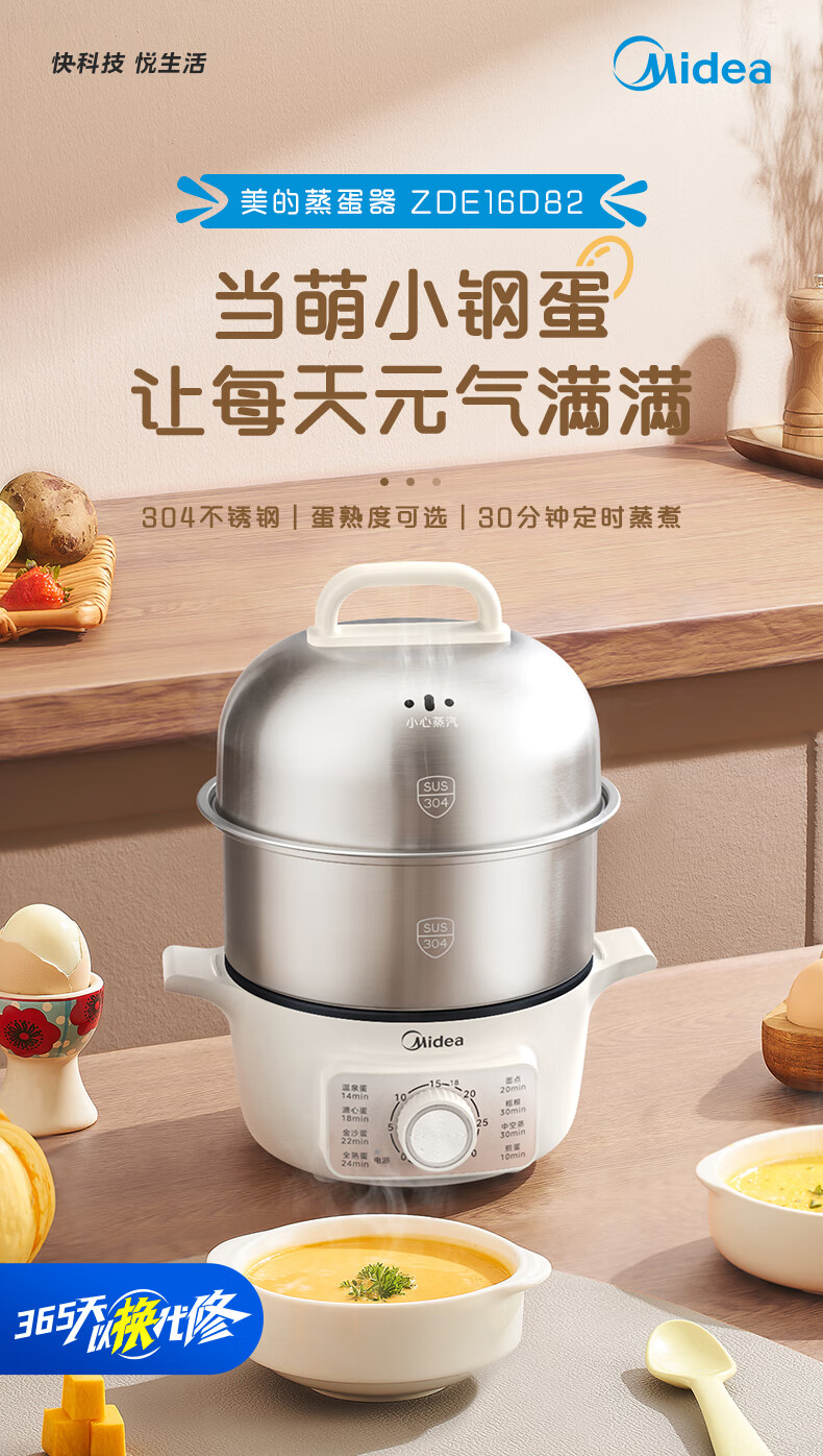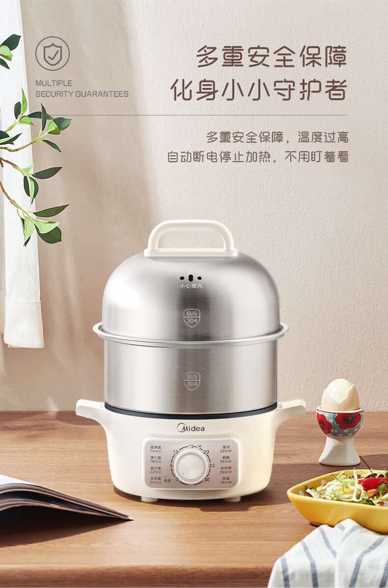 美的(Midea)【政府补贴】煮蛋器蒸蛋器双层家用自动断电神器防干烧不锈钢便携式家用煮蛋器MZ-ZDE16D82