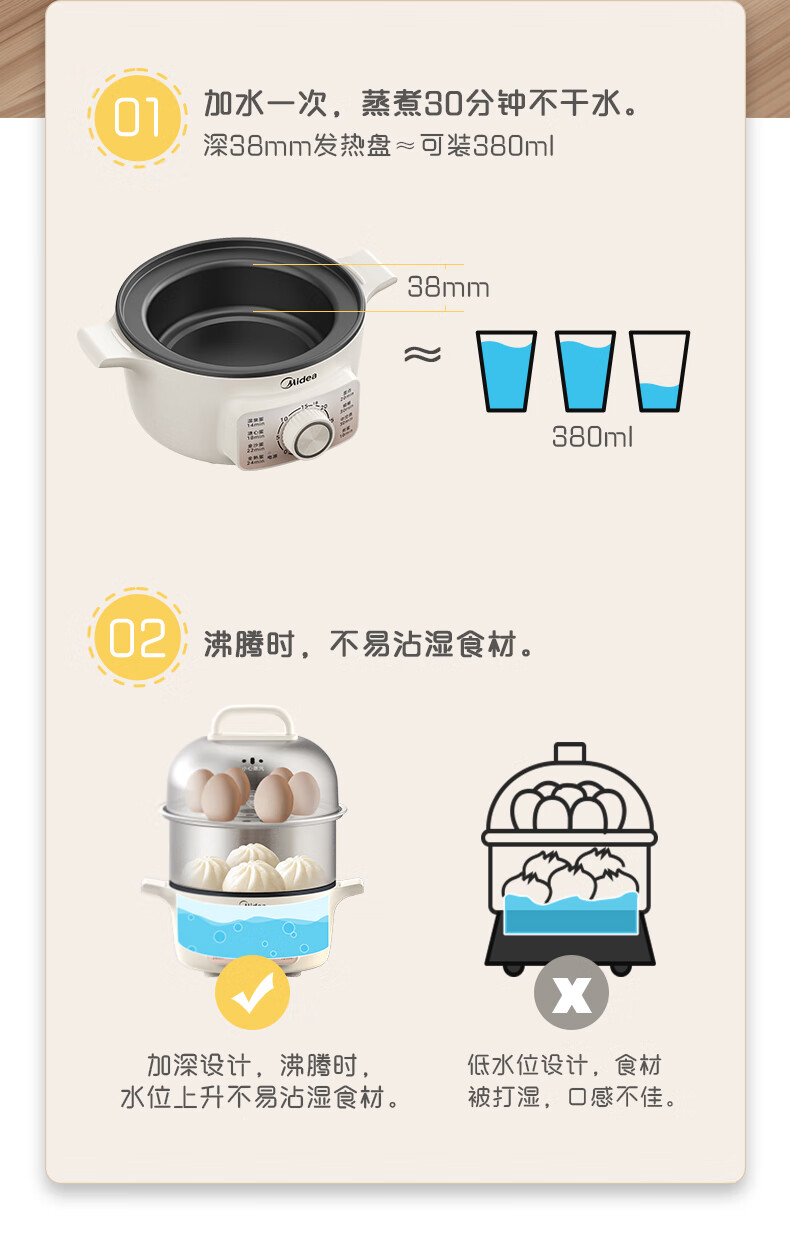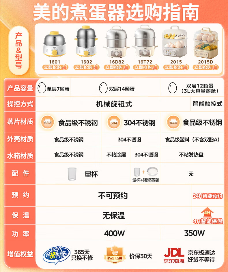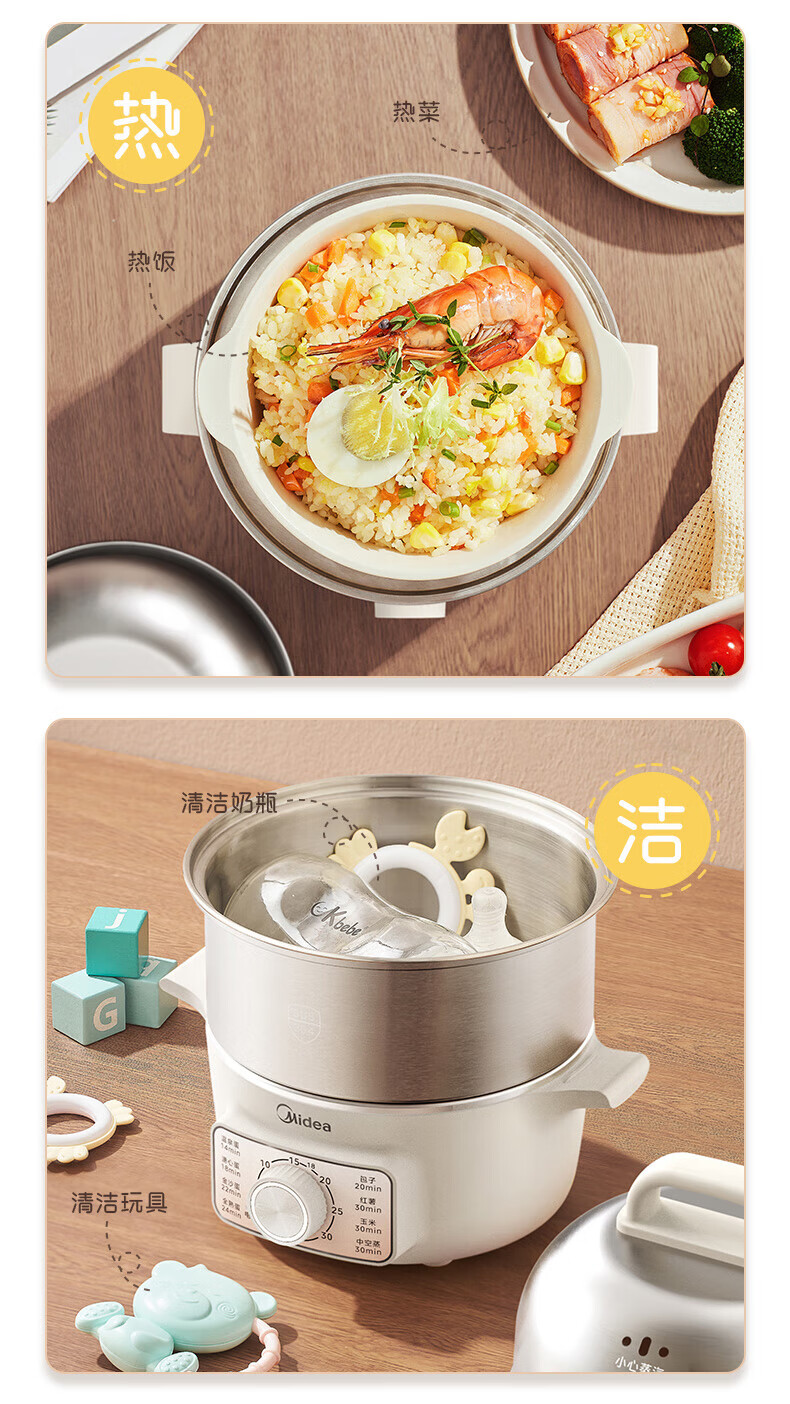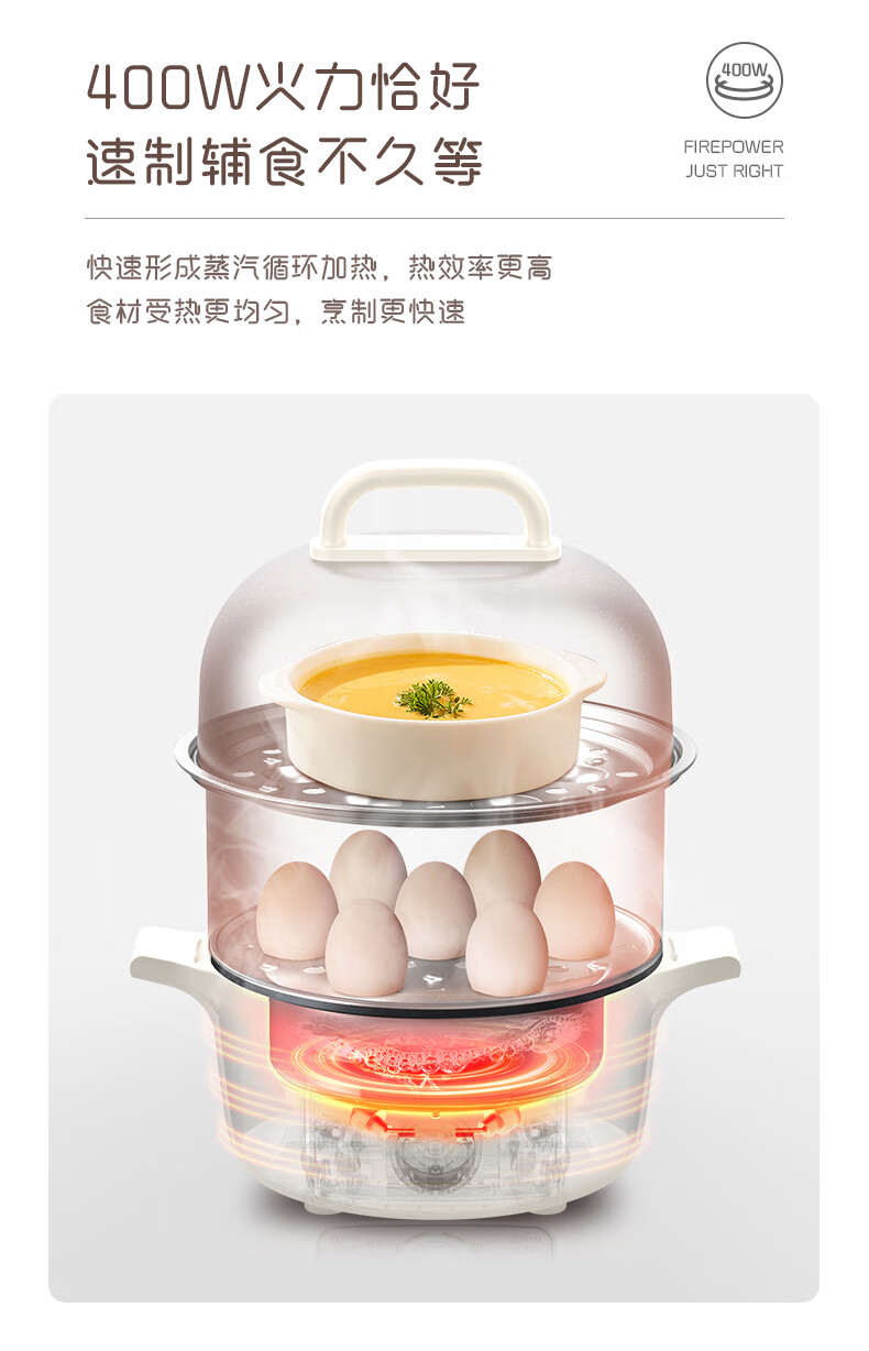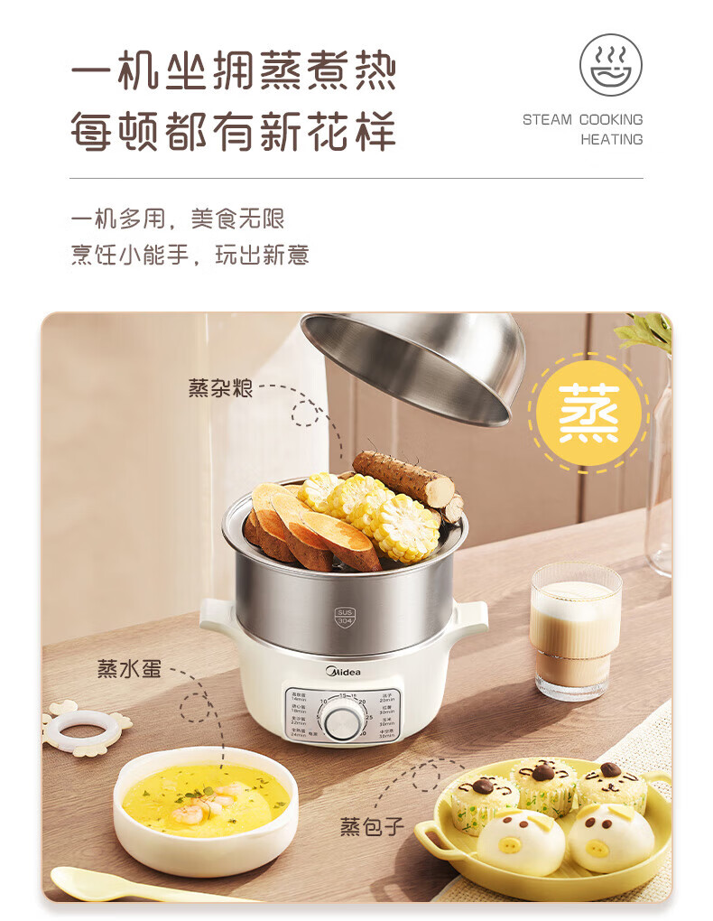 美的(Midea)【政府补贴】煮蛋器蒸蛋器双层家用自动断电神器防干烧不锈钢便携式家用煮蛋器MZ-ZDE16D82