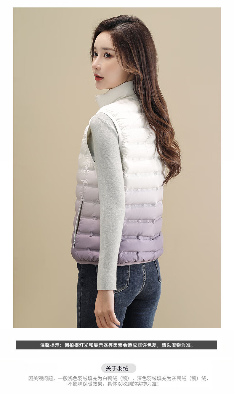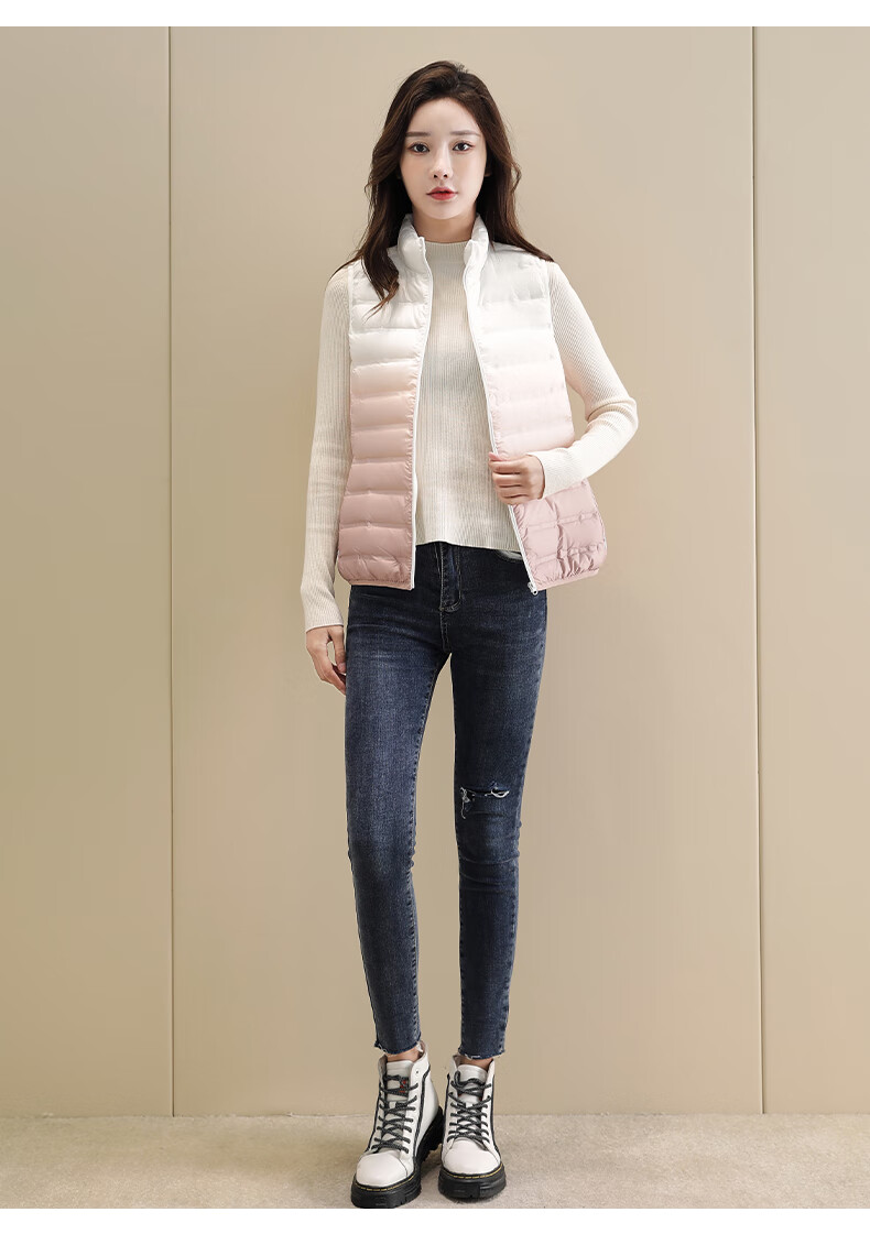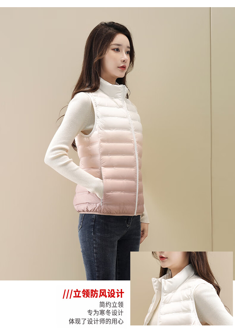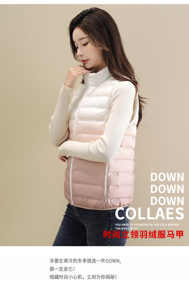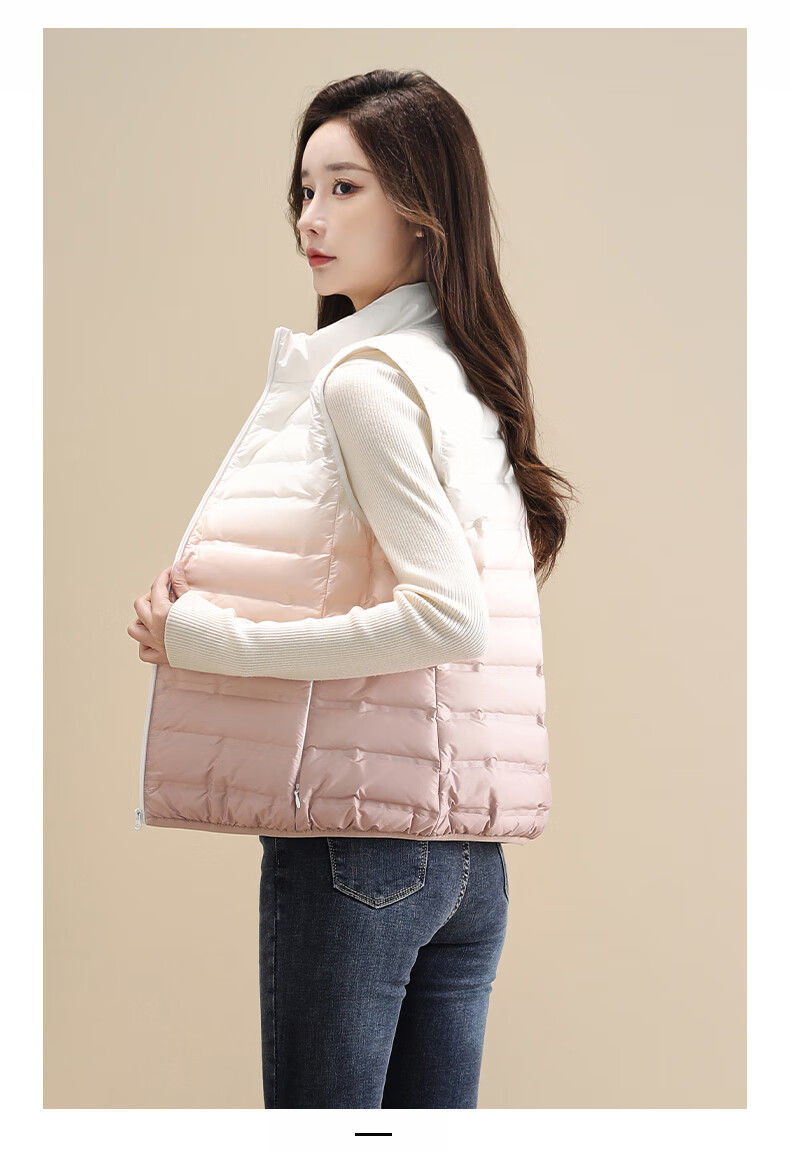 鸭鸭(YAYA)轻薄款羽绒服女秋冬新款马甲渐变立领宽松直筒内搭鸭绒背心外穿 渐变粉色 M 【120斤以内】