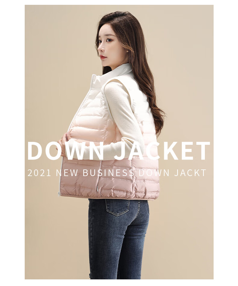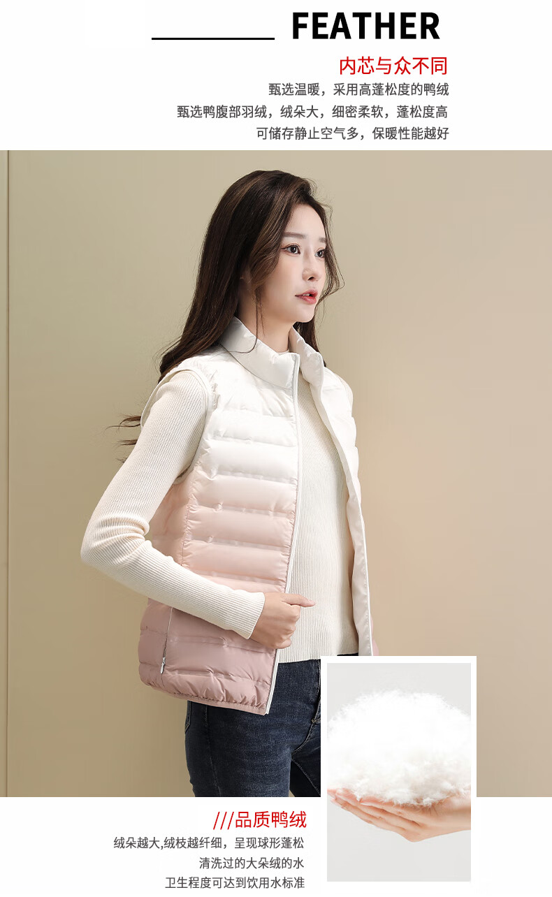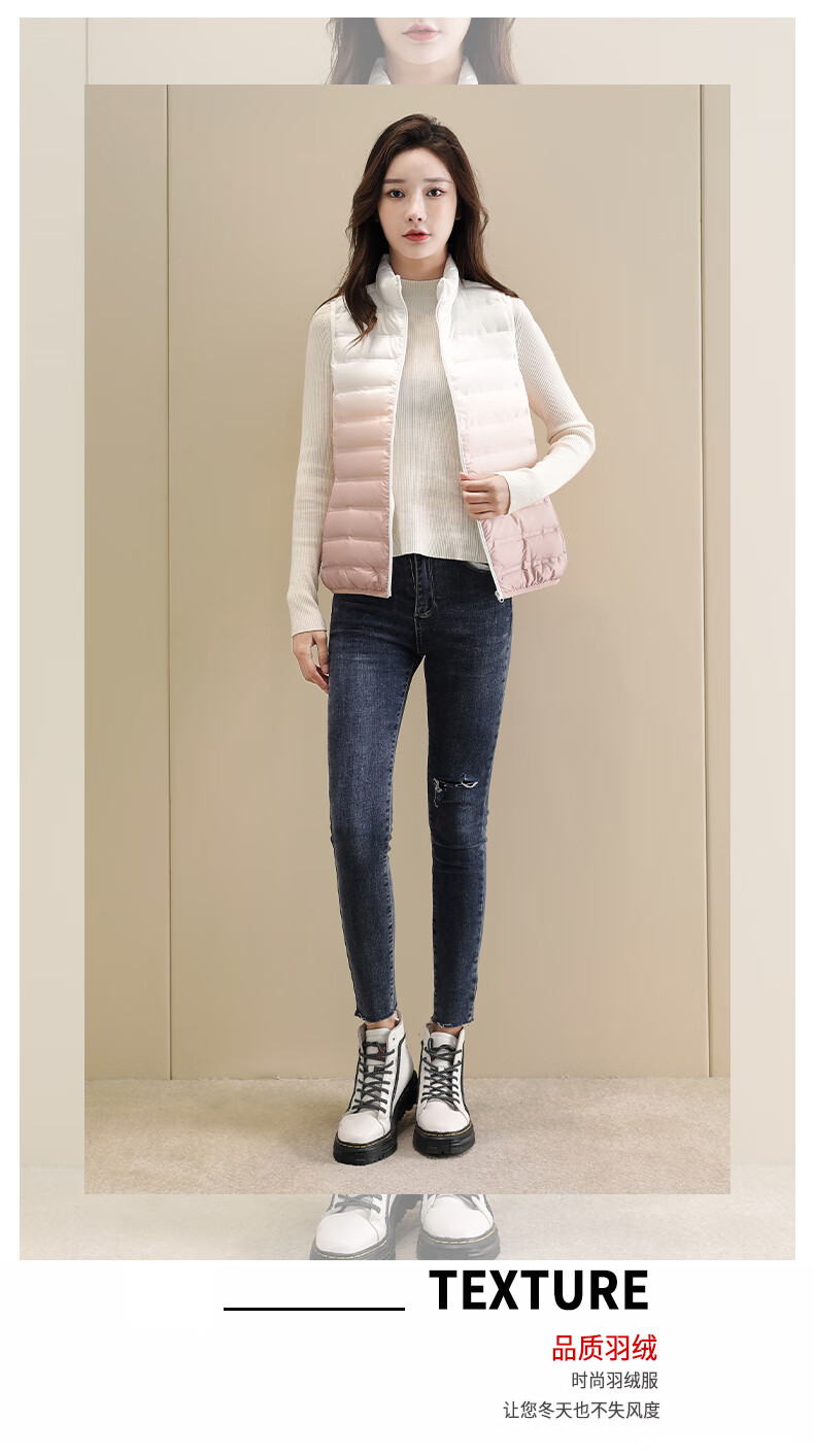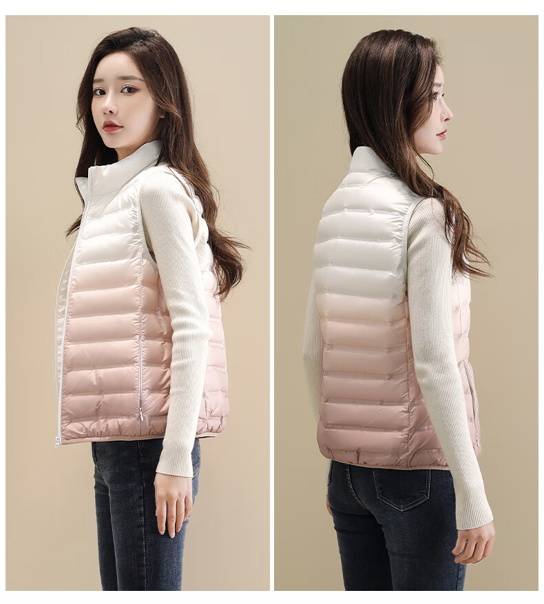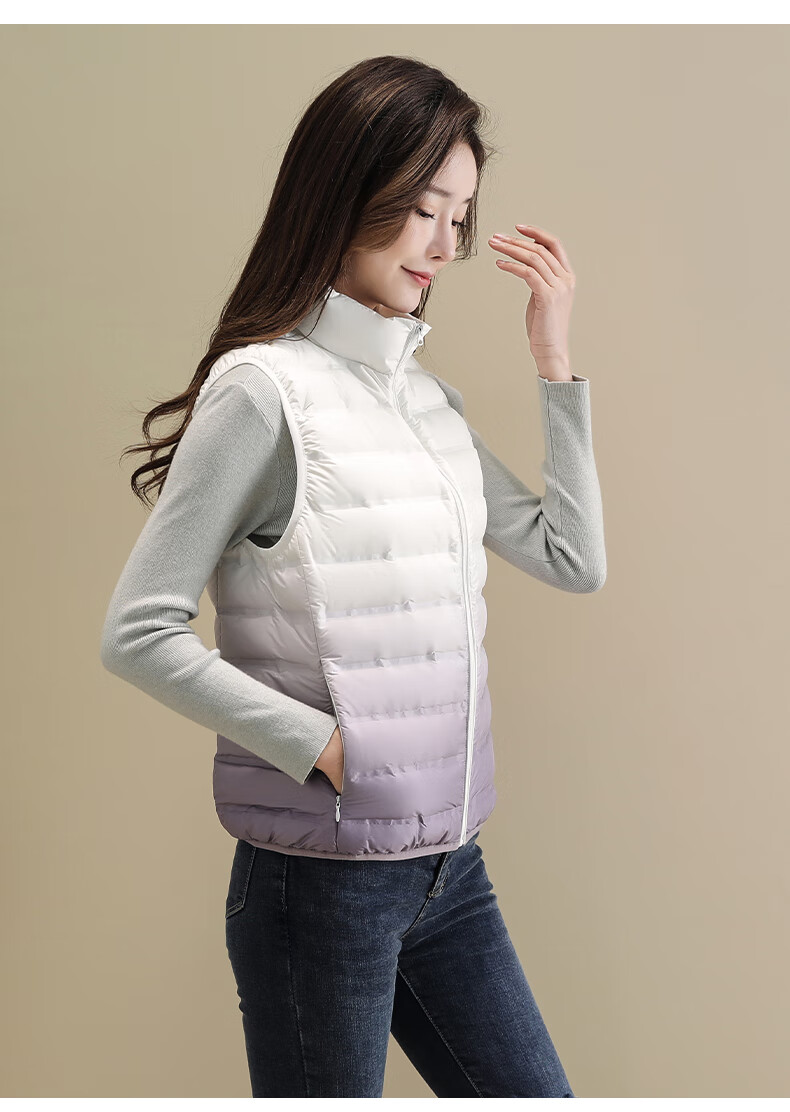 鸭鸭(YAYA)轻薄款羽绒服女秋冬新款马甲渐变立领宽松直筒内搭鸭绒背心外穿 渐变粉色 M 【120斤以内】