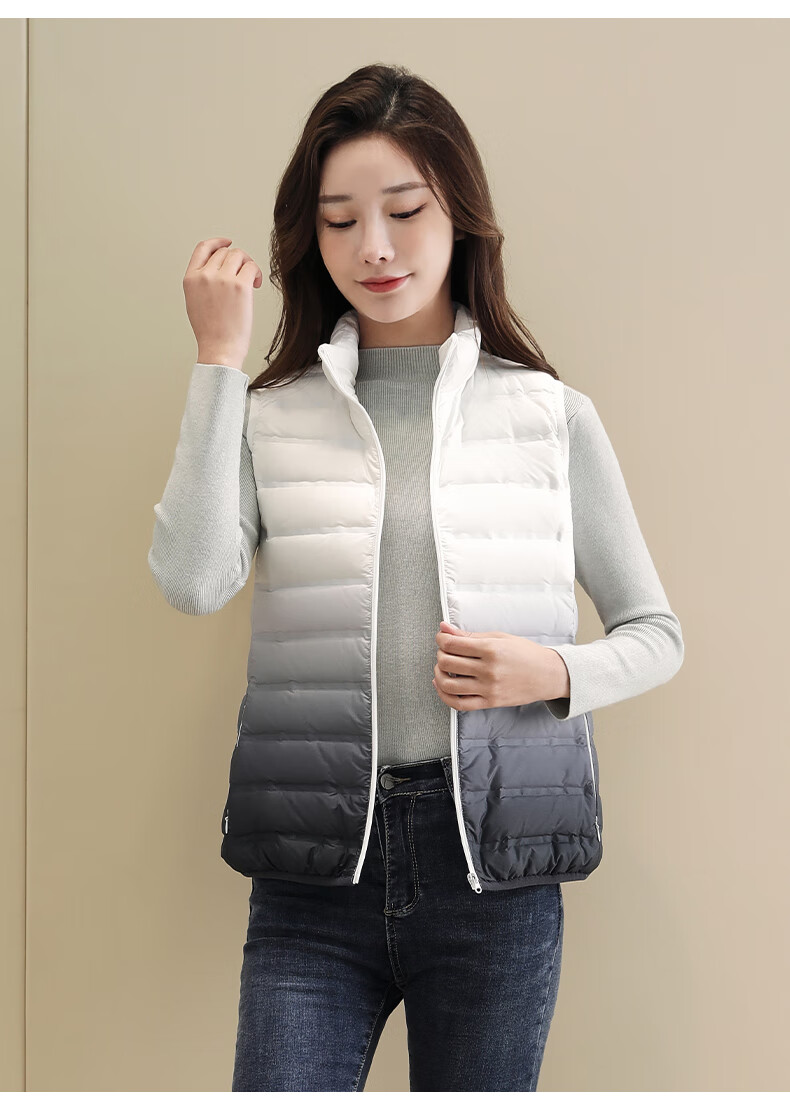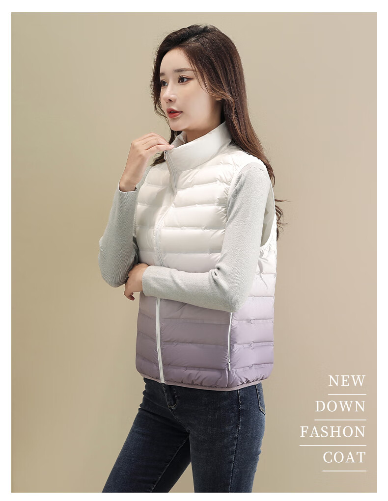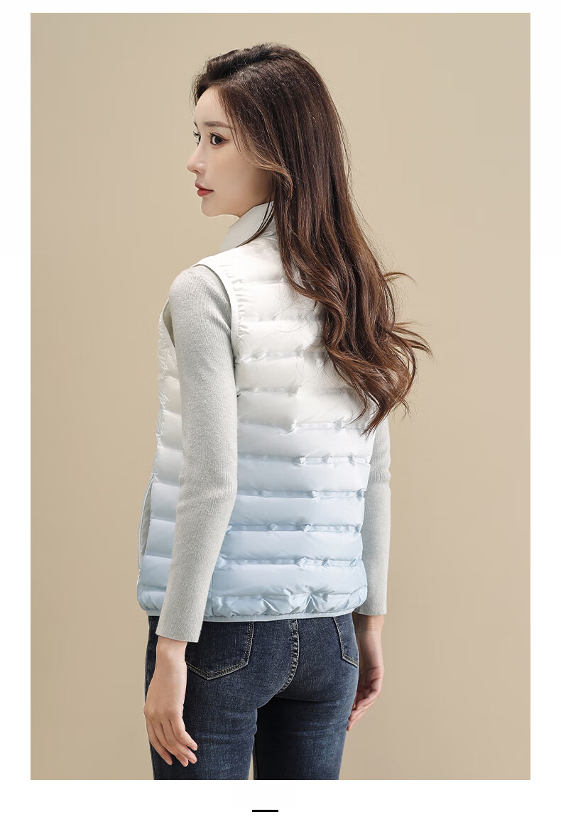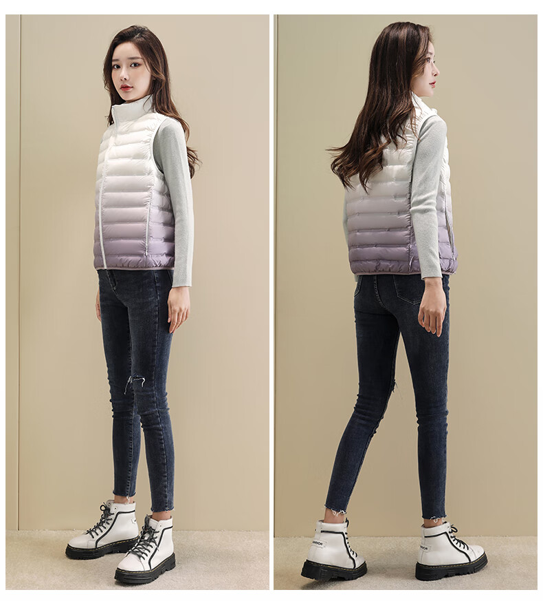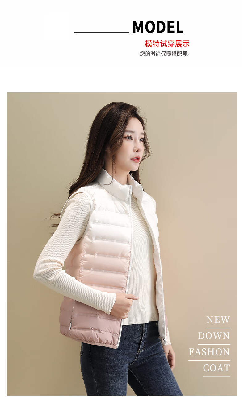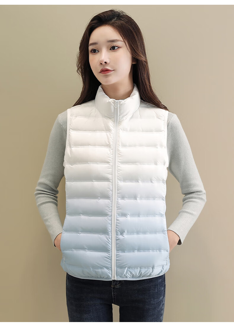 鸭鸭(YAYA)轻薄款羽绒服女秋冬新款马甲渐变立领宽松直筒内搭鸭绒背心外穿 渐变粉色 M 【120斤以内】