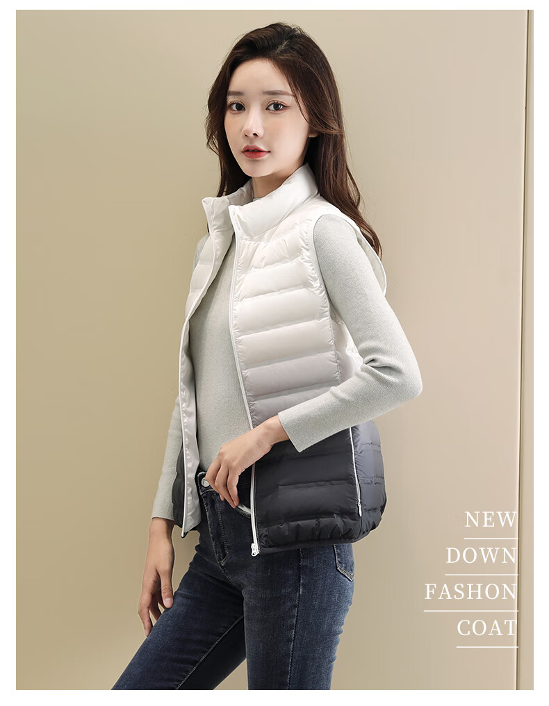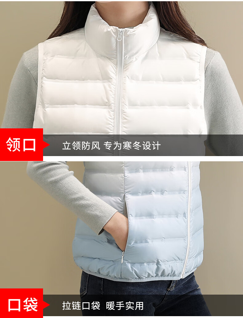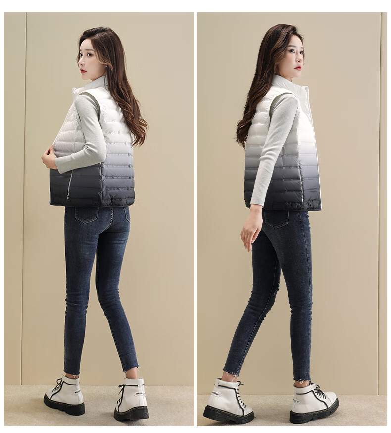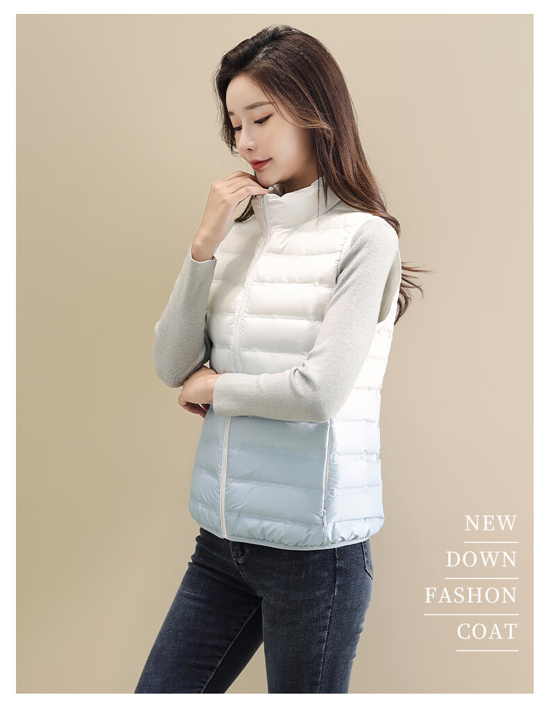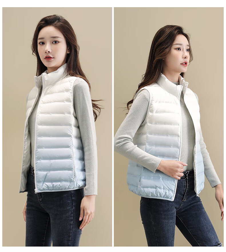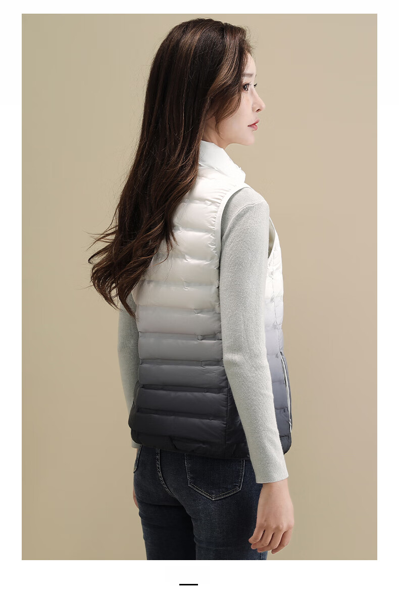 鸭鸭(YAYA)轻薄款羽绒服女秋冬新款马甲渐变立领宽松直筒内搭鸭绒背心外穿 渐变粉色 M 【120斤以内】