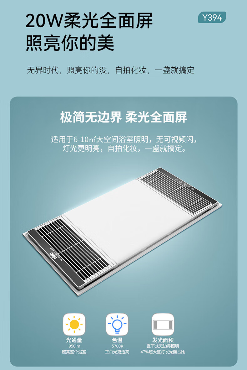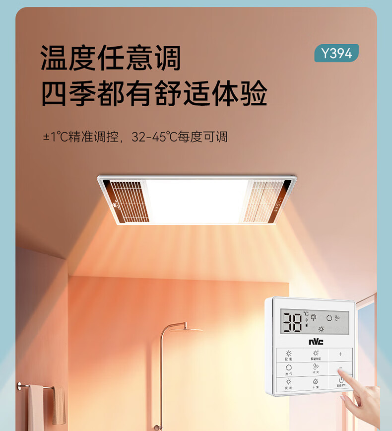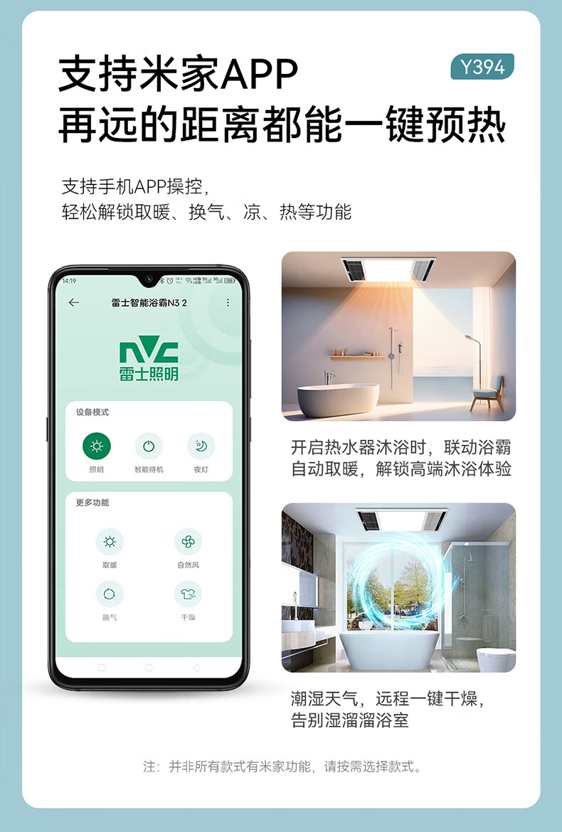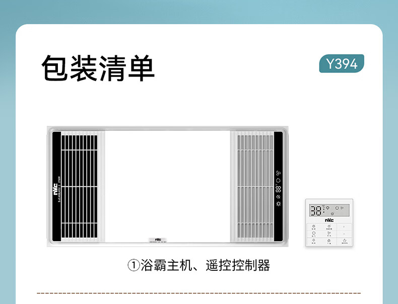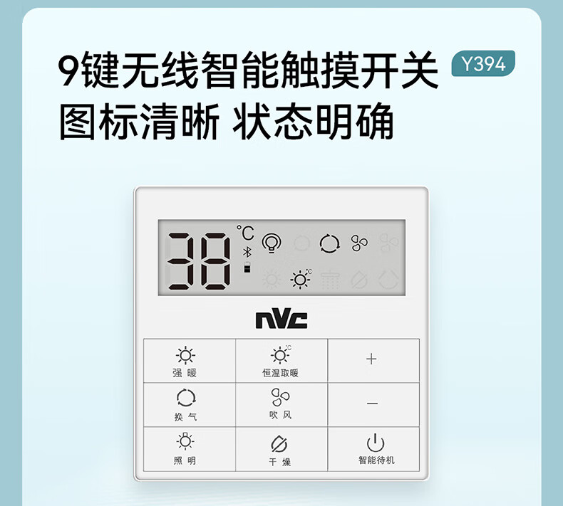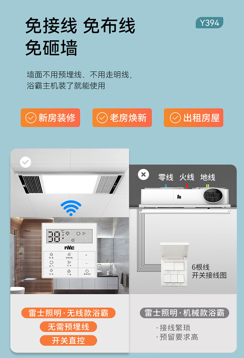 雷士(NVC)风暖无线变频浴霸浴室取暖器暖风照明排气一体卫生间集成吊顶Y394 2700W|精准1℃控温