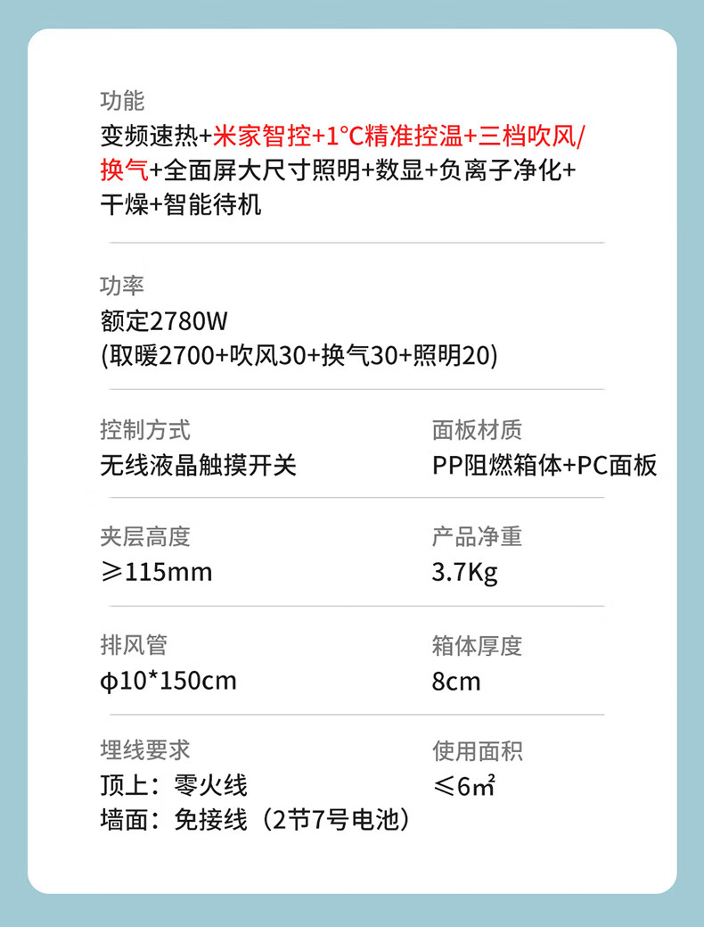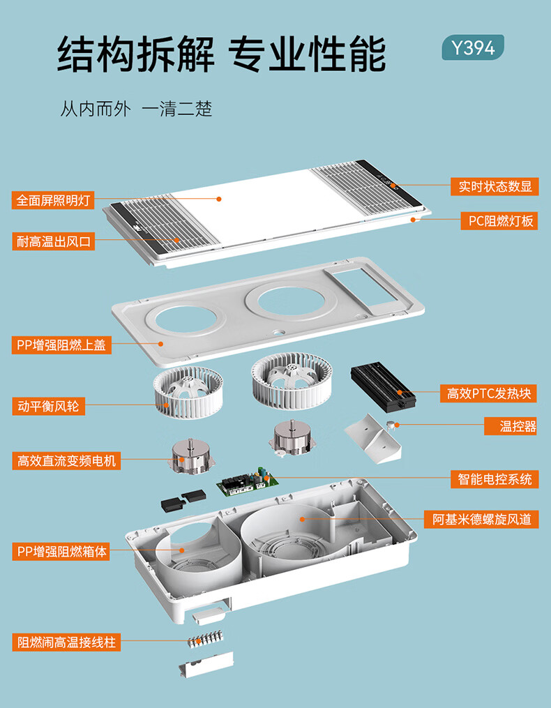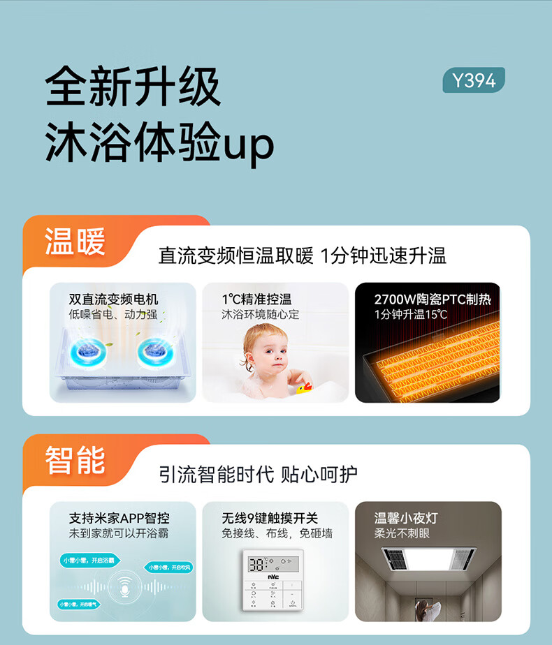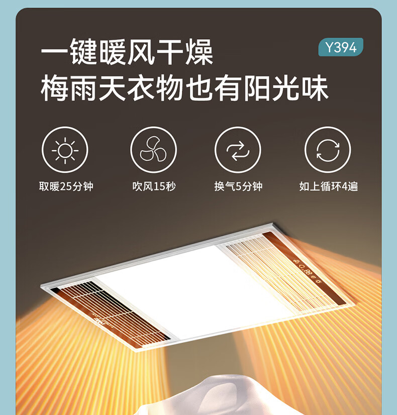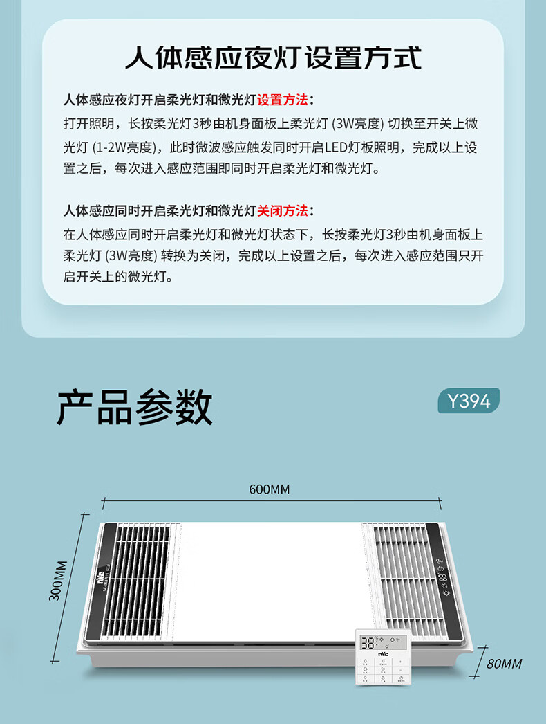 雷士(NVC)风暖无线变频浴霸浴室取暖器暖风照明排气一体卫生间集成吊顶Y394 2700W|精准1℃控温