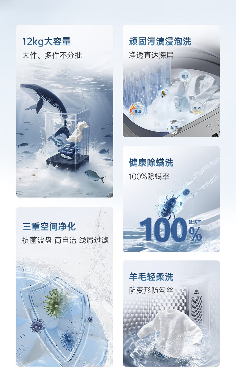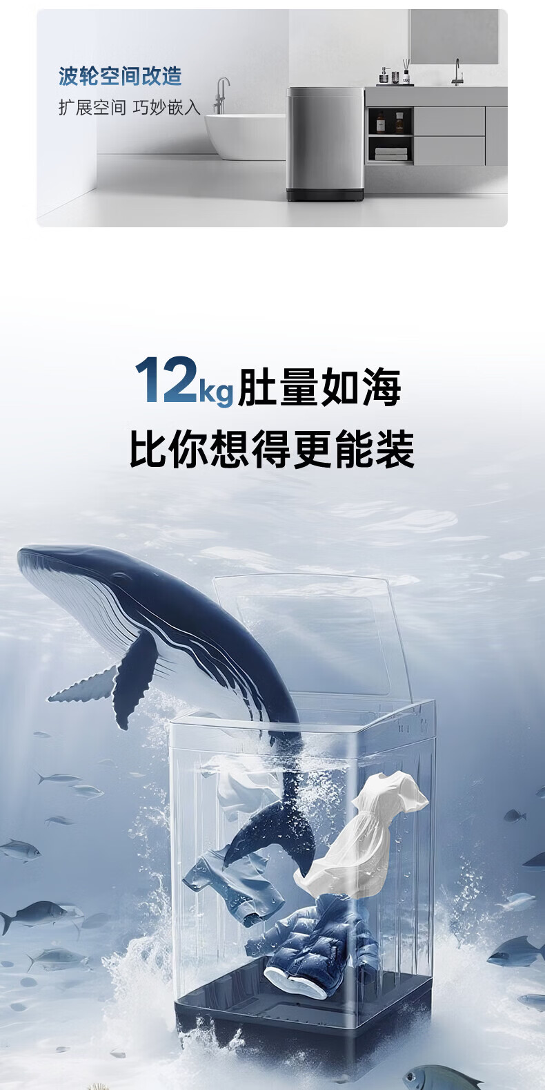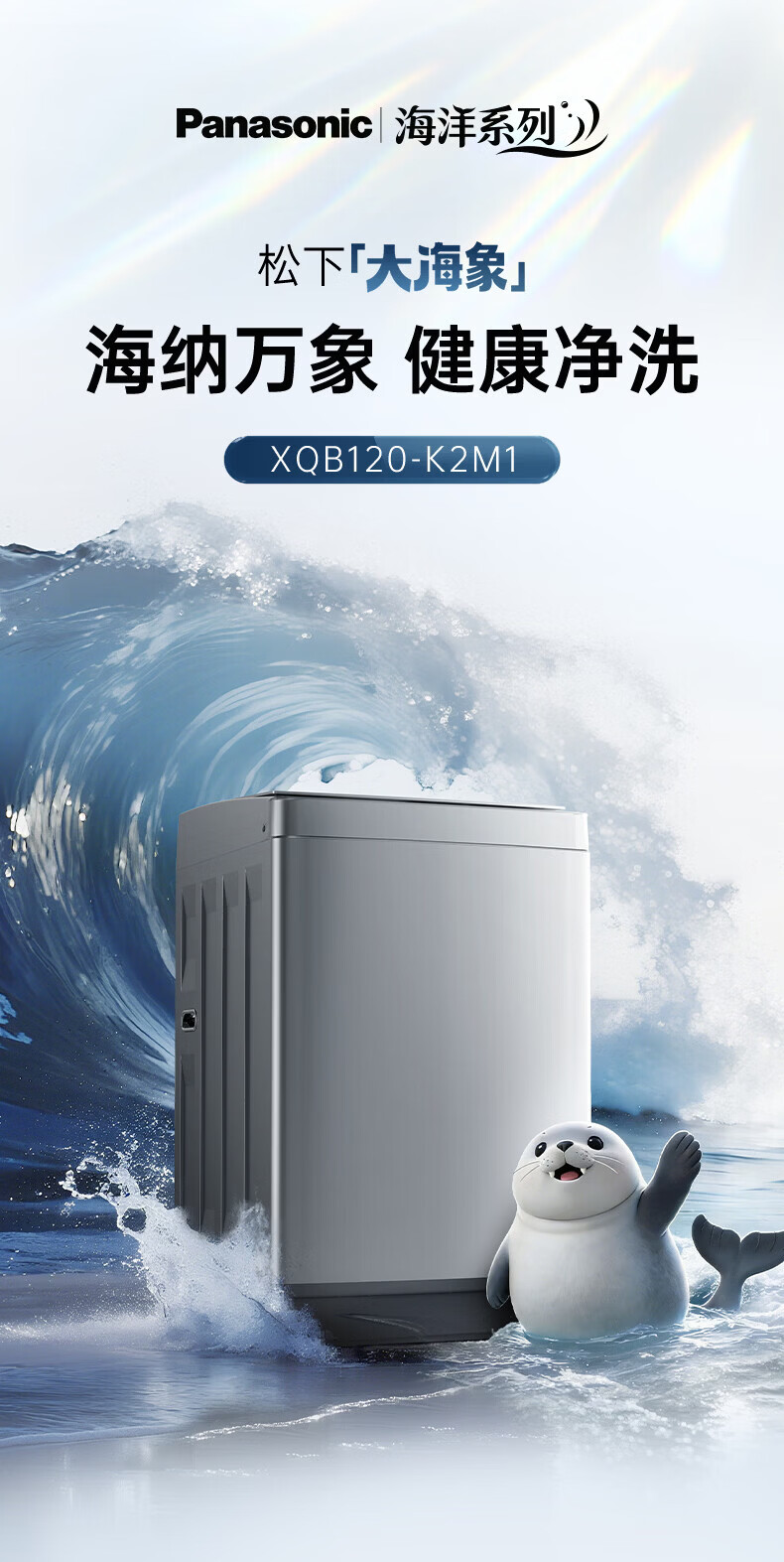 松下(Panasonic)12KG全自动波轮洗衣机家用节能节水深层洁净强力去污除菌除螨静音运行智能洗护省水省电健康洗衣 XQB120-K2M1 波轮 12kg