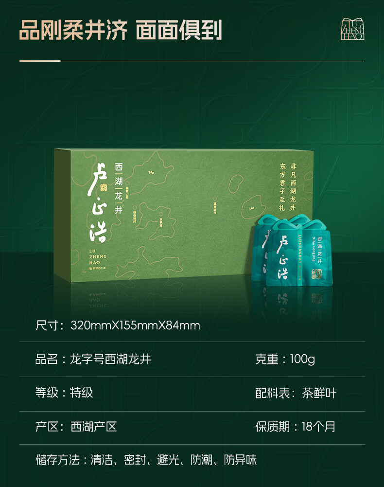 卢正浩绿茶龙字西湖龙井茶特级100g2026新茶上市明前茶叶礼盒源头直发