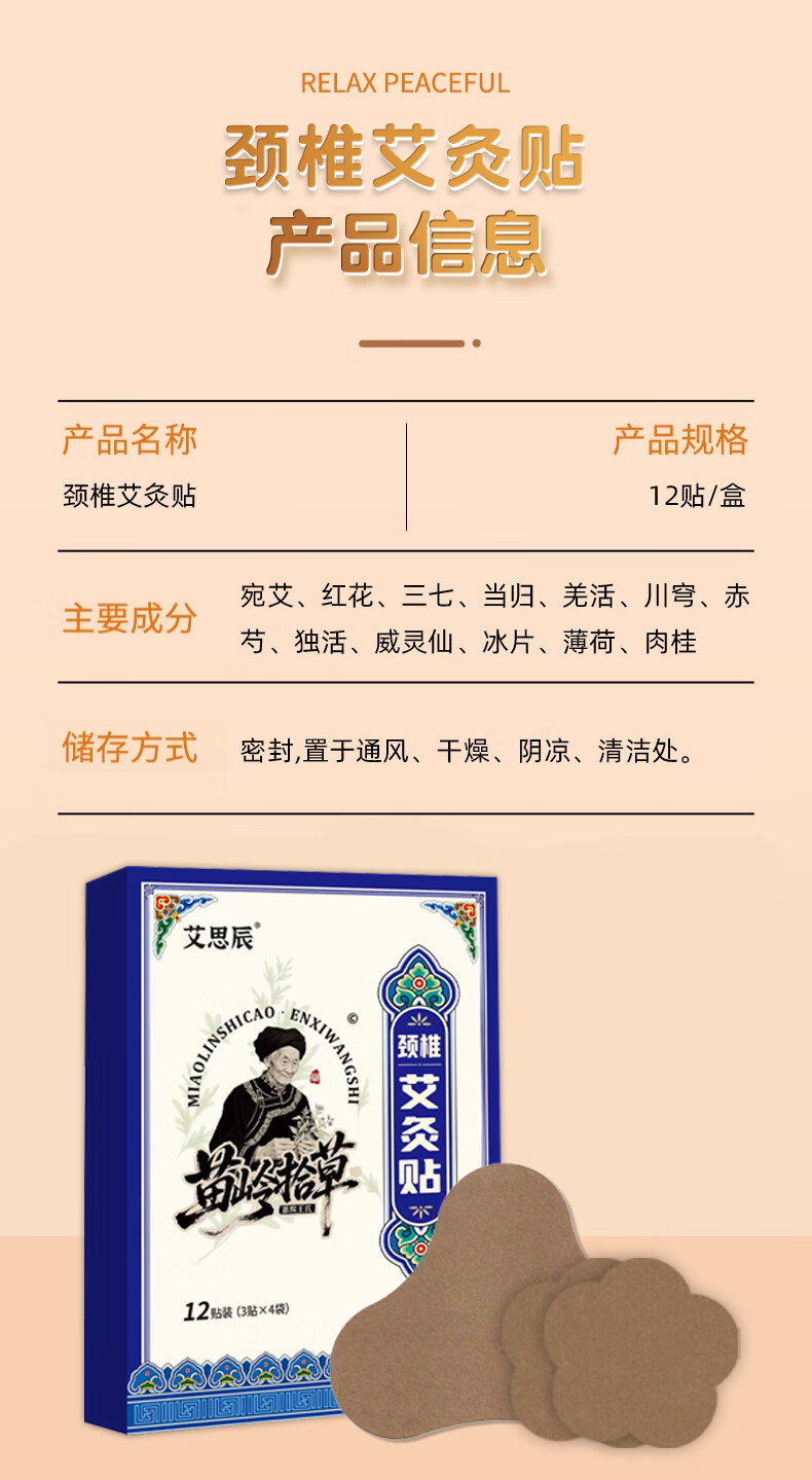 艾思辰颈椎艾灸贴肩颈热敷发热艾草暖贴肩周颈酸痛艾灸贴 【多人买】五盒装60贴