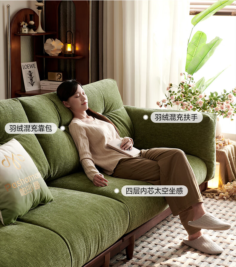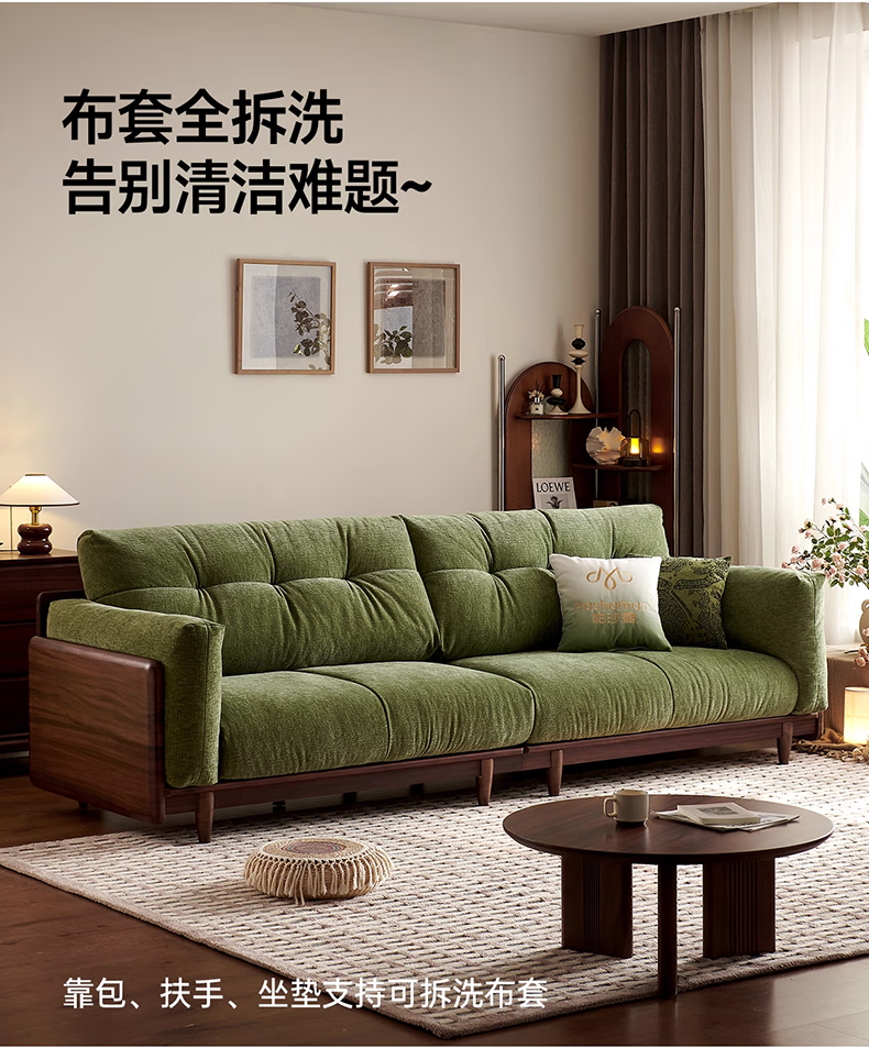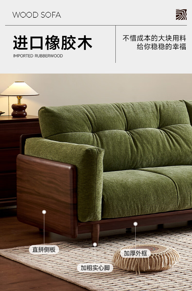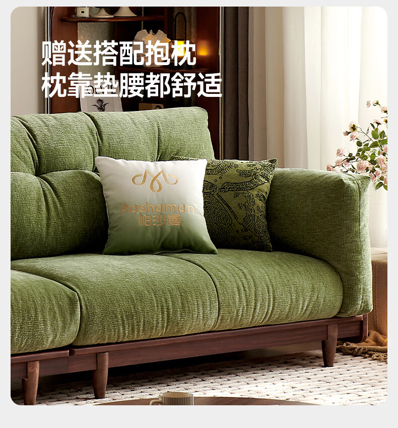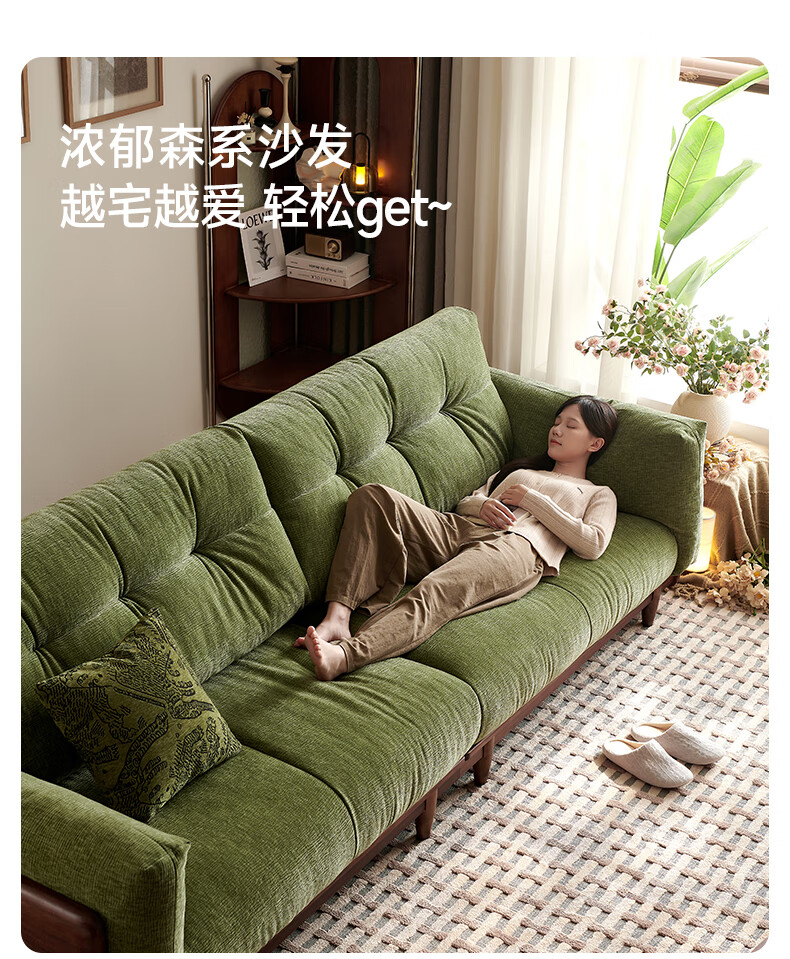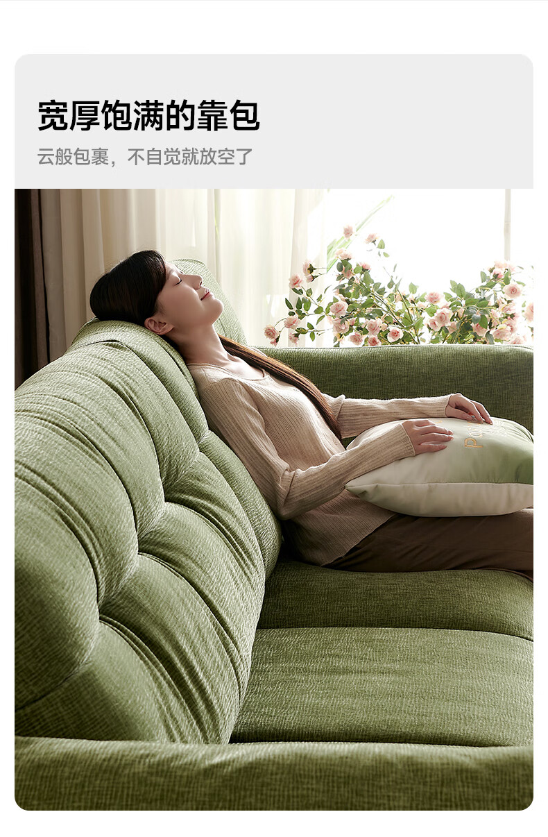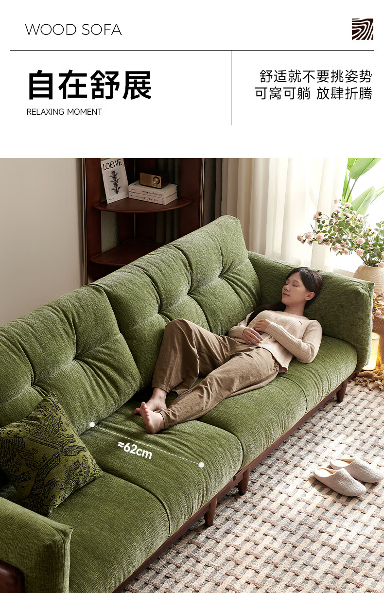 帕沙曼可拆洗云朵布艺沙发客厅小户型中古风实木沙发雪尼尔绿色MF100-Q 【松山绿】2.4米三人位[雪尼尔TY74] 抗菌雪尼尔TY74