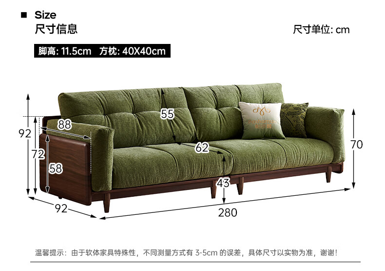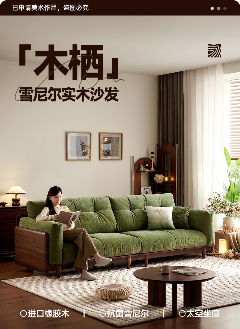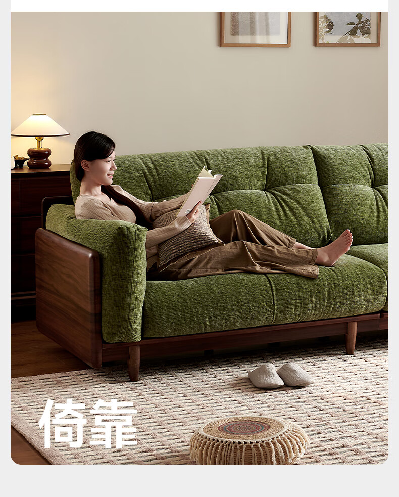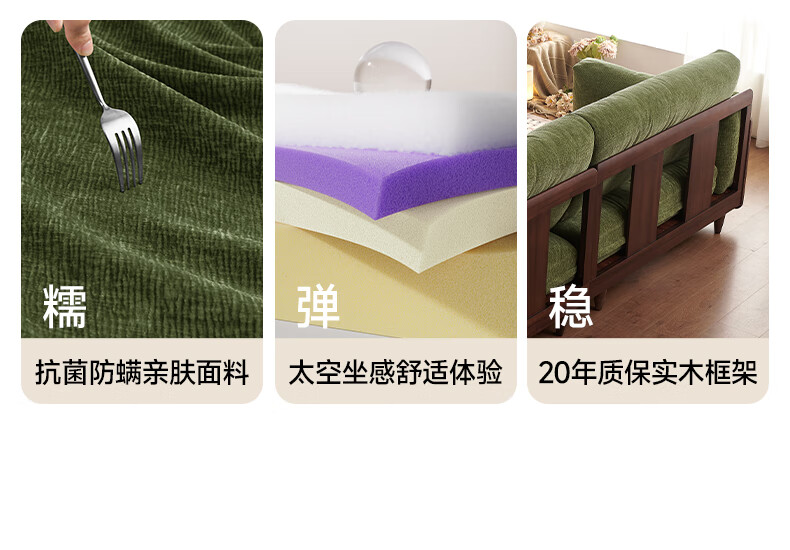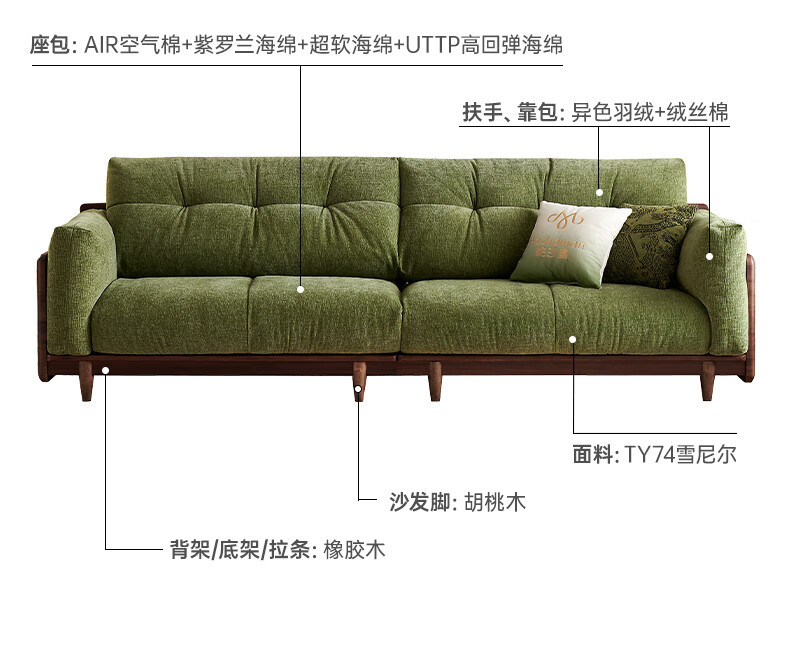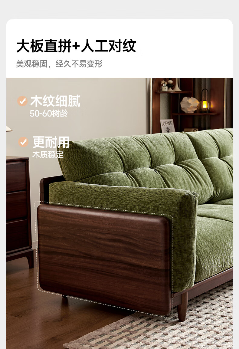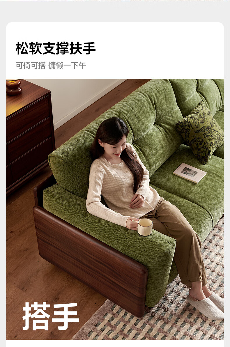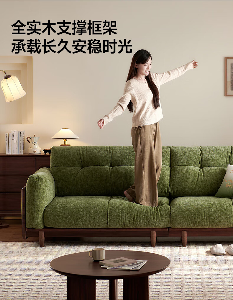 帕沙曼可拆洗云朵布艺沙发客厅小户型中古风实木沙发雪尼尔绿色MF100-Q 【松山绿】2.4米三人位[雪尼尔TY74] 抗菌雪尼尔TY74