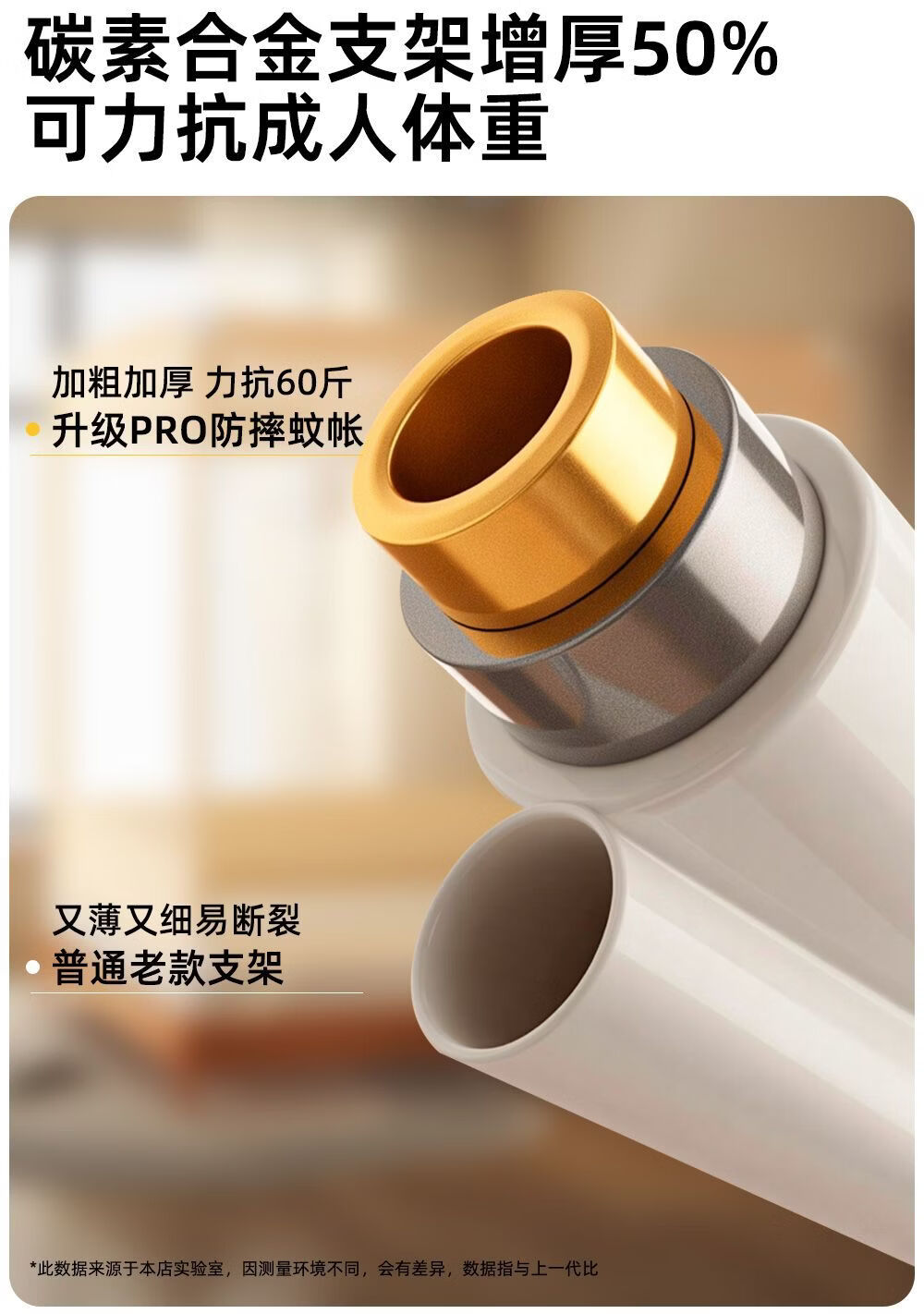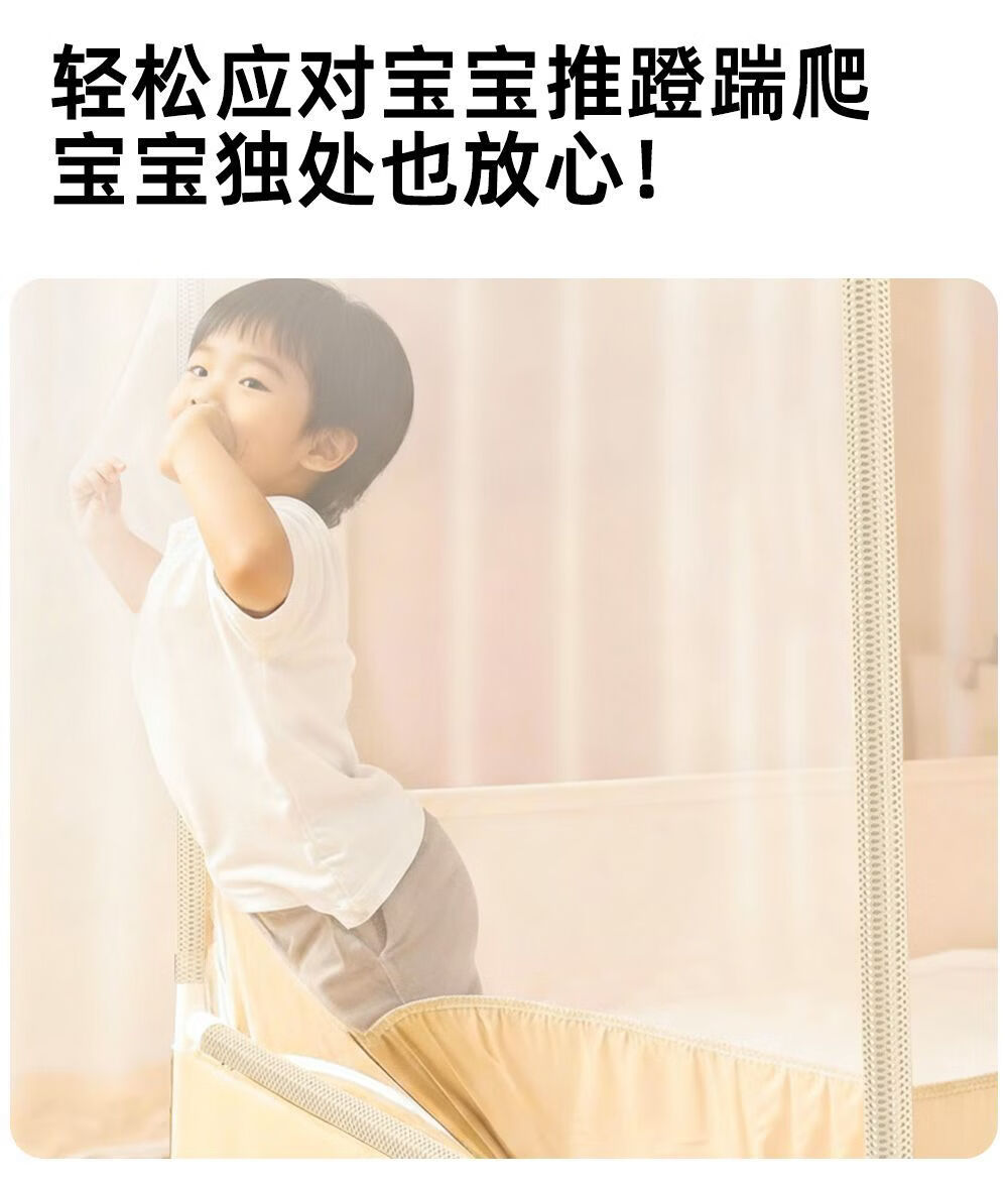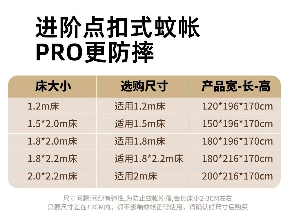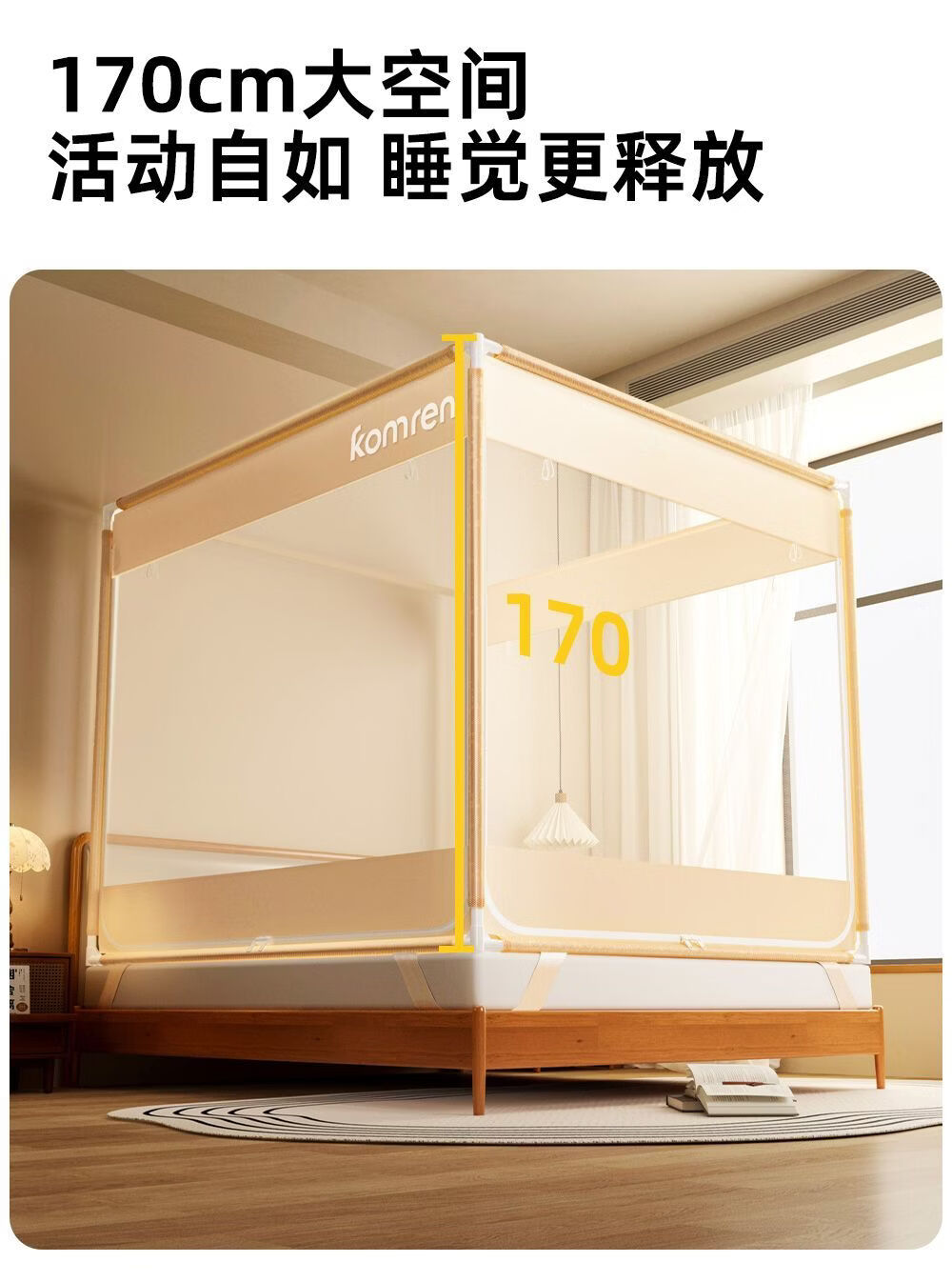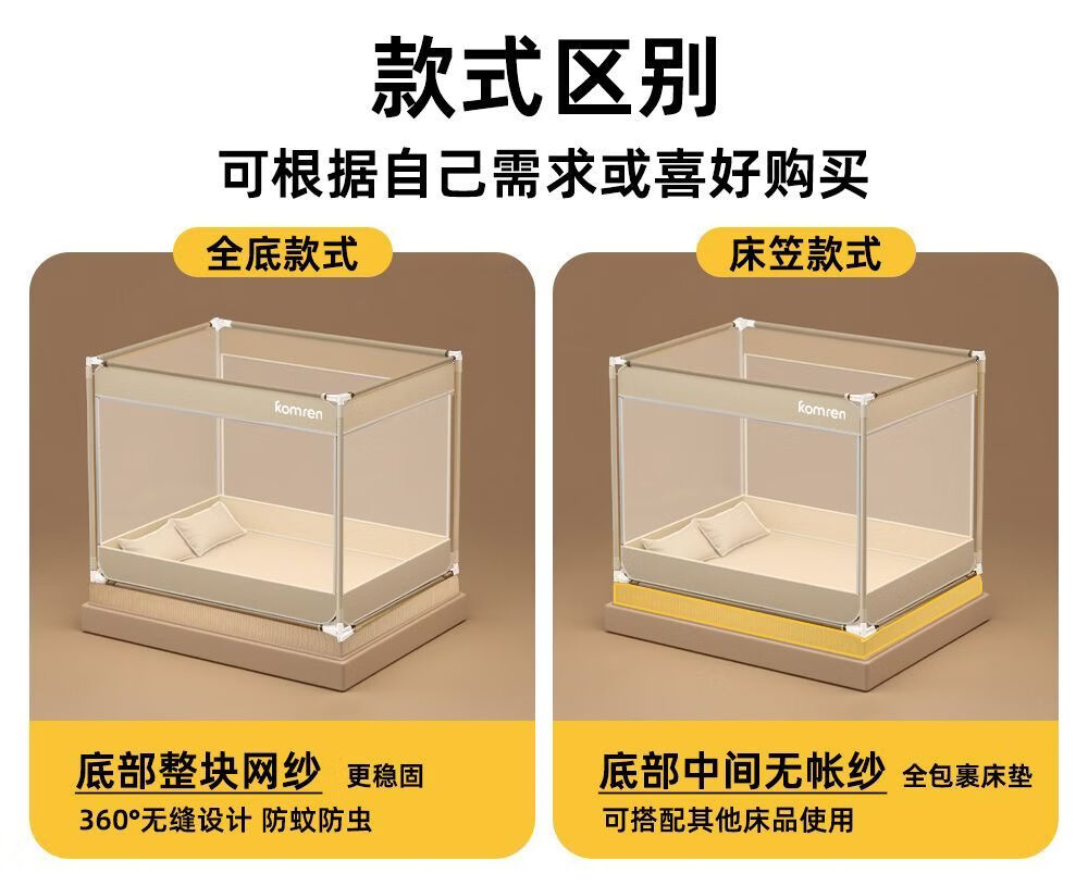 高睿A类卡扣防摔蚊帐家用2025新款卧室免安装儿童婴儿防掉床全底蚊帐 香槟米【全底款】A类抗菌帐纱大空间 宽2.0*长2.2m/升级点扣免拼接支架