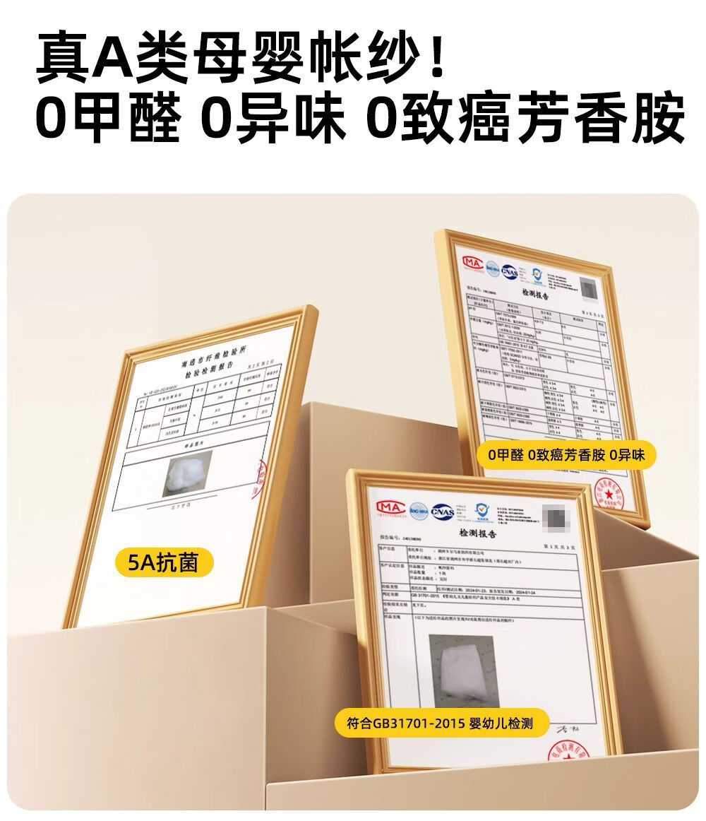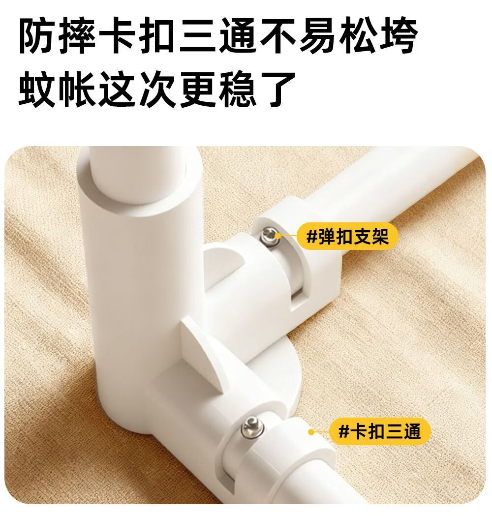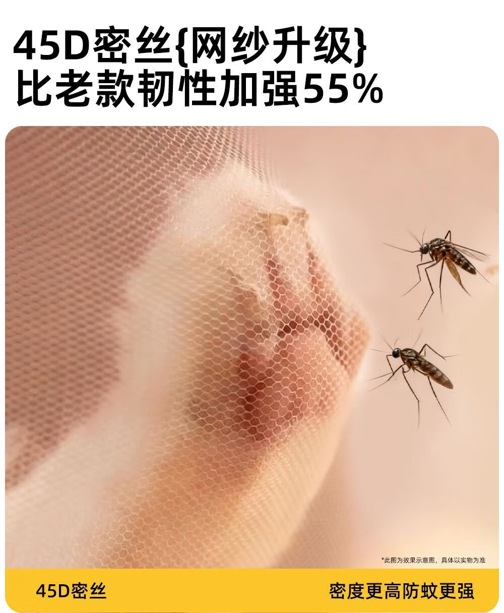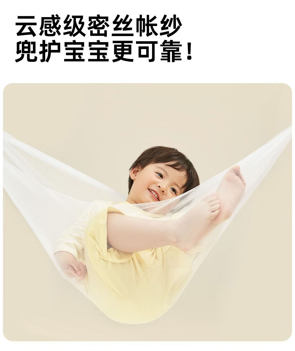 高睿A类卡扣防摔蚊帐家用2025新款卧室免安装儿童婴儿防掉床全底蚊帐 香槟米【全底款】A类抗菌帐纱大空间 宽2.0*长2.2m/升级点扣免拼接支架