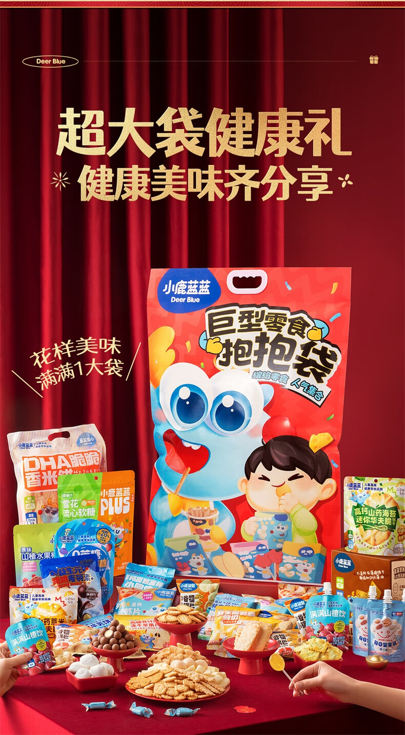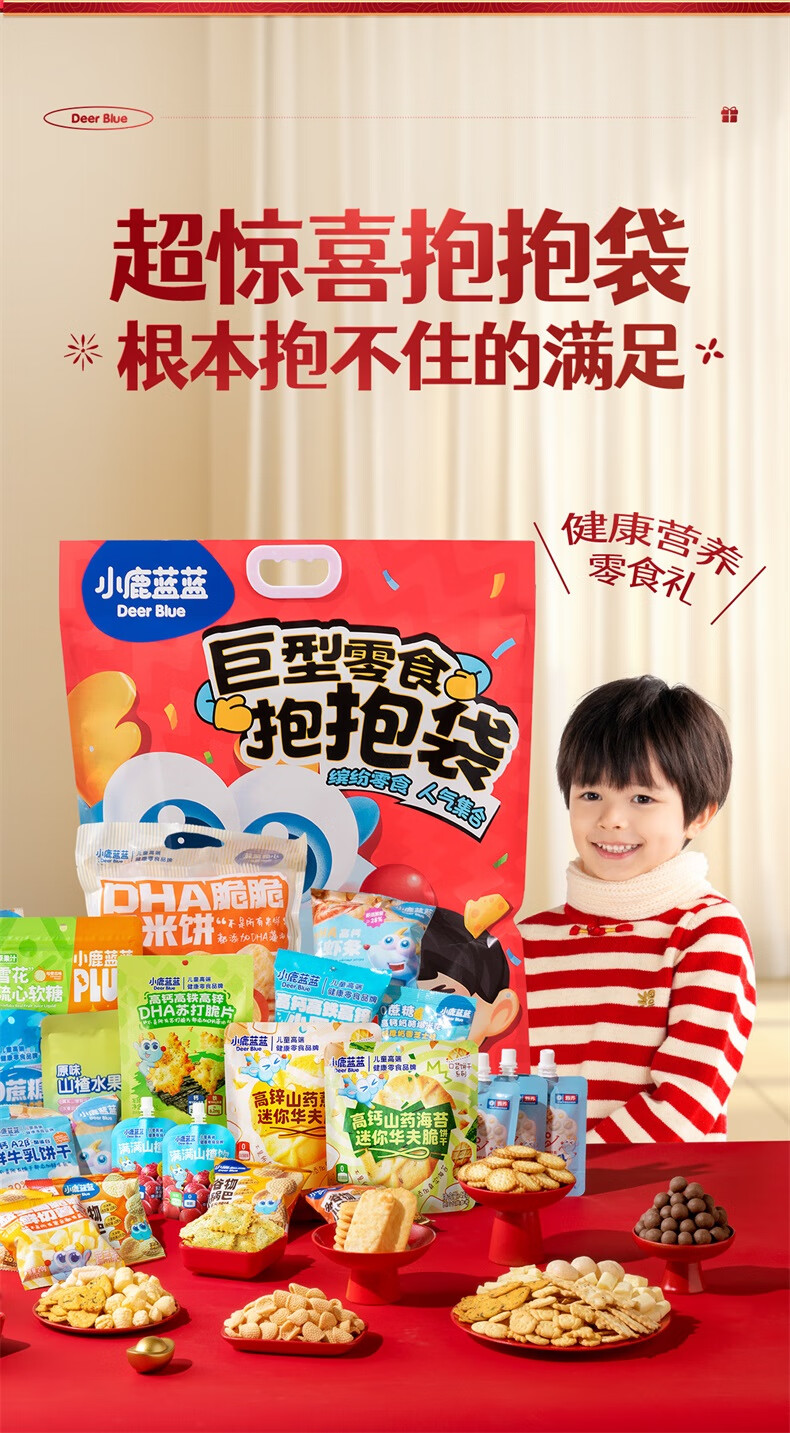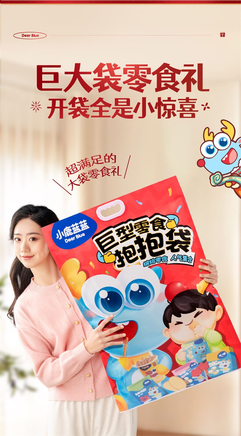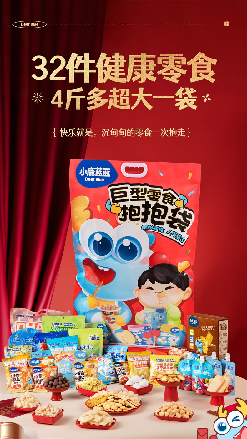 小鹿蓝蓝 巨型零食儿童节日礼包抱抱袋 宝宝儿童零食大礼包4斤重