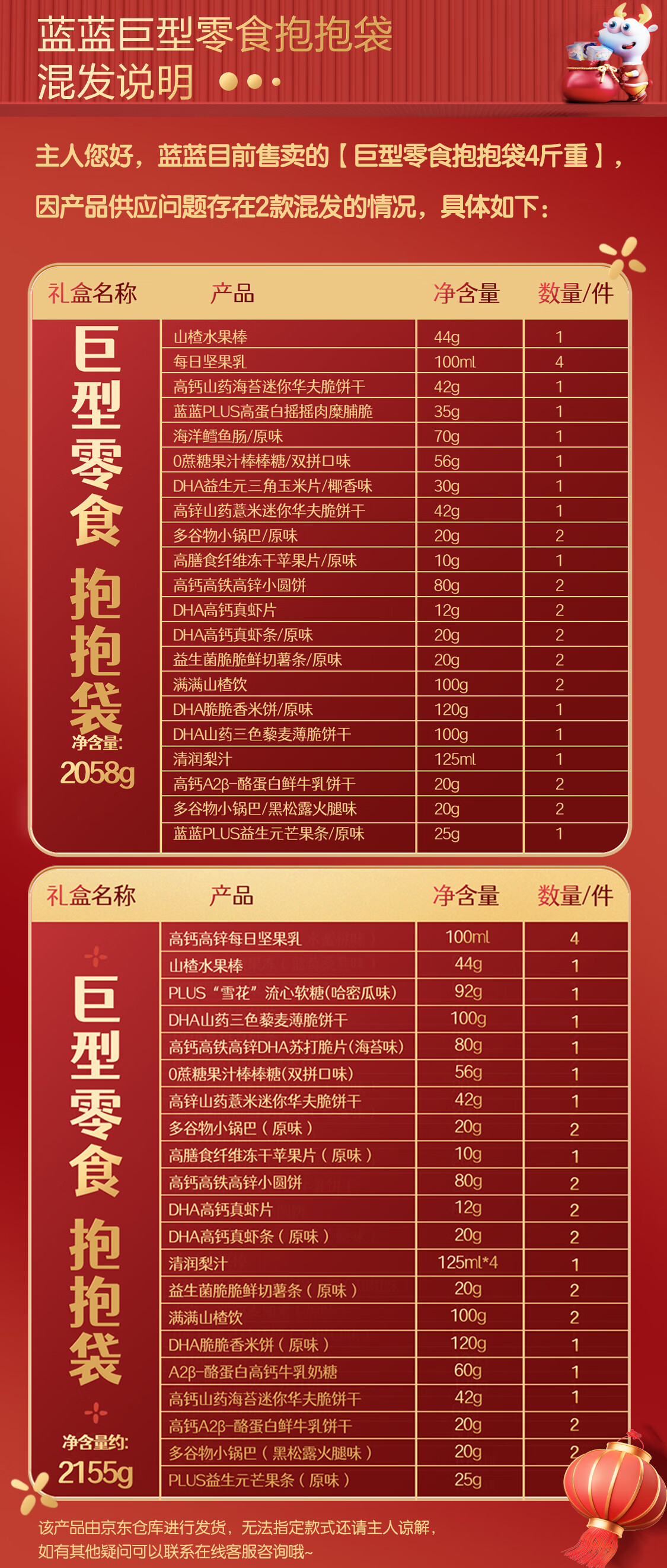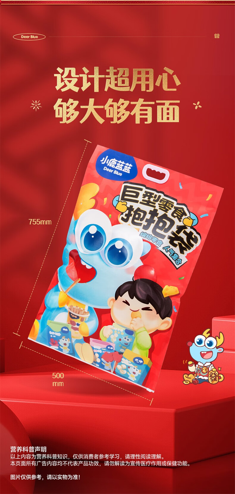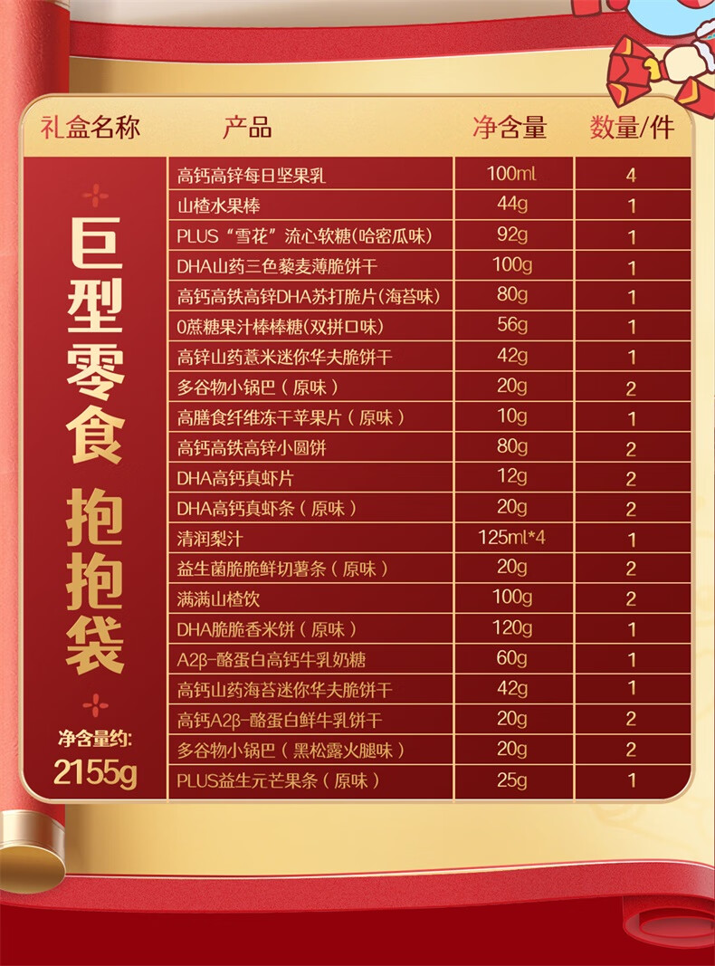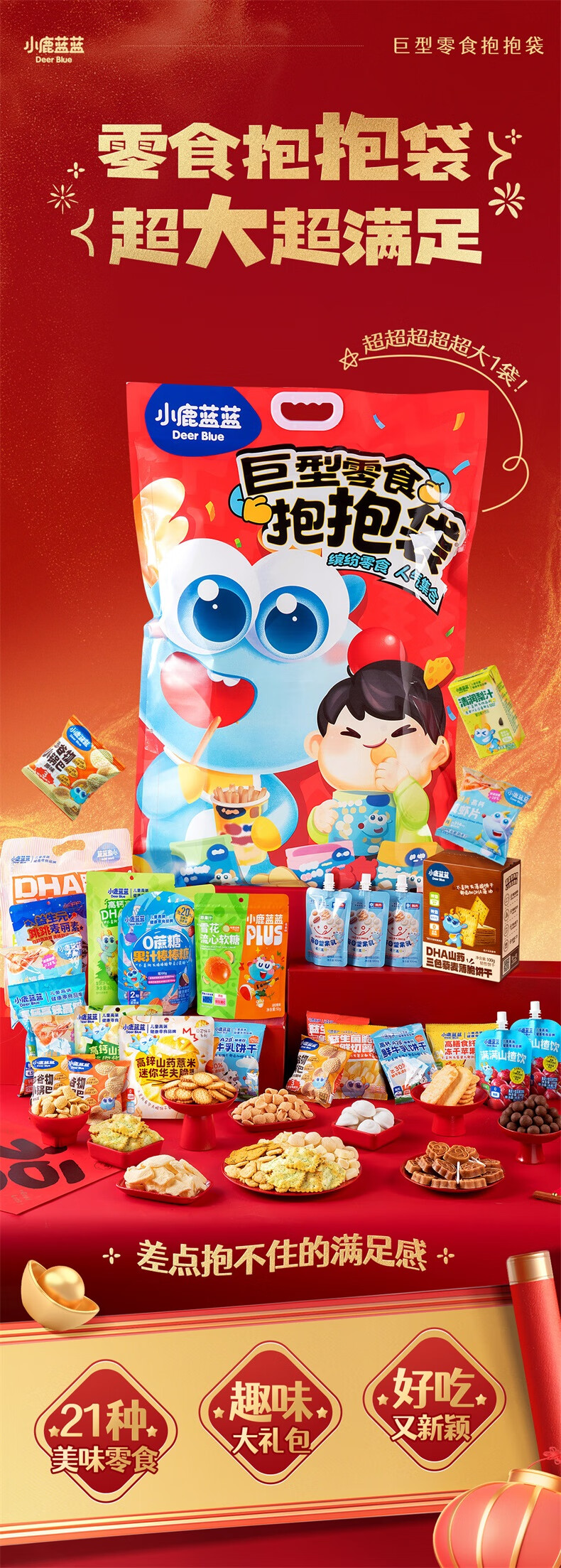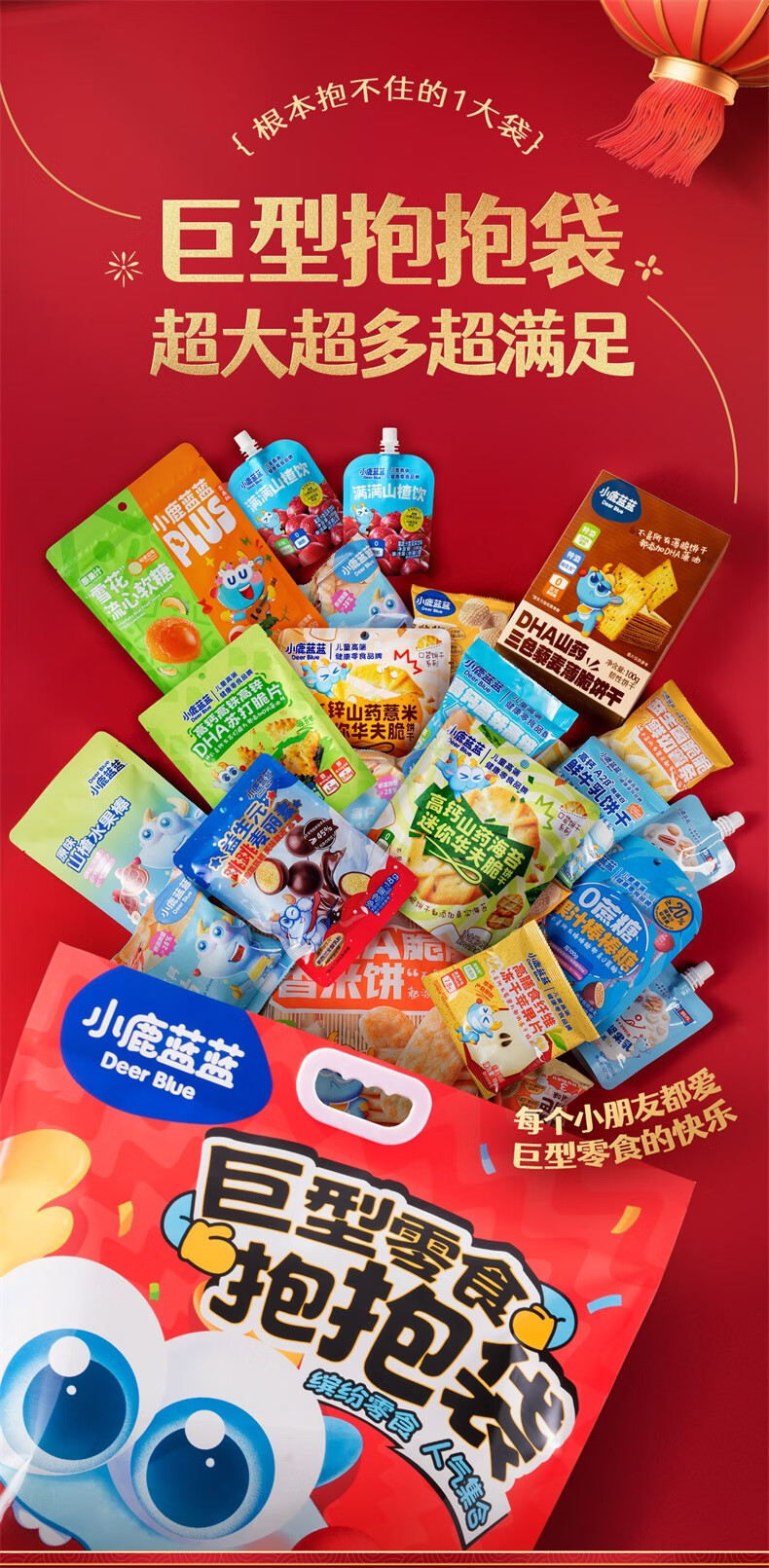 小鹿蓝蓝 巨型零食儿童节日礼包抱抱袋 宝宝儿童零食大礼包4斤重