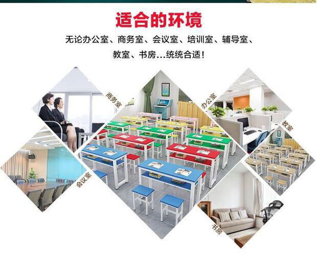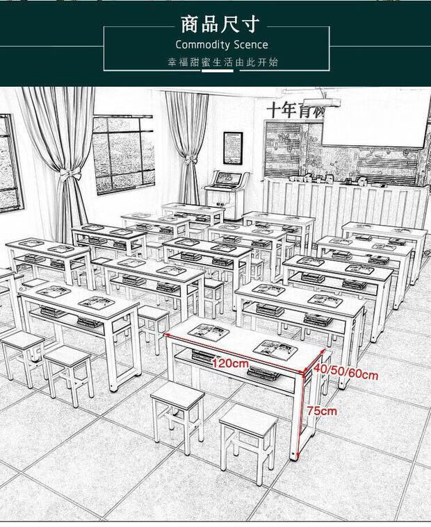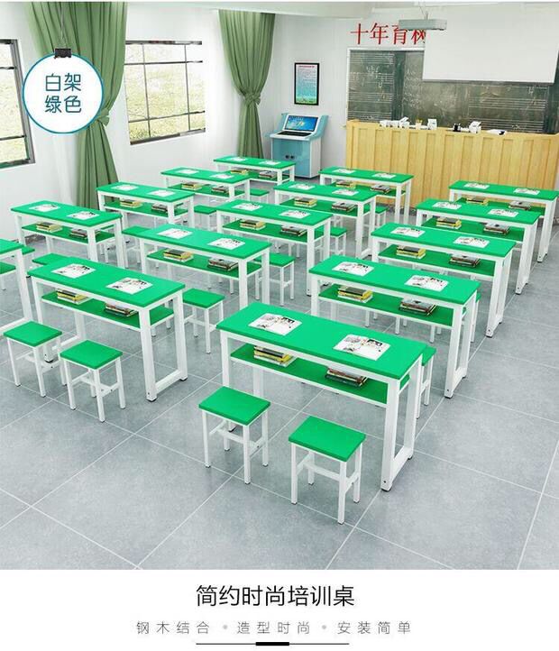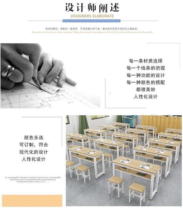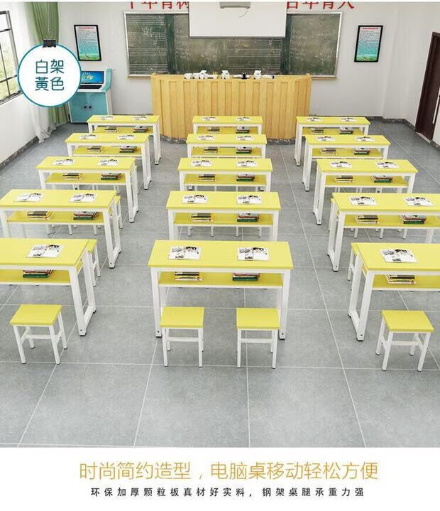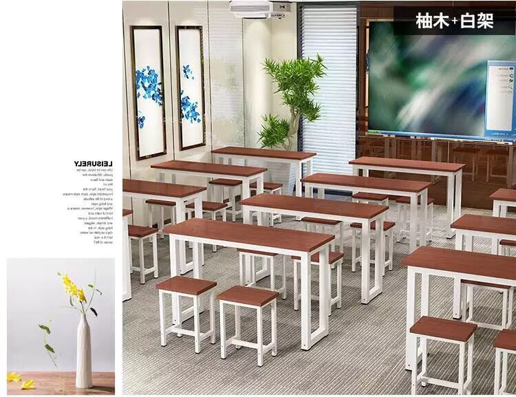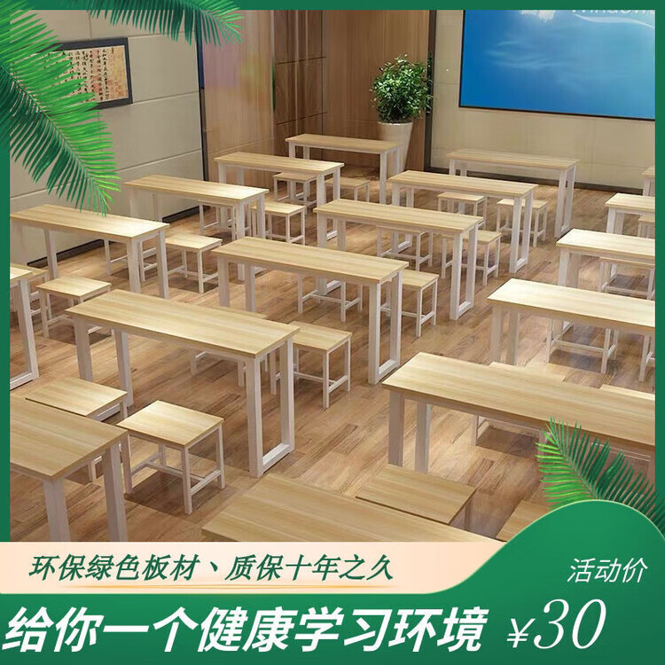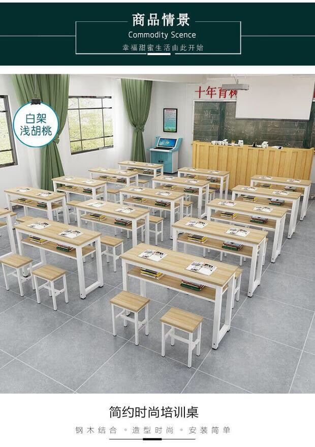 倘然之家学校美术培训班课桌椅中小学生双人补习课桌长条员工桌托管班桌子 浅胡桃 60*40*74单层圆角