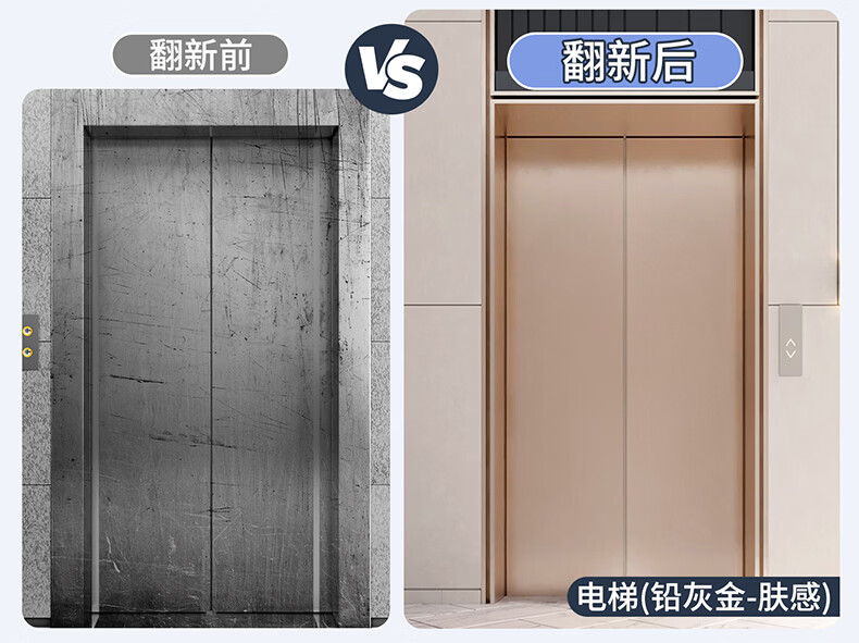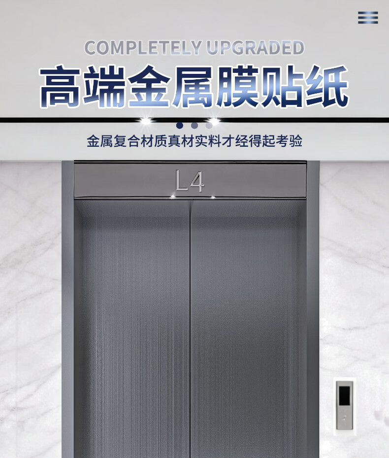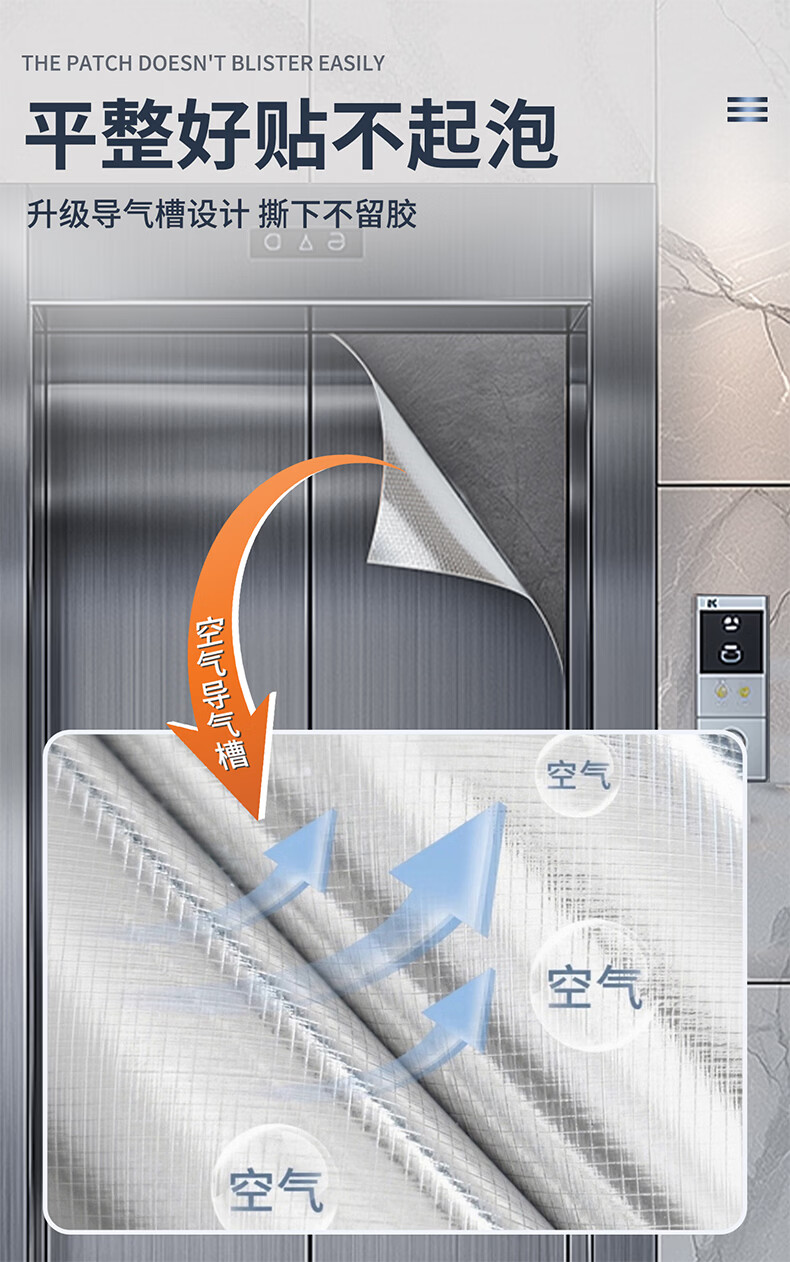赛瓦凯电梯门贴纸翻新自粘轿厢内装饰改色不锈钢贴膜高端全贴拉丝金属膜 拉丝纹-冰银色[工程级材质/高端金属质感] 40CM×2米长