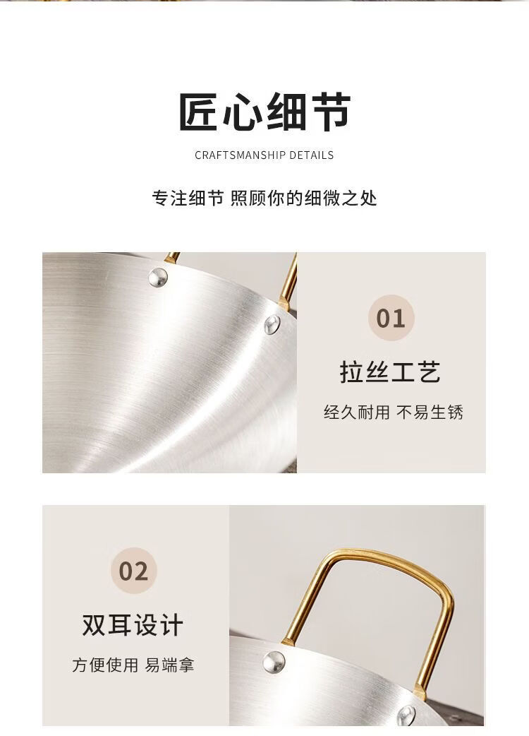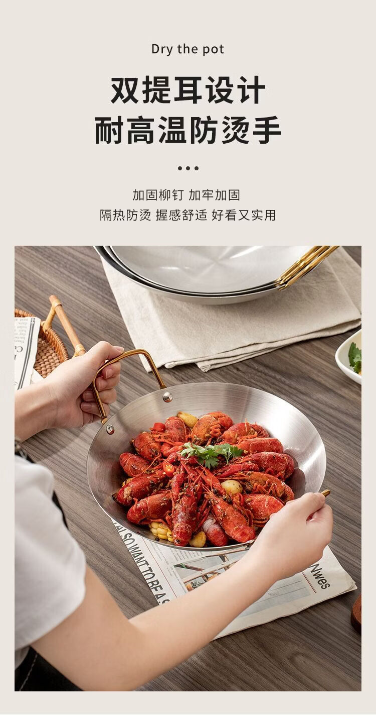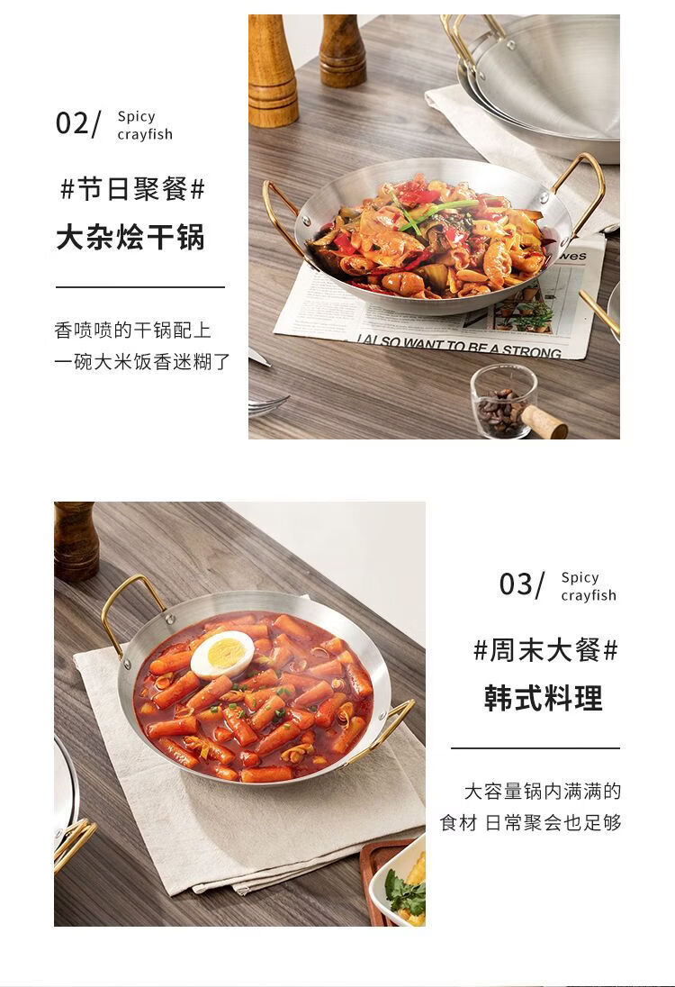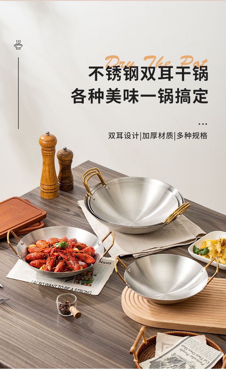 咏夏特厚不锈钢锅仔商用小火锅海鲜干锅商用饭店酒吧鼎锅具加厚 一个装 0英寸 【特厚款】金耳22cm