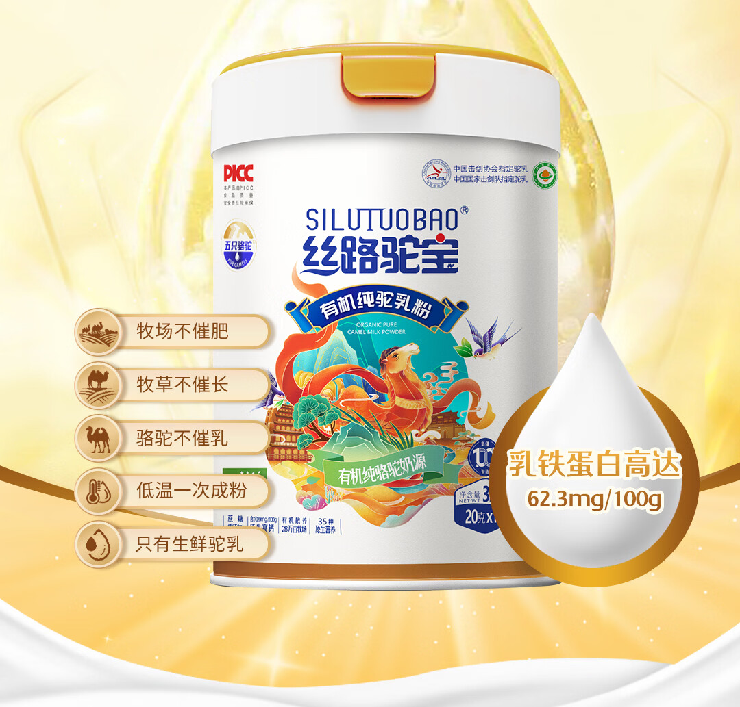 丝路驼宝有机纯骆驼奶粉320g 新疆骆驼奶粉青少年成人孕妇中老年送父母 有机纯骆驼奶粉 320g*1罐 到手2罐 丝路驼宝