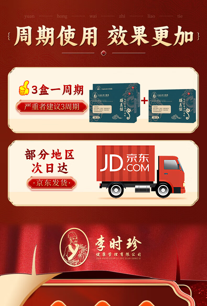 李时珍膝盖型远红外磁疗贴关节疼痛消肿止痛专用 5盒装