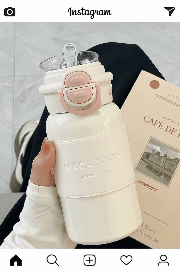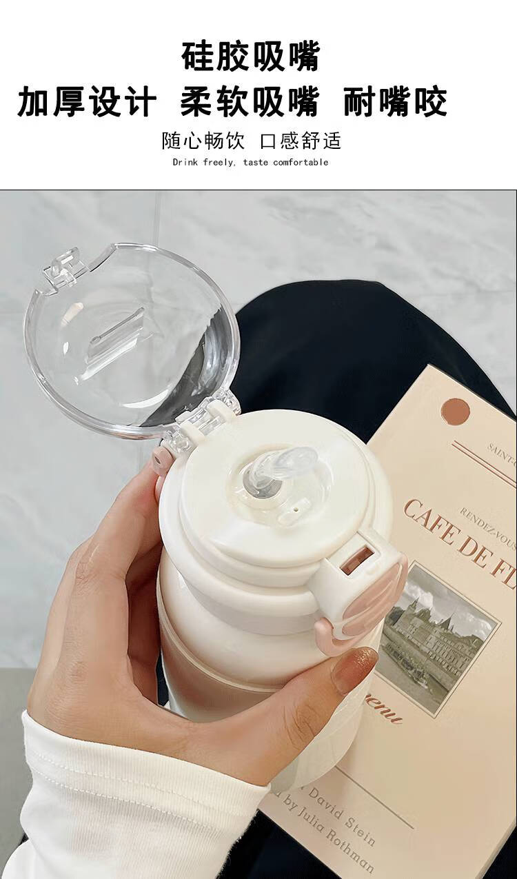 迪士尼(Disney)316保温杯女生高颜值精致感双饮口吸管杯母婴级大容量小巧 316白色保温杯【吸管口+直 500ml