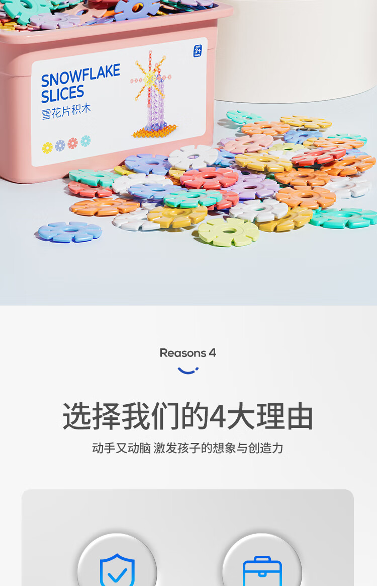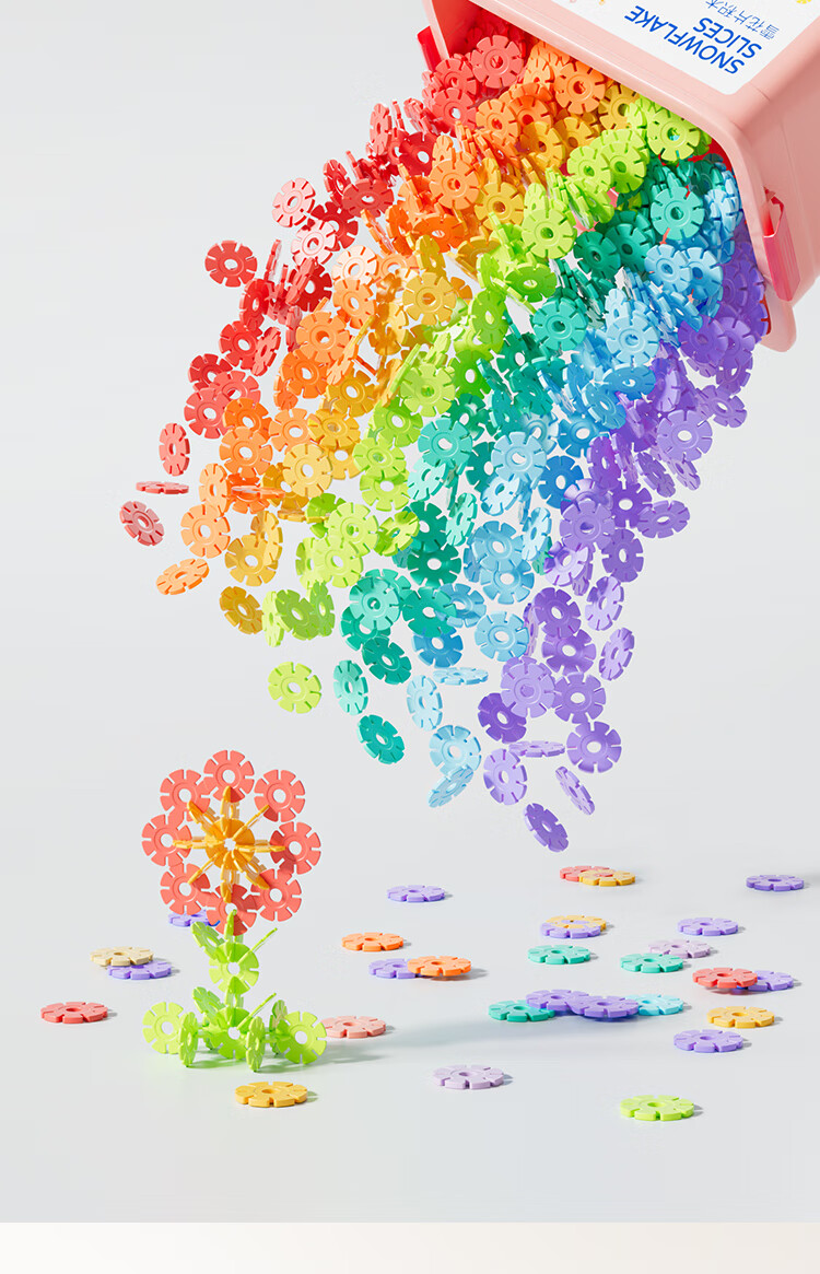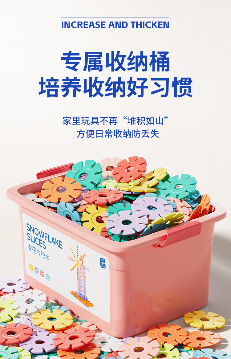mobee雪花片儿童积木玩具立体拼图大号3-6diy益智手工装拼插新年节礼物 数字雪花片【525片】收纳箱装 色彩缤纷绚丽-光滑无刺-数字拼插