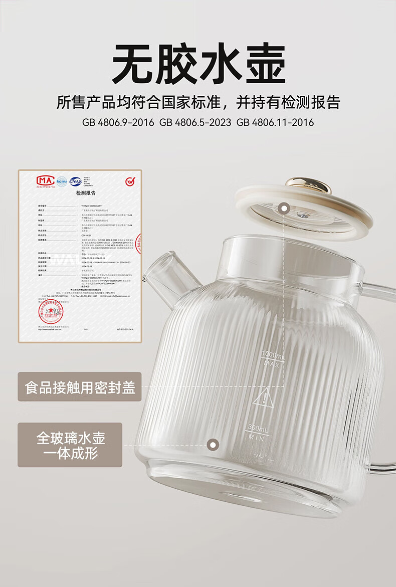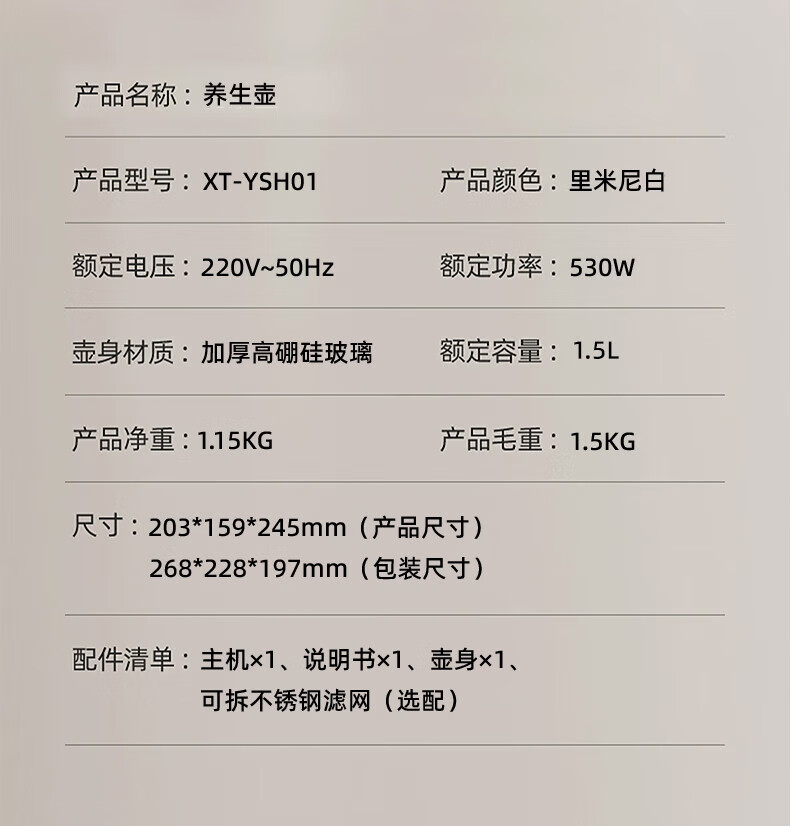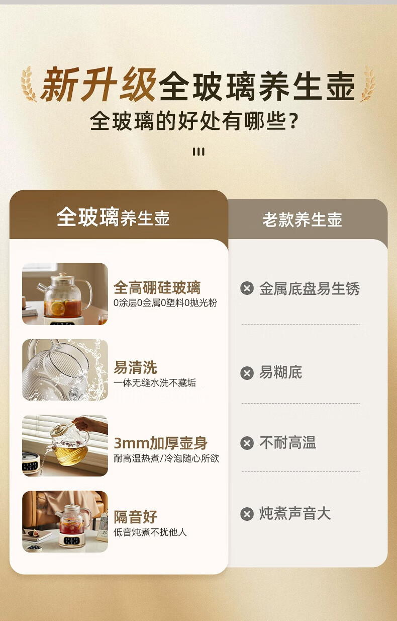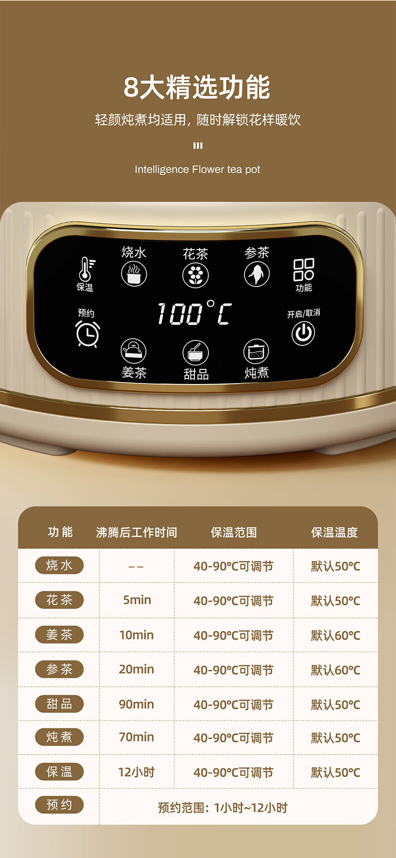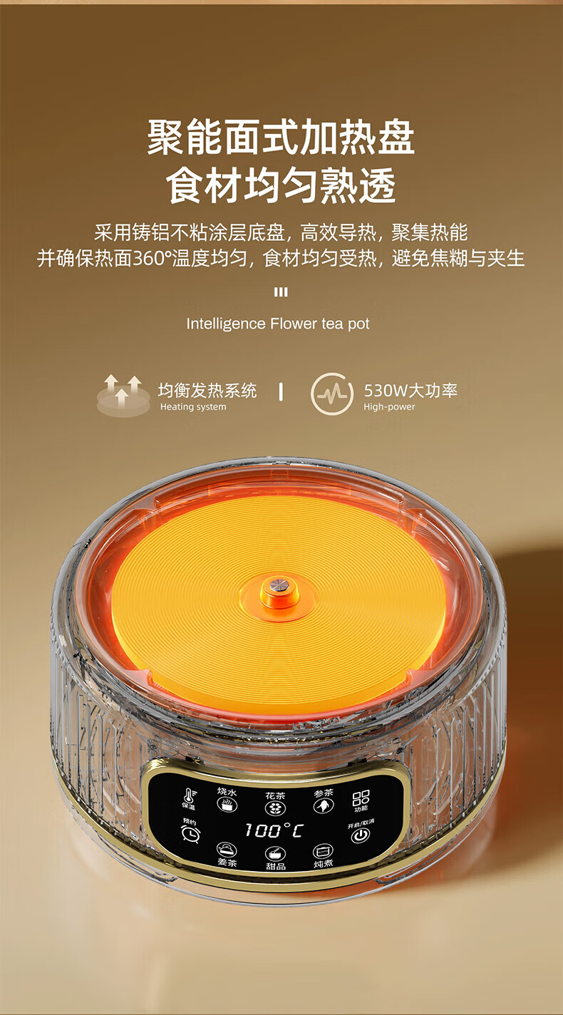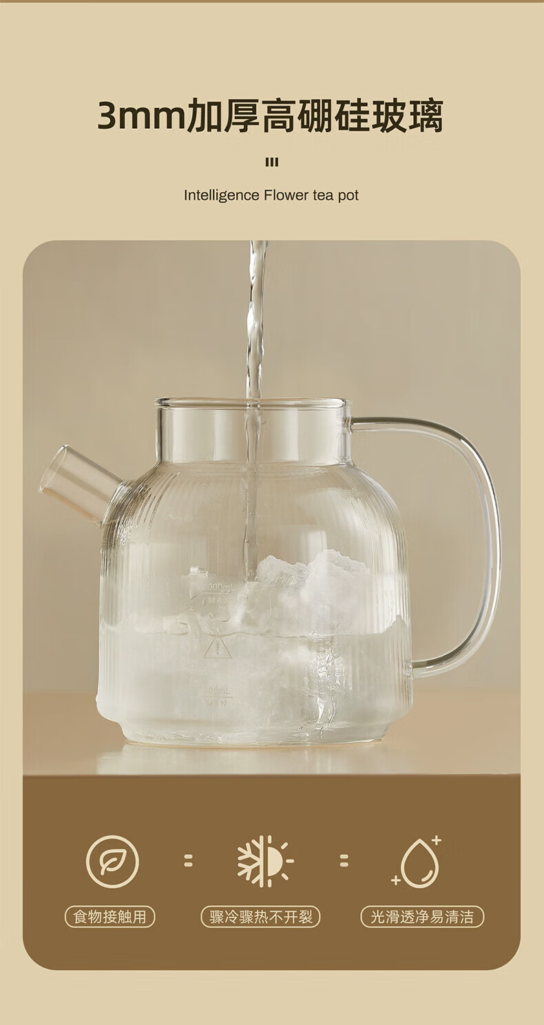 美的(Midea)同款德国养生壶全玻璃电热水壶办公室迷你煮茶器炖煮一体煮茶壶家用花茶壶小型恒温 奶白色 1.5L 无茶漏/12H恒温