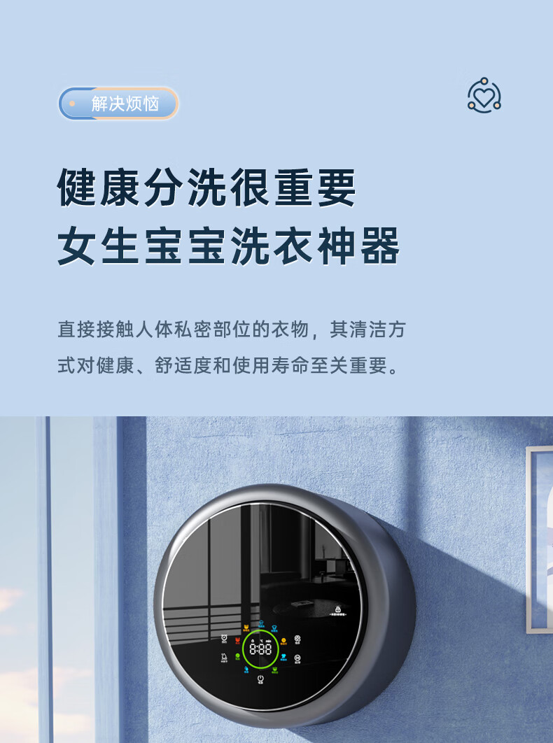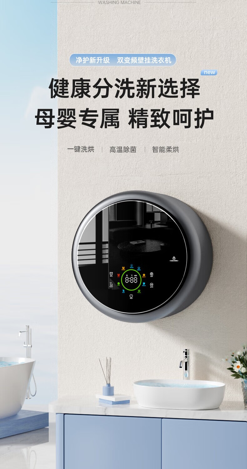 WINIA新款灰色壁挂洗衣机婴儿童挂壁式内衣洗烘一体机母婴薄机身0.8kg迷你除菌除螨 【母婴专洗】轻奢灰 洗烘脱+杀菌除螨+超静音