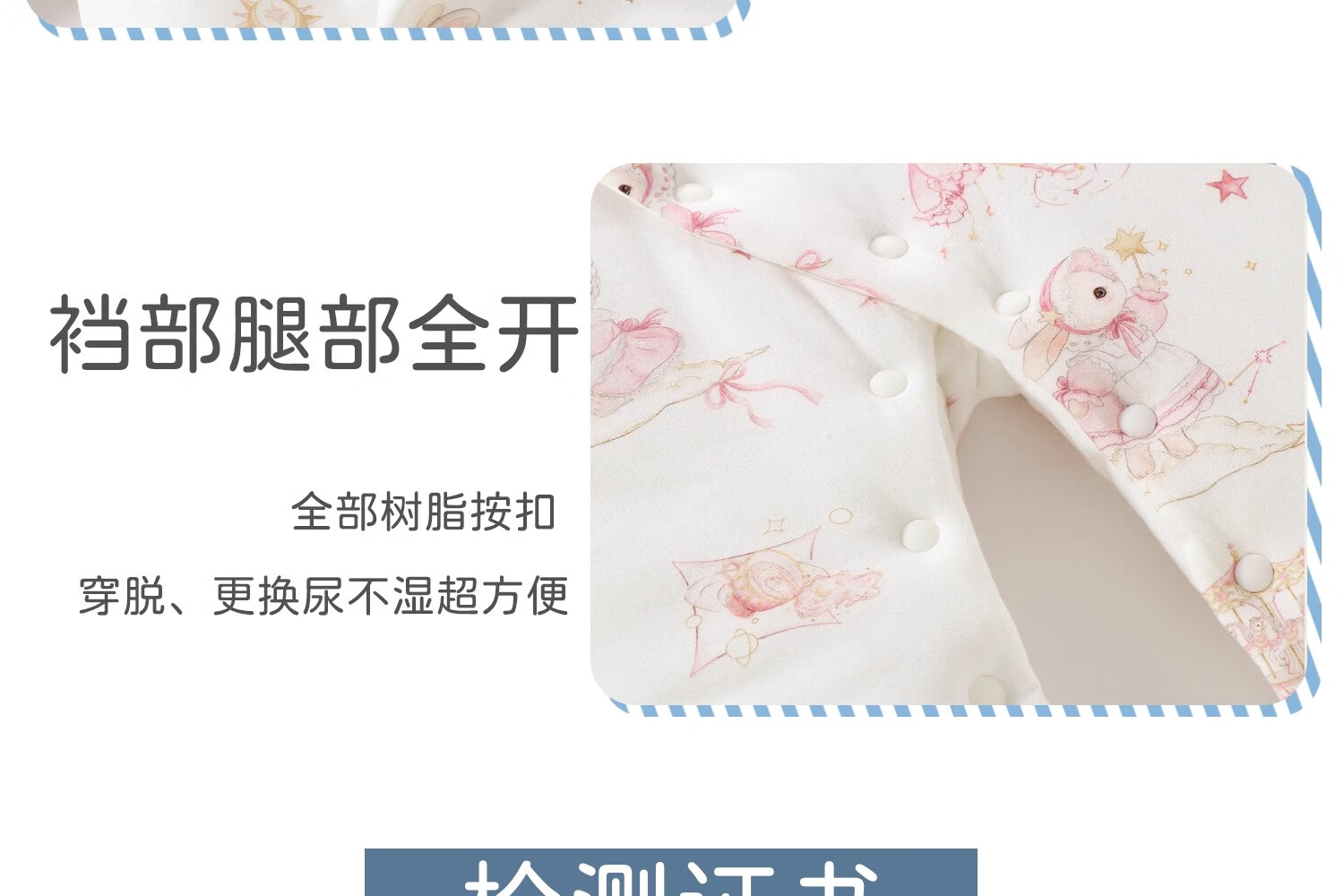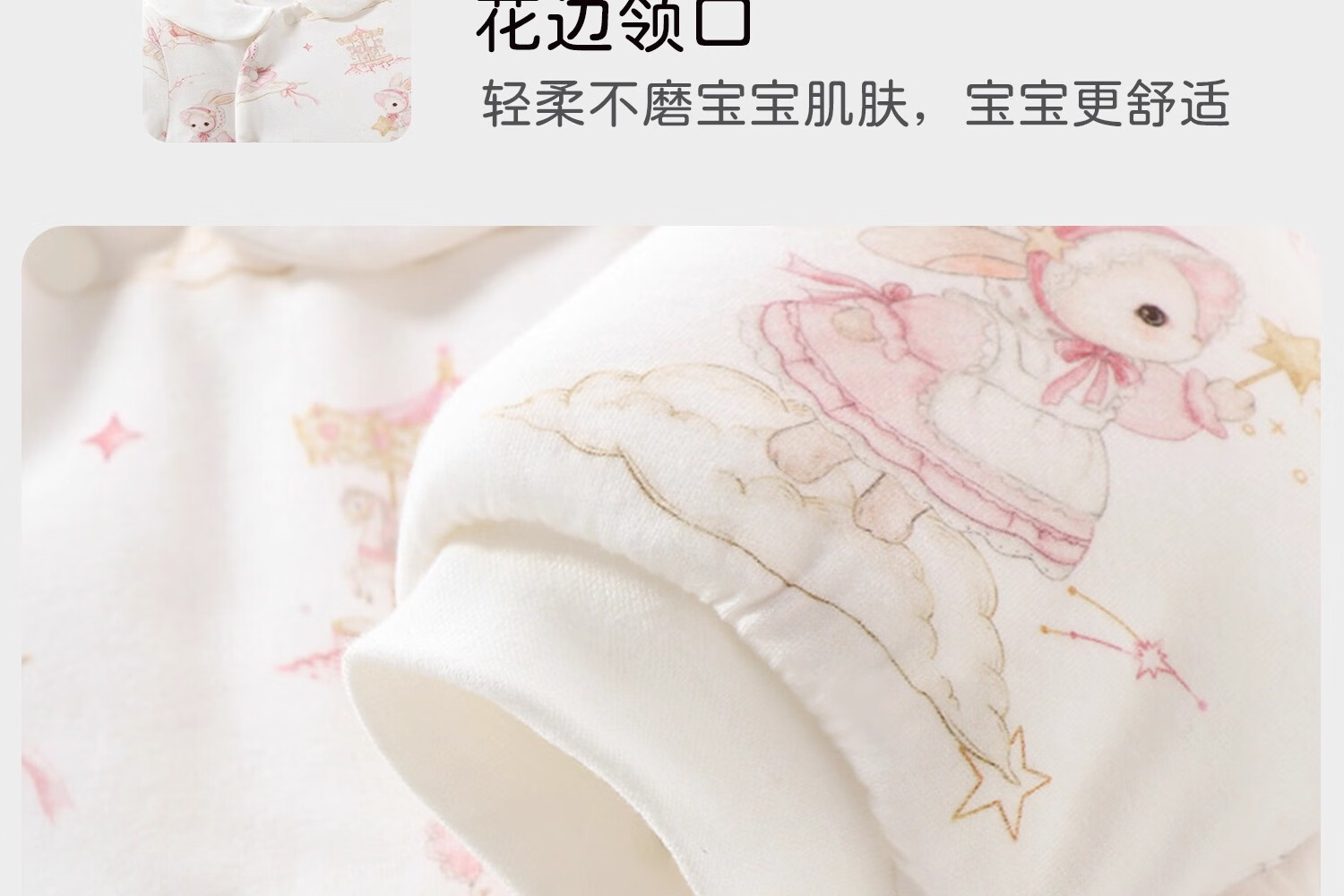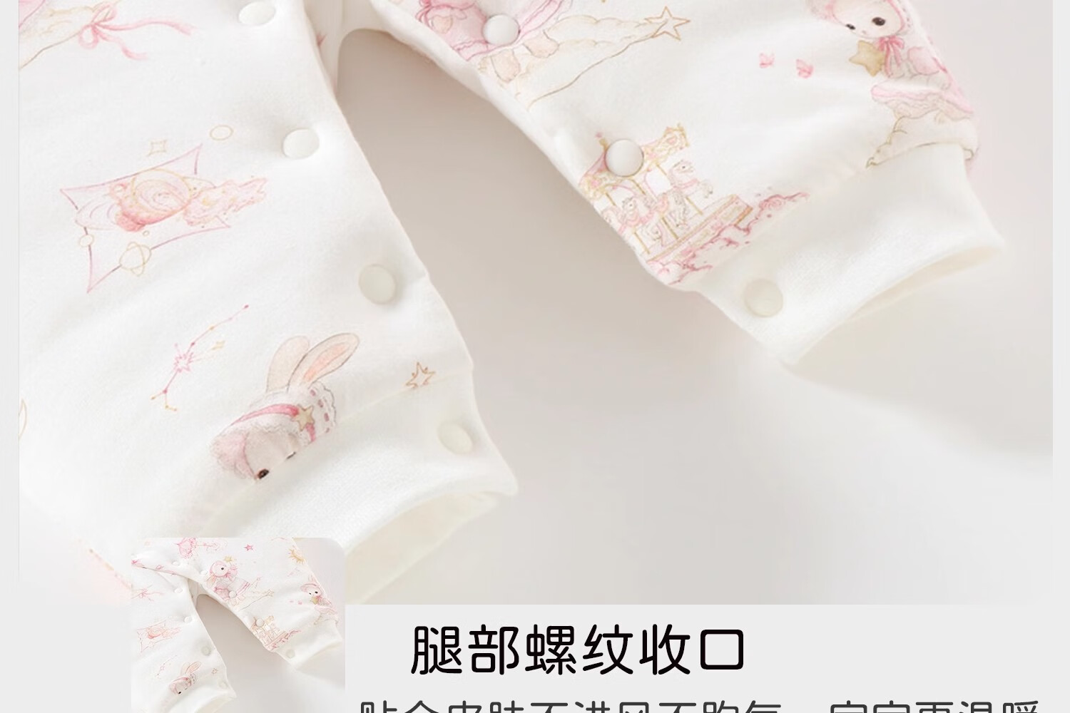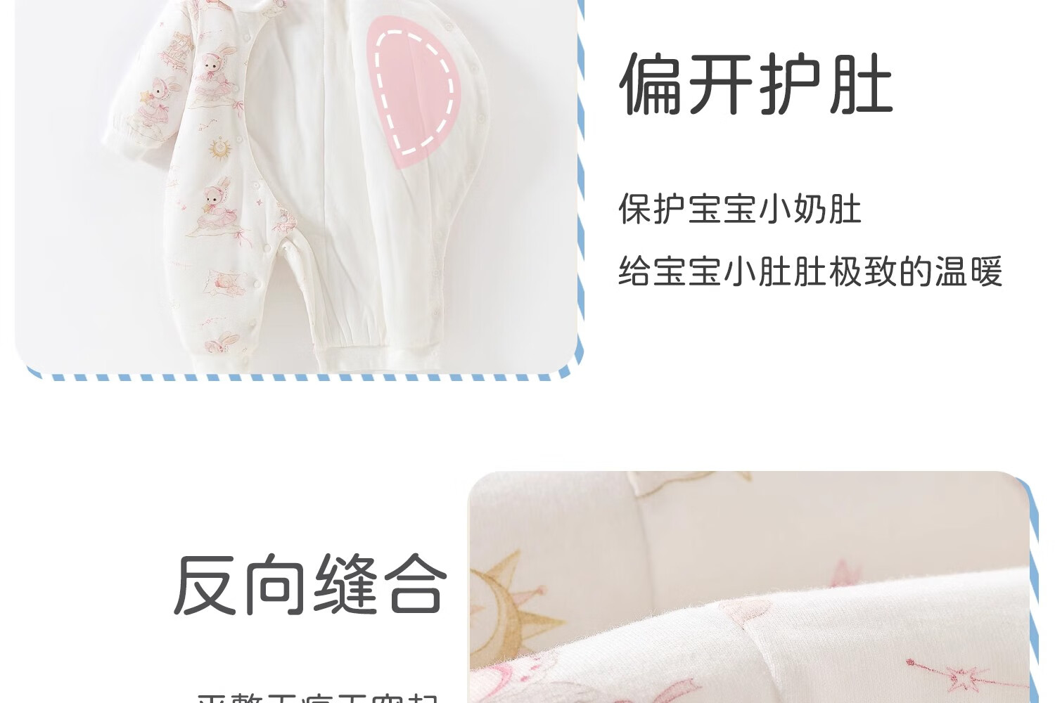 婴蒂尼秋冬保暖宝宝连体衣 夹棉哈衣婴儿秋冬季a类初生宝宝衣服满月加厚 星愿兔兔 80cm