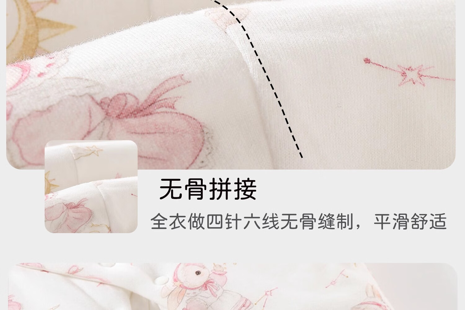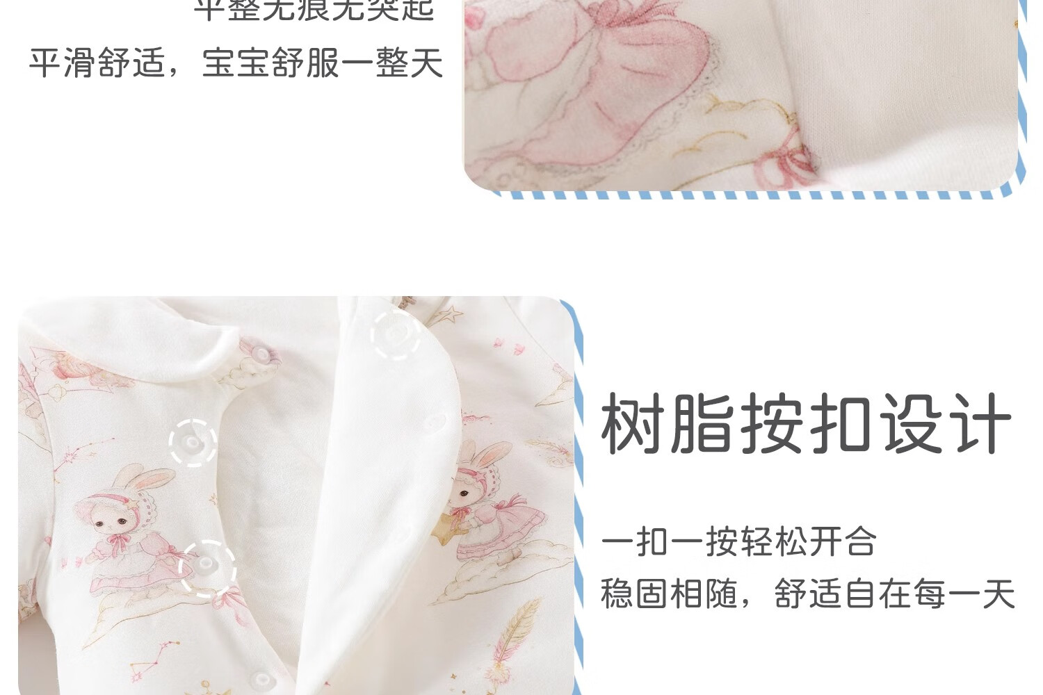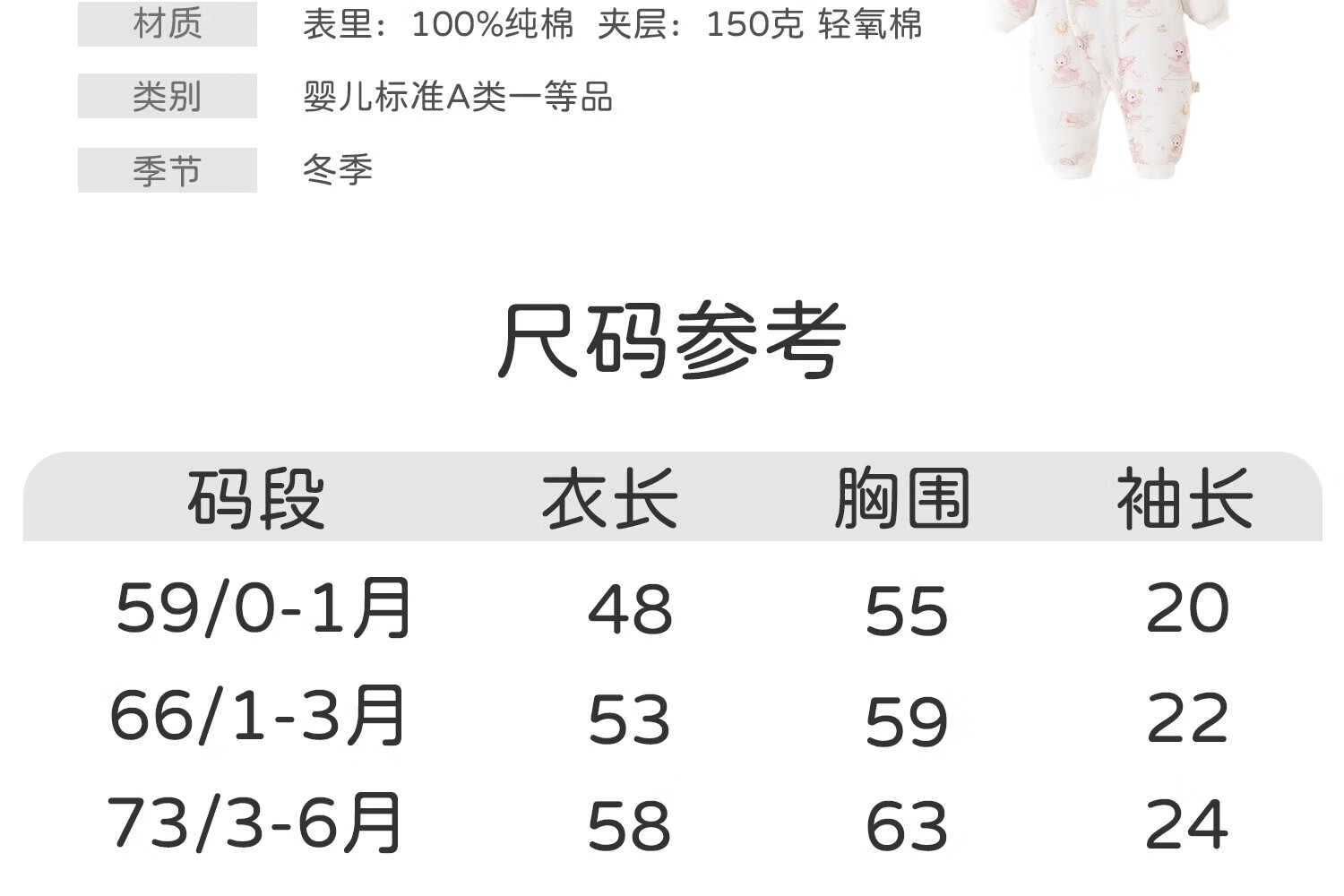 婴蒂尼秋冬保暖宝宝连体衣 夹棉哈衣婴儿秋冬季a类初生宝宝衣服满月加厚 星愿兔兔 80cm