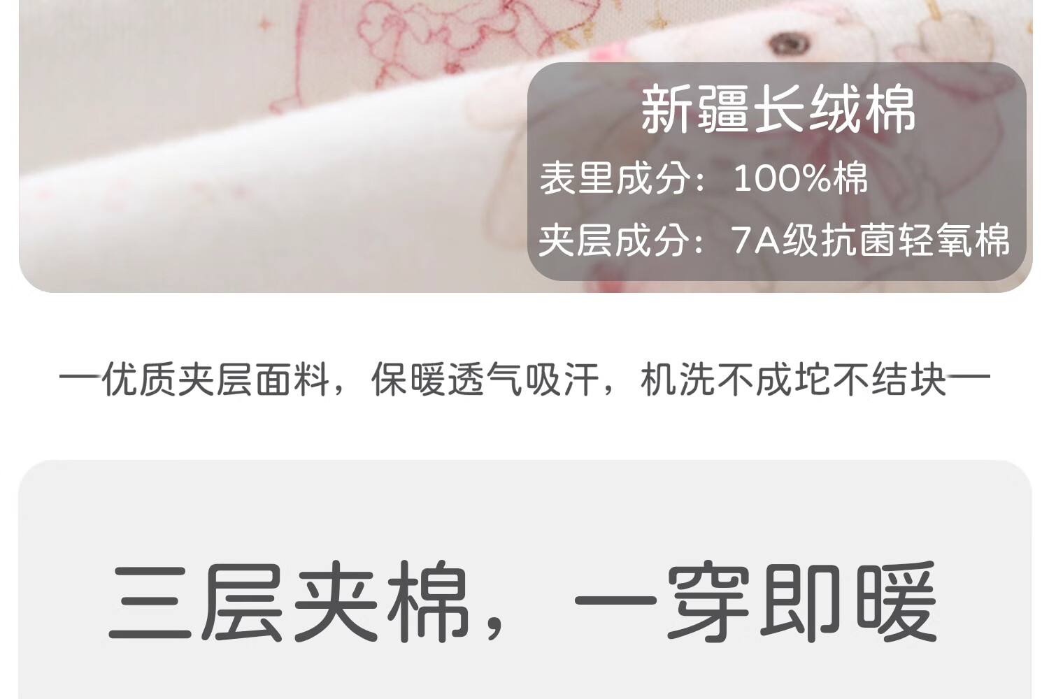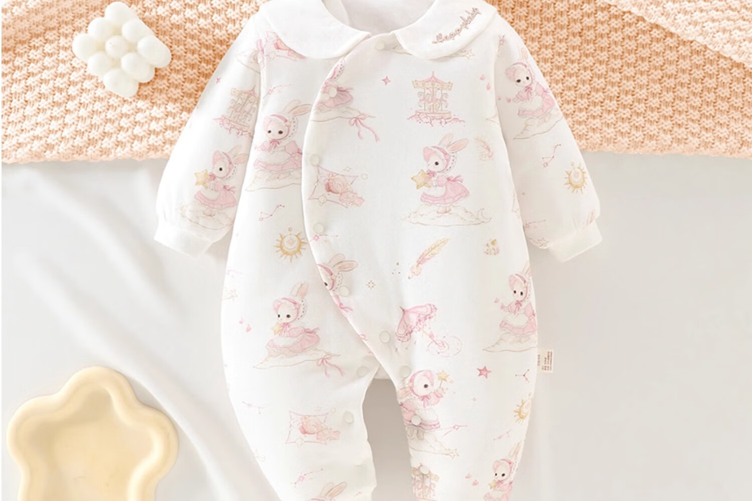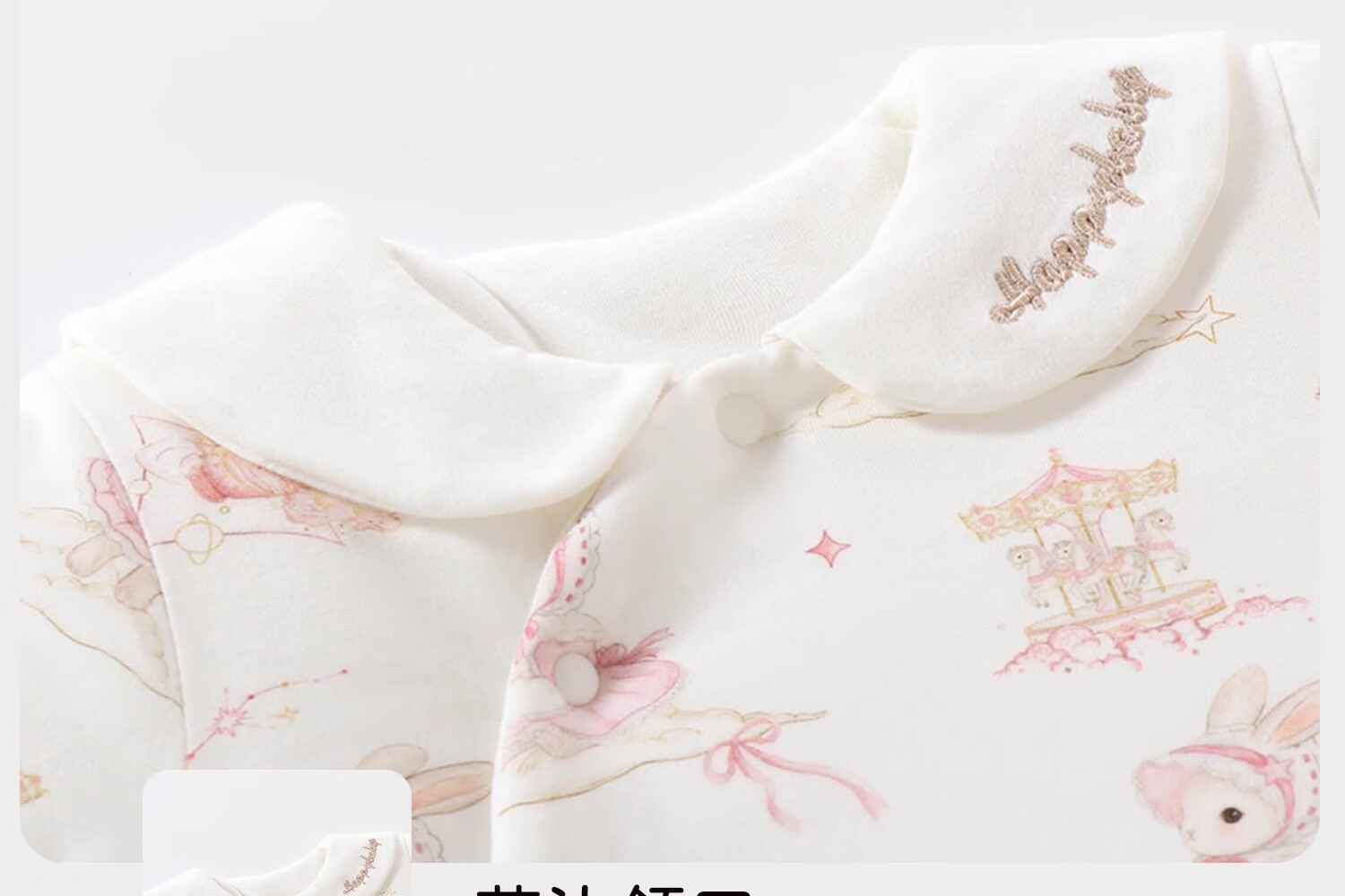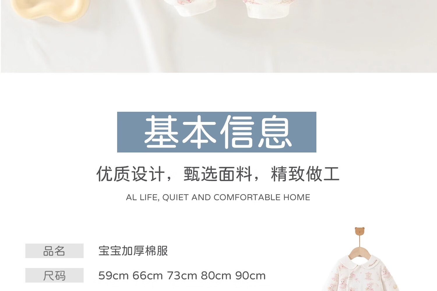 婴蒂尼秋冬保暖宝宝连体衣 夹棉哈衣婴儿秋冬季a类初生宝宝衣服满月加厚 星愿兔兔 80cm