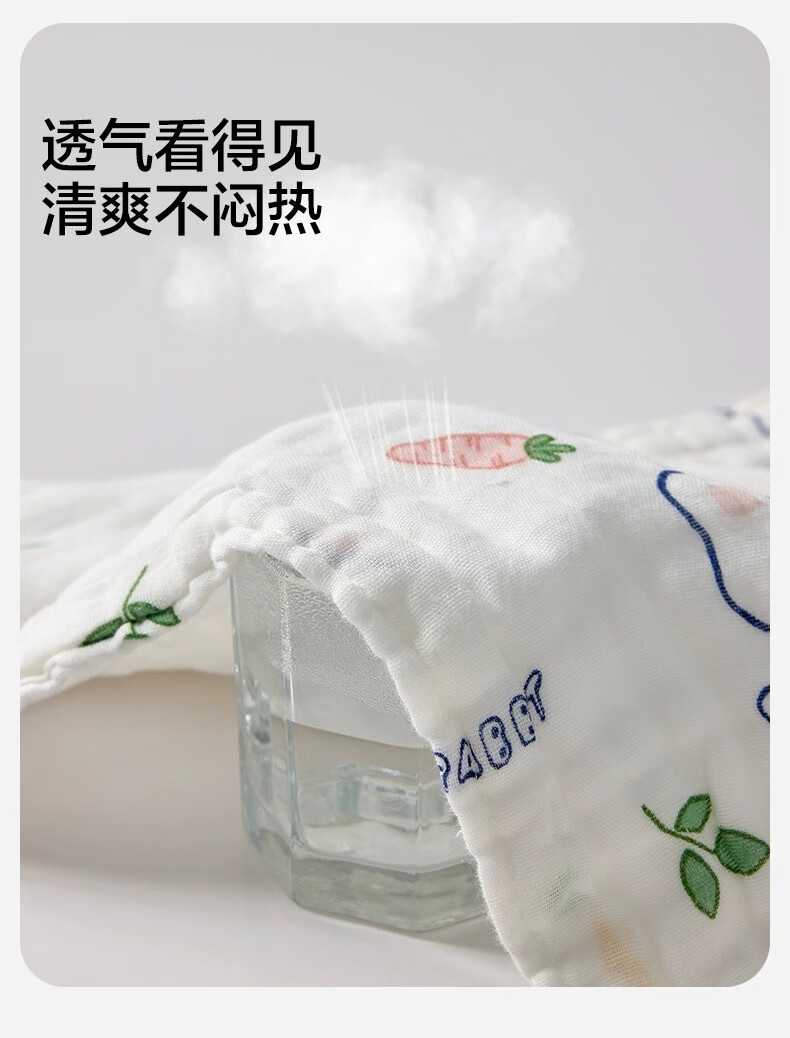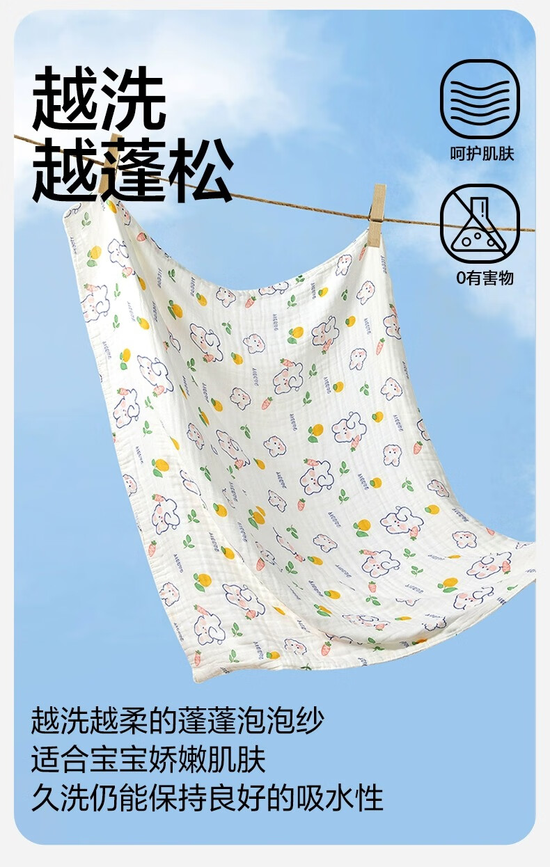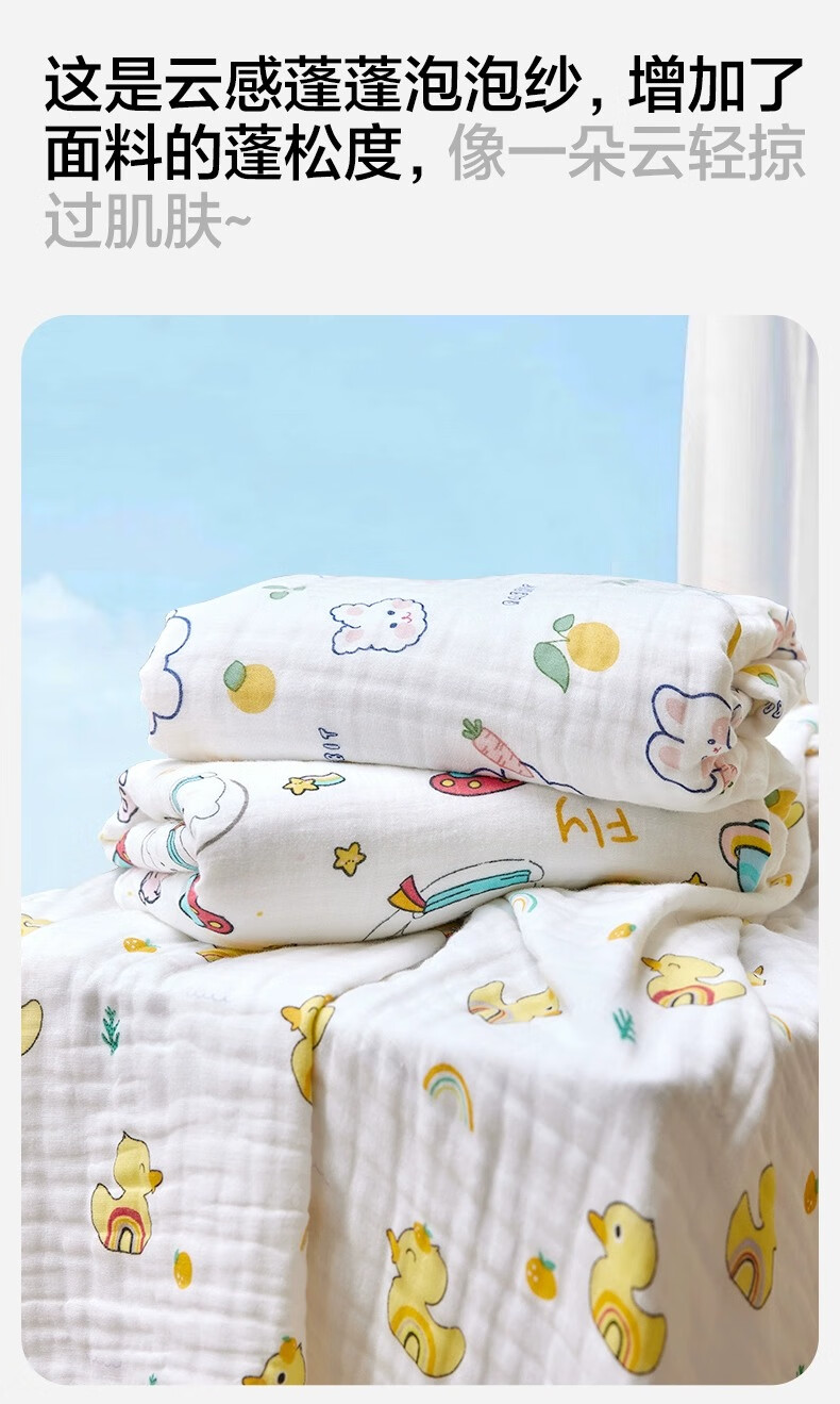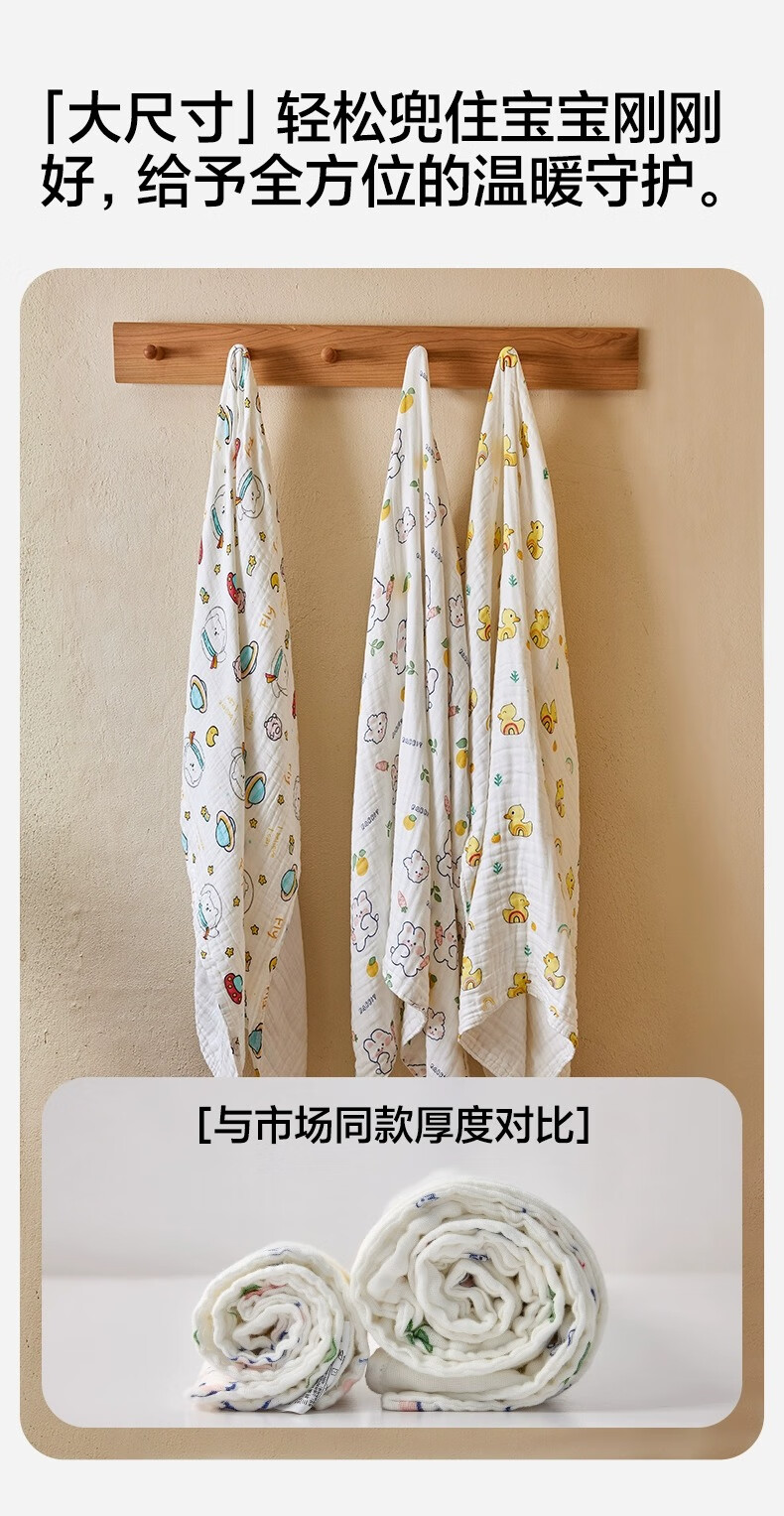 三利四层六层婴儿纱布浴巾纯棉超软新生儿宝宝洗澡儿童专用裹巾夏季 摘星小熊【6层纱布】110*110cm
