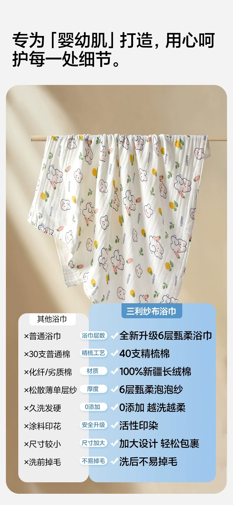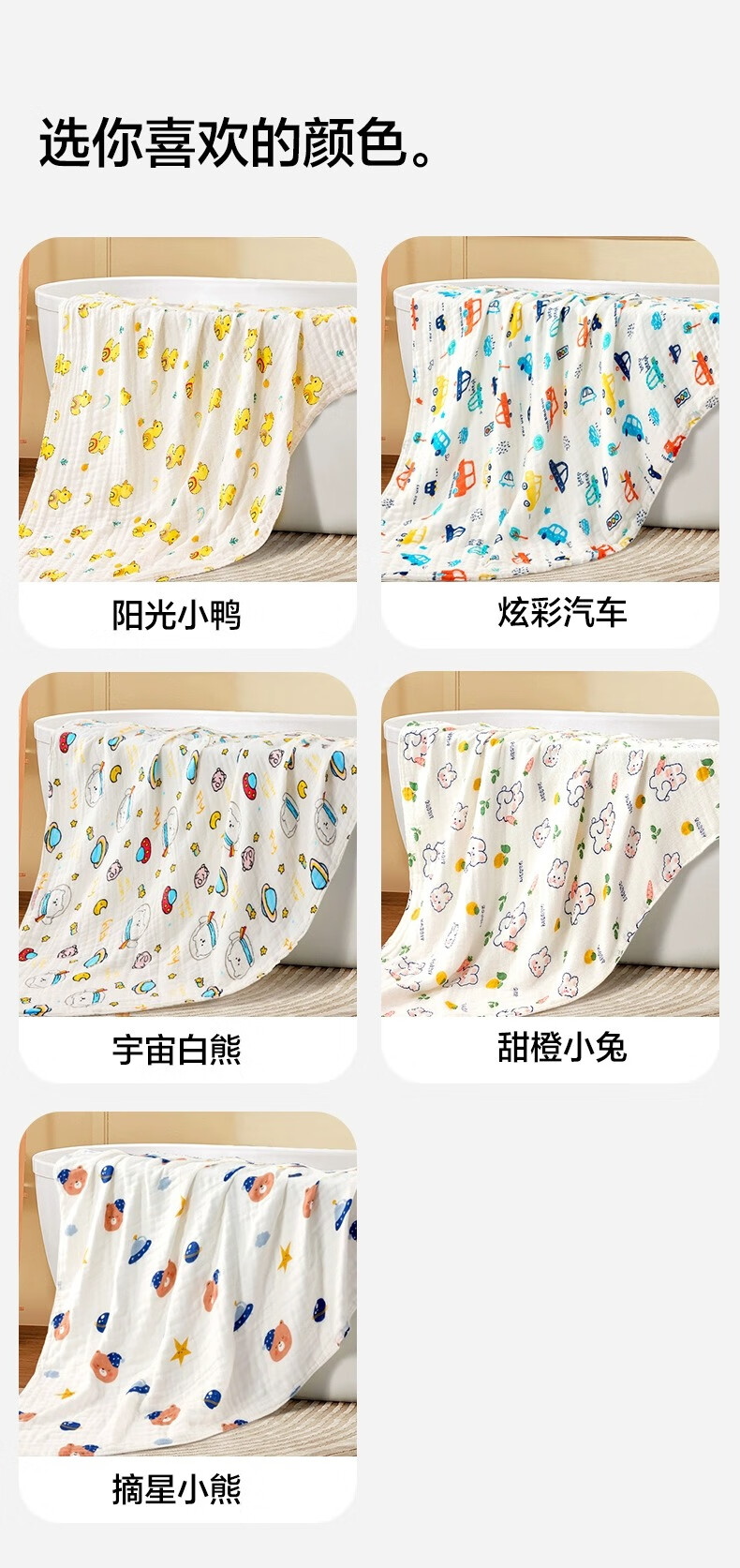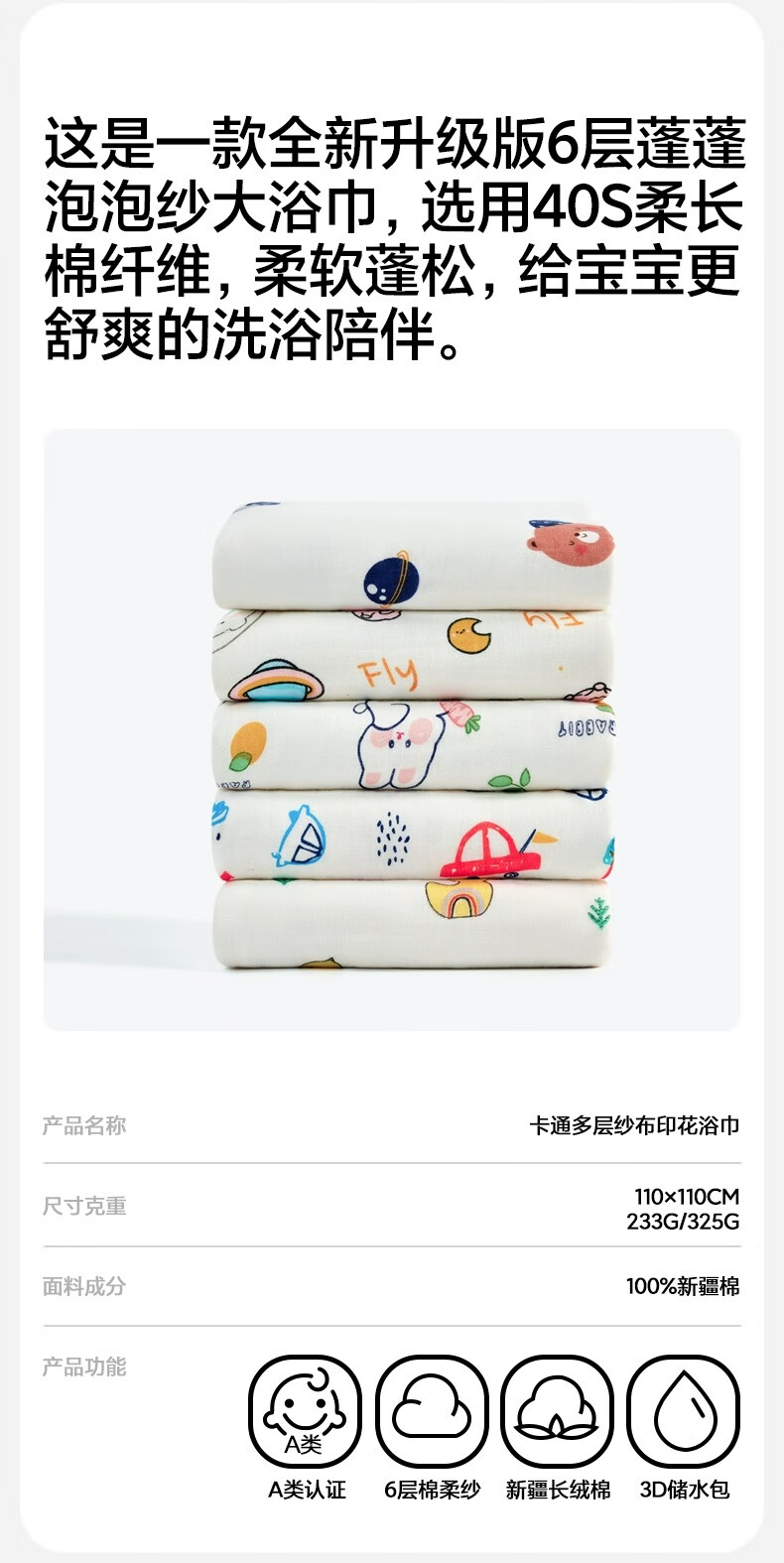 三利四层六层婴儿纱布浴巾纯棉超软新生儿宝宝洗澡儿童专用裹巾夏季 摘星小熊【6层纱布】110*110cm
