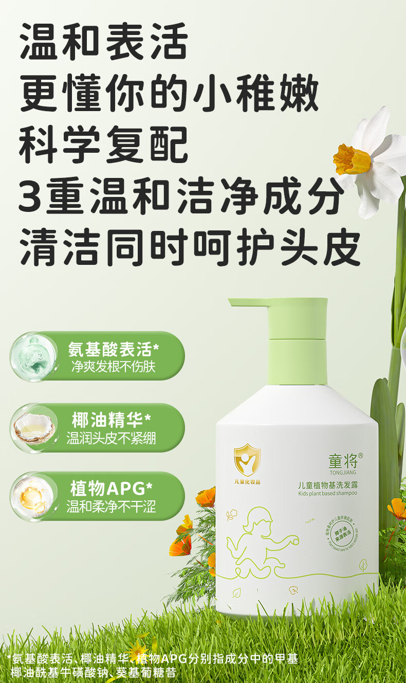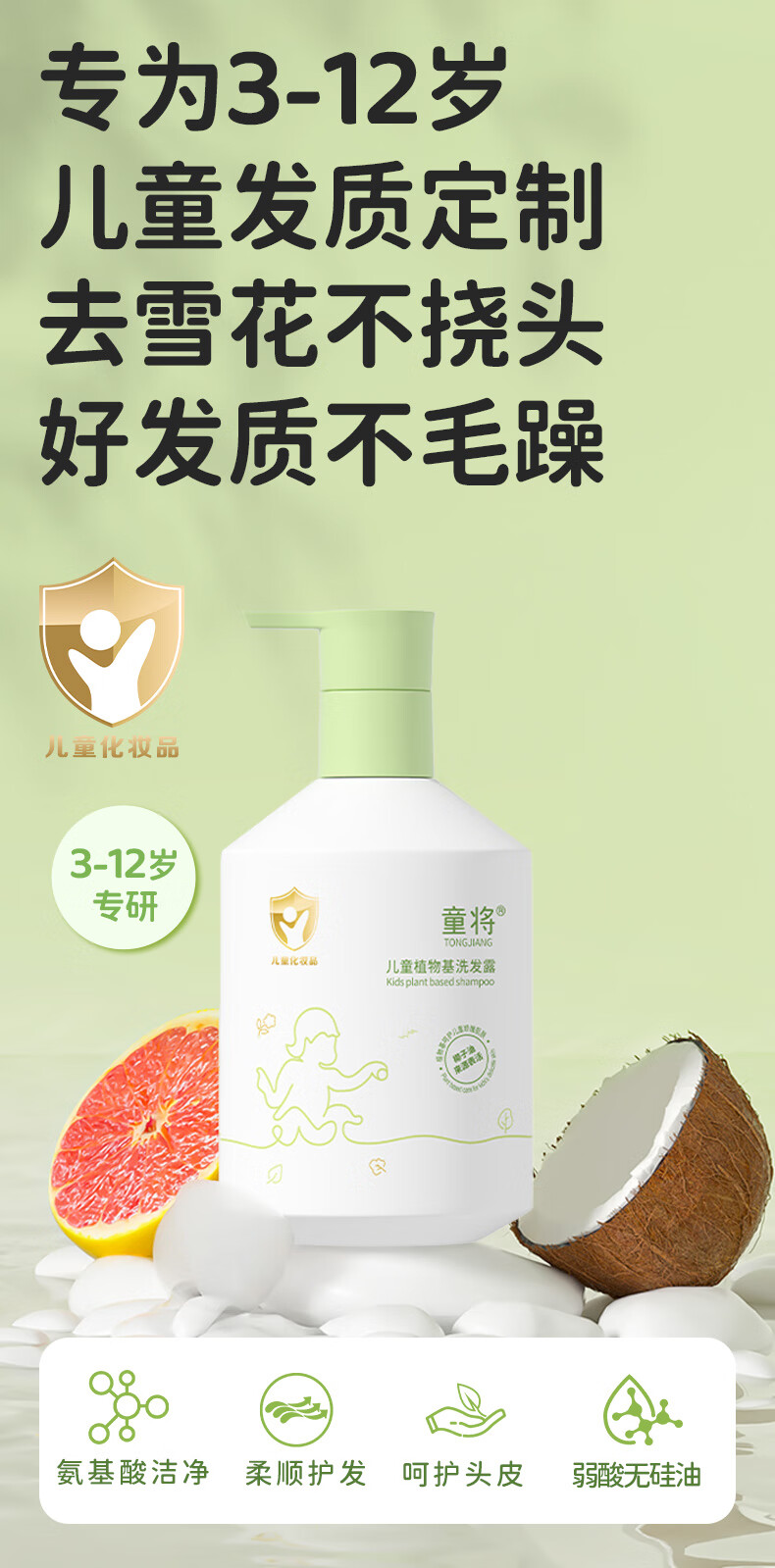 童将儿童植物基洗发露 洗发水宝宝3-12岁中大童椰子油洗头膏洗发液 【儿童奢护五件套】