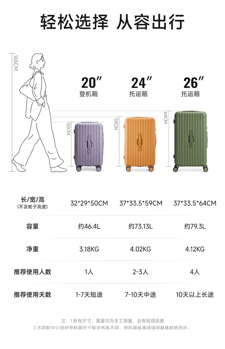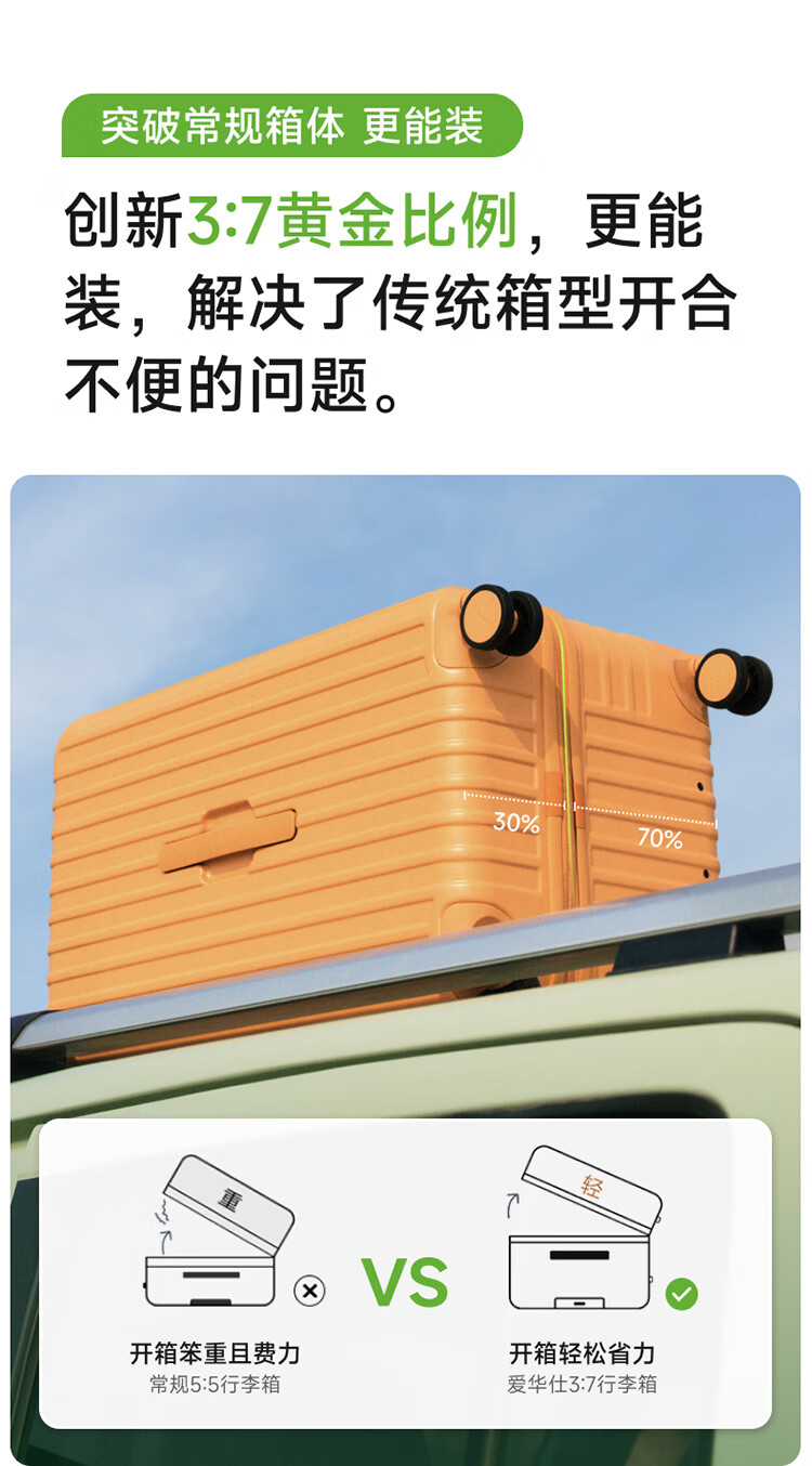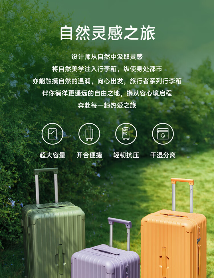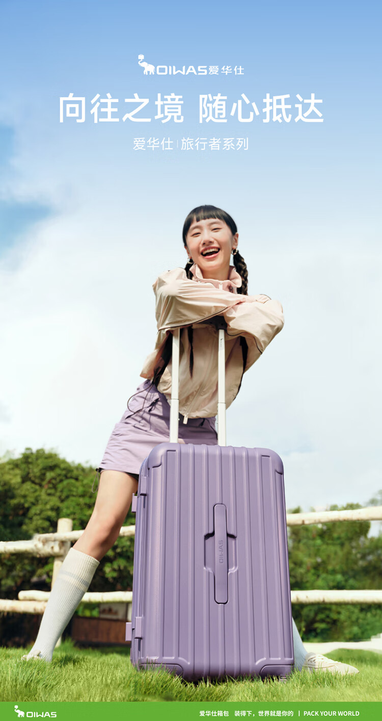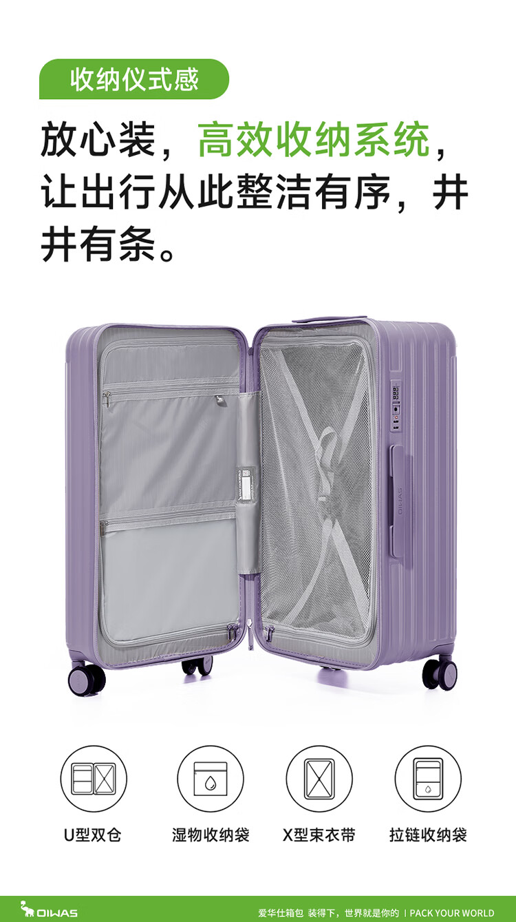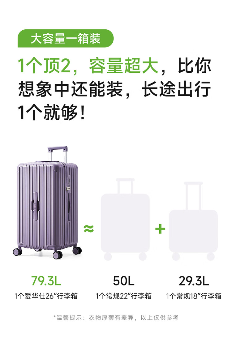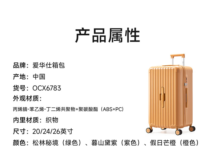 爱华仕旅行者行李箱女26英寸三七开大容量托运拉杆箱密码男旅行箱 暮山黛紫 26英寸