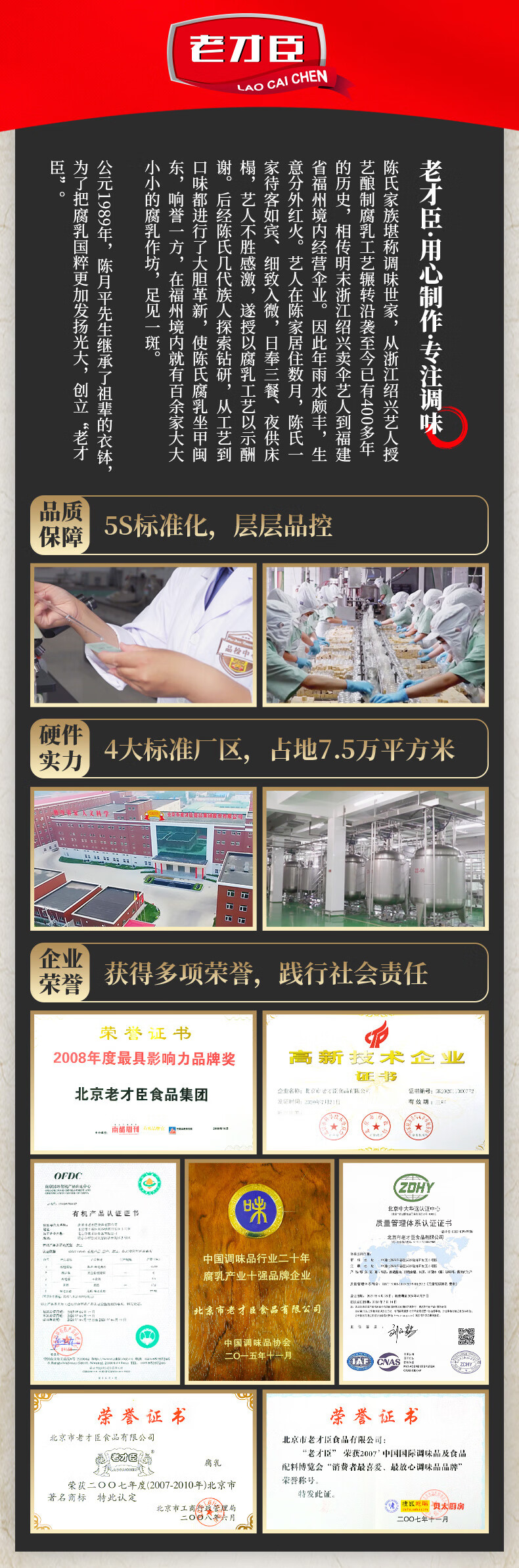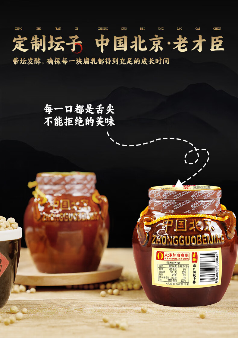 老才臣 豆腐乳糟方白腐乳拌面下饭腐乳微甜豆腐乳 350g*2坛