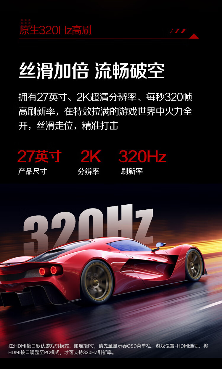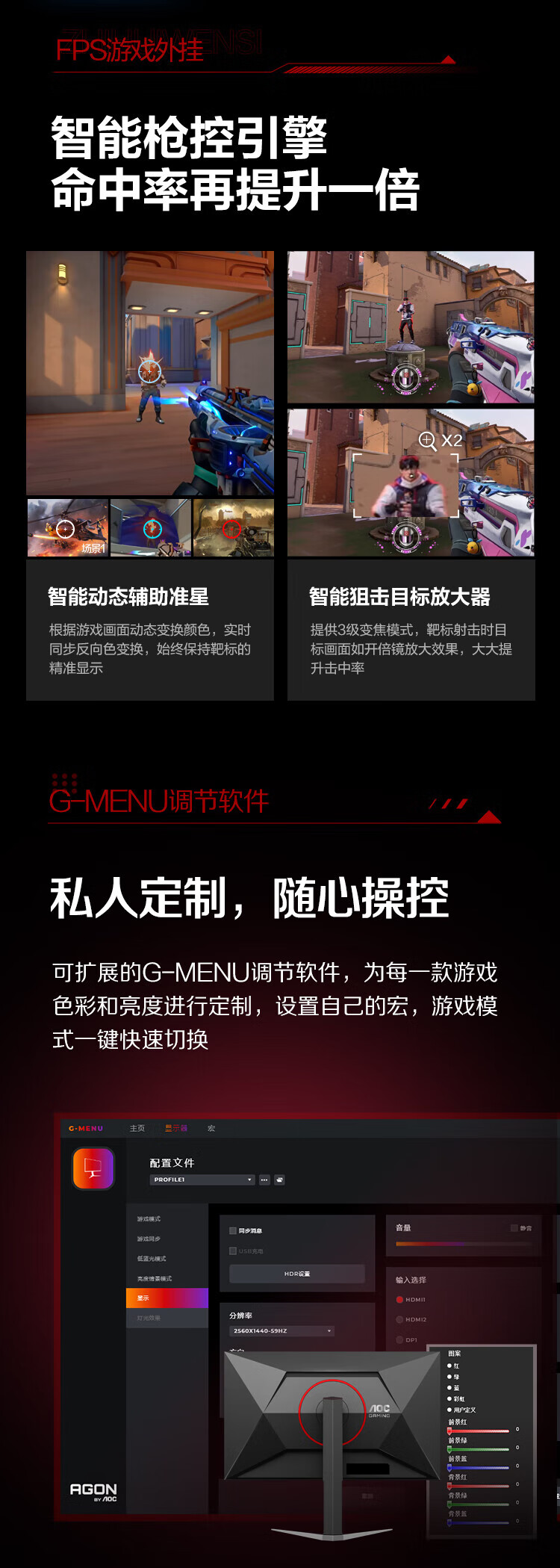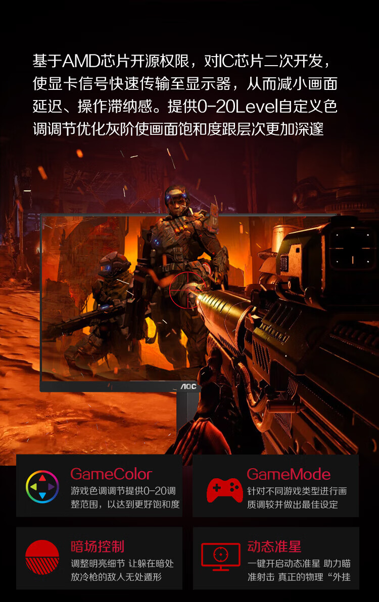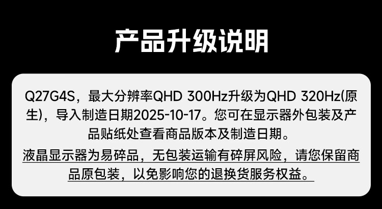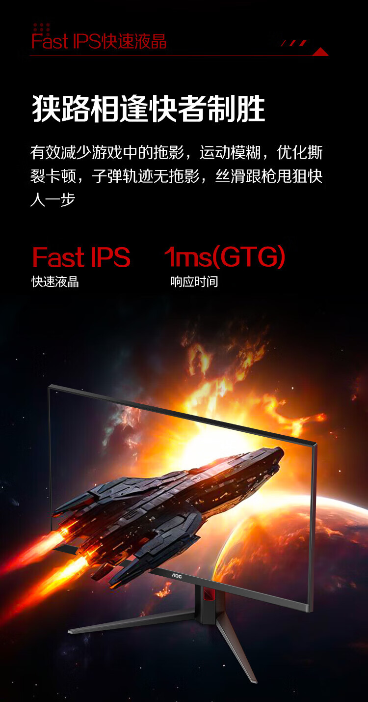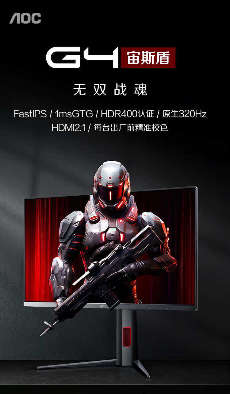 AOC 27英寸2K电竞显示器 FastIPS快速液晶 0.5ms游戏电脑显示屏幕宙斯盾HDR10 【升级版】2K原生320Hz Q27G4S