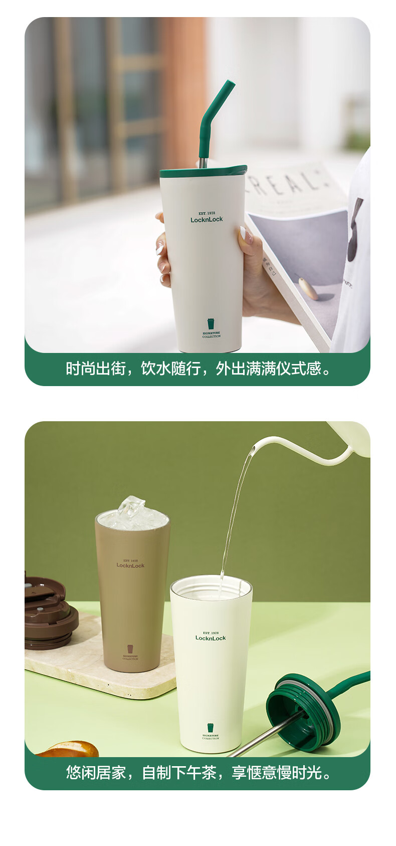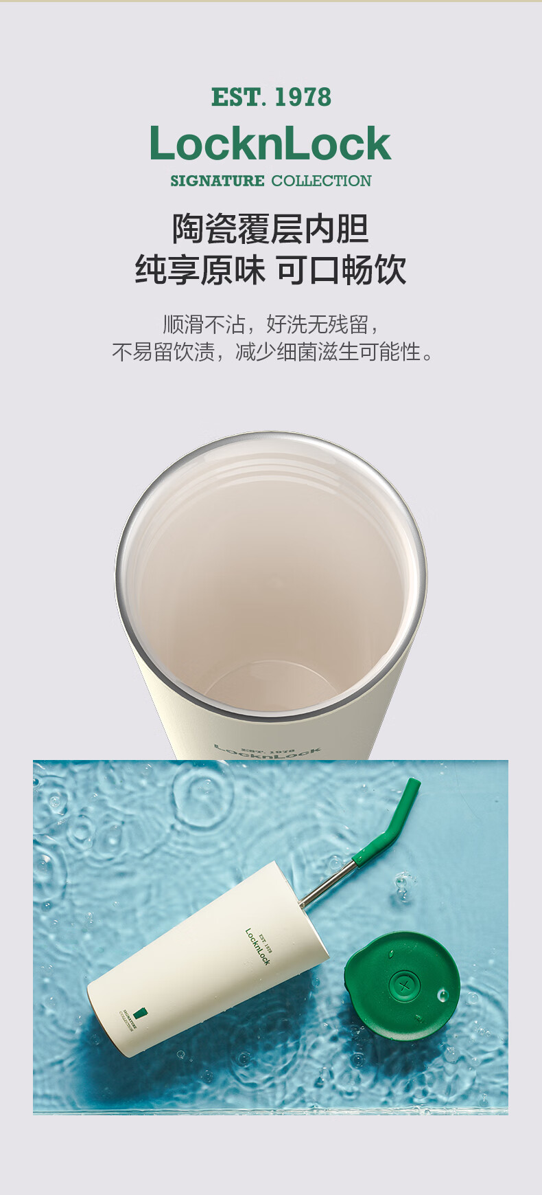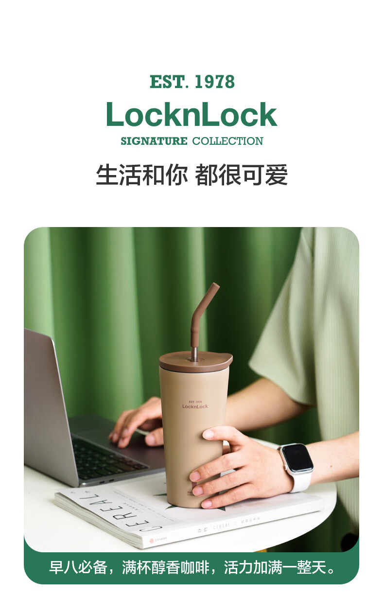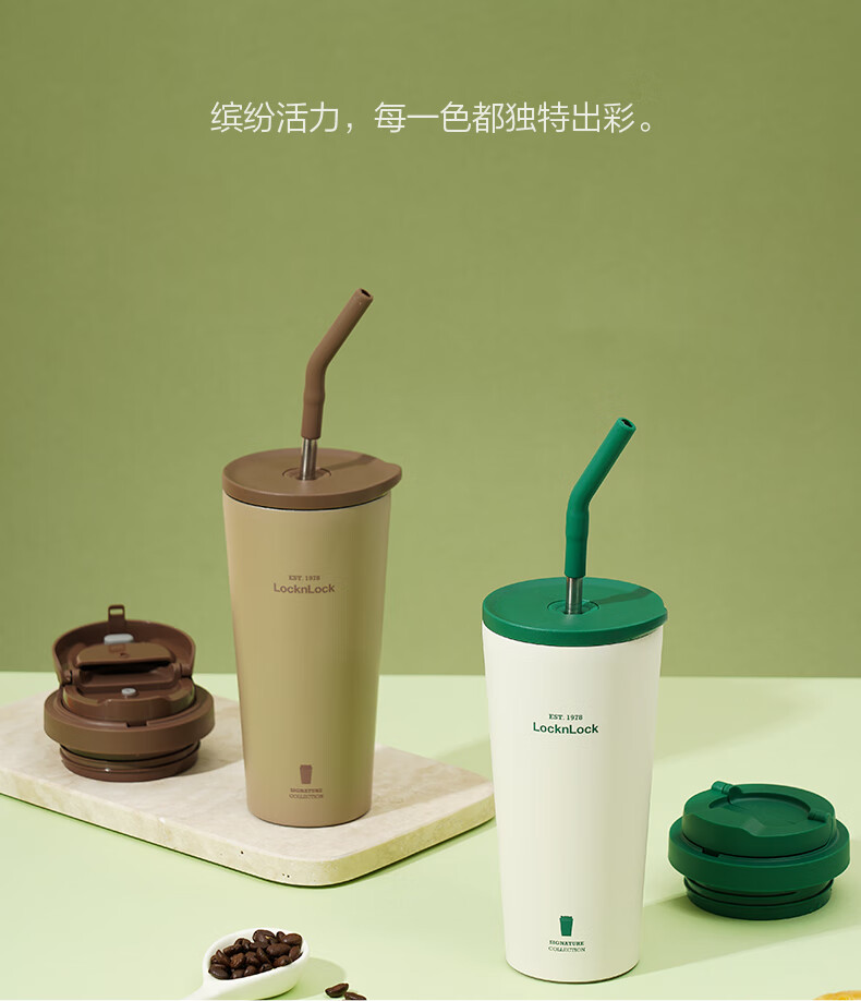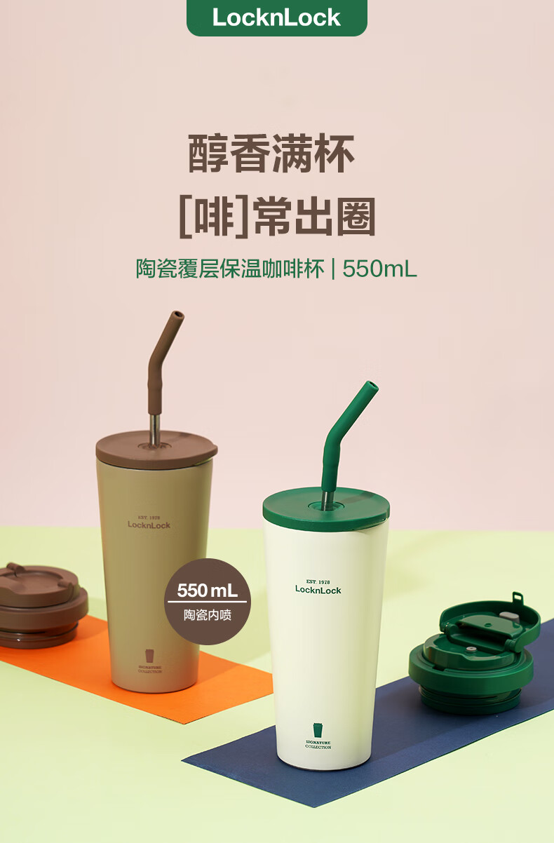 乐扣乐扣(LOCK&LOCK)陶瓷覆层保温保冷咖啡杯简约男女水杯双盖两用带吸管550ML白色
