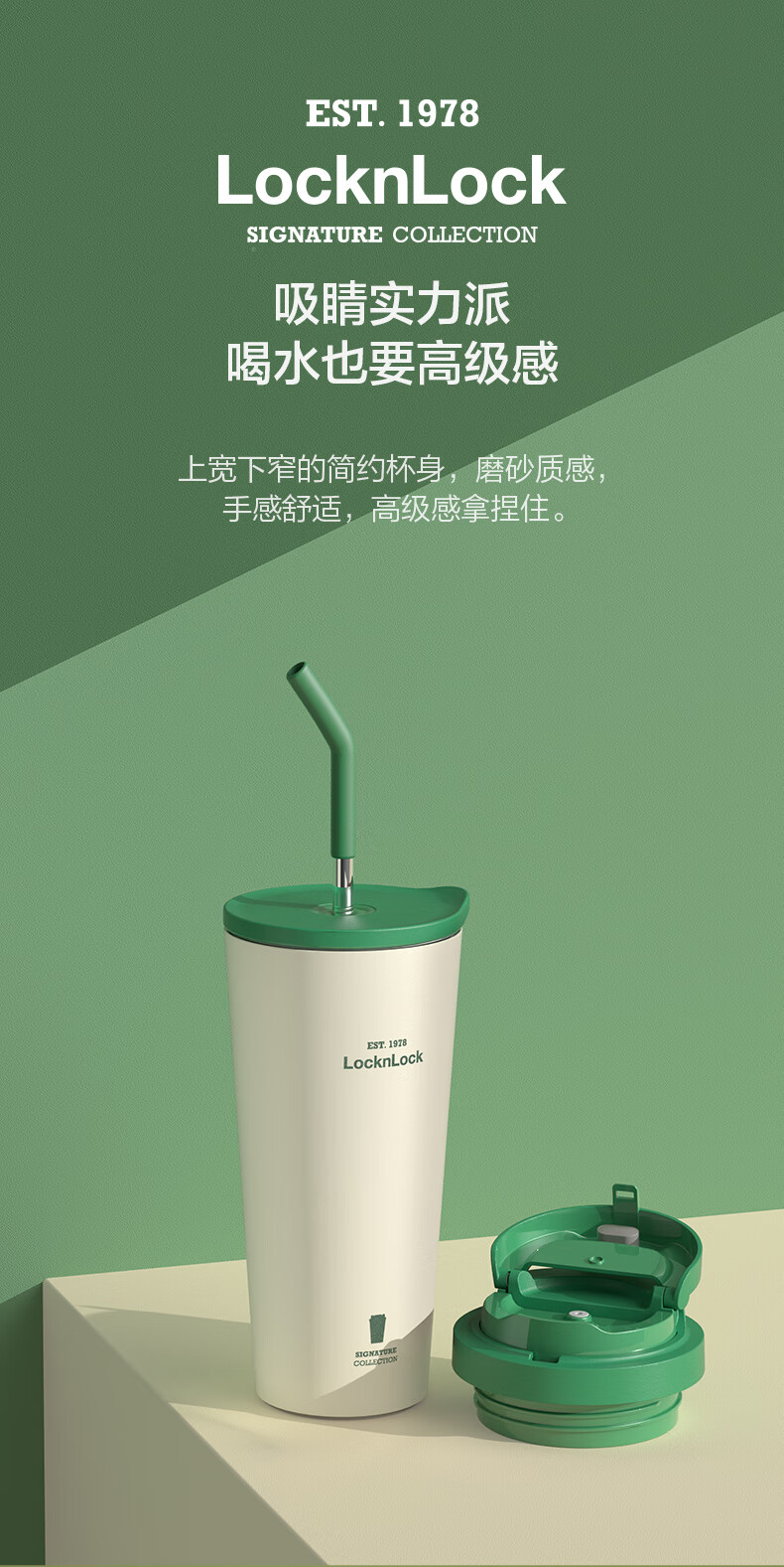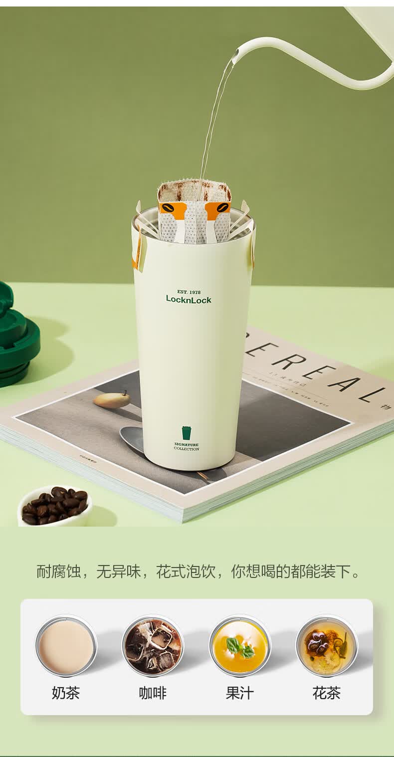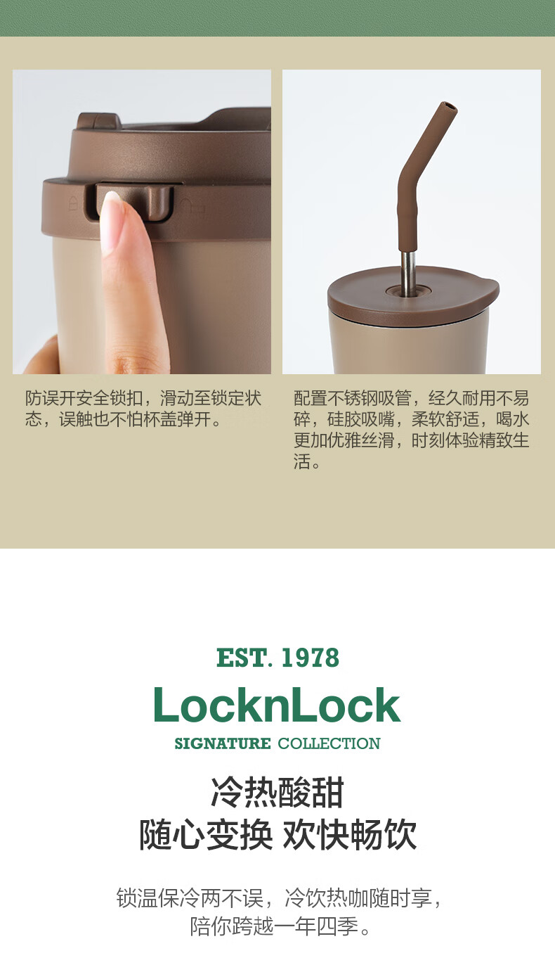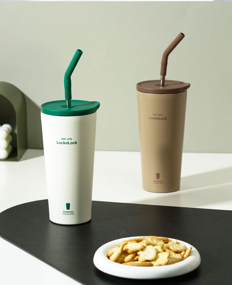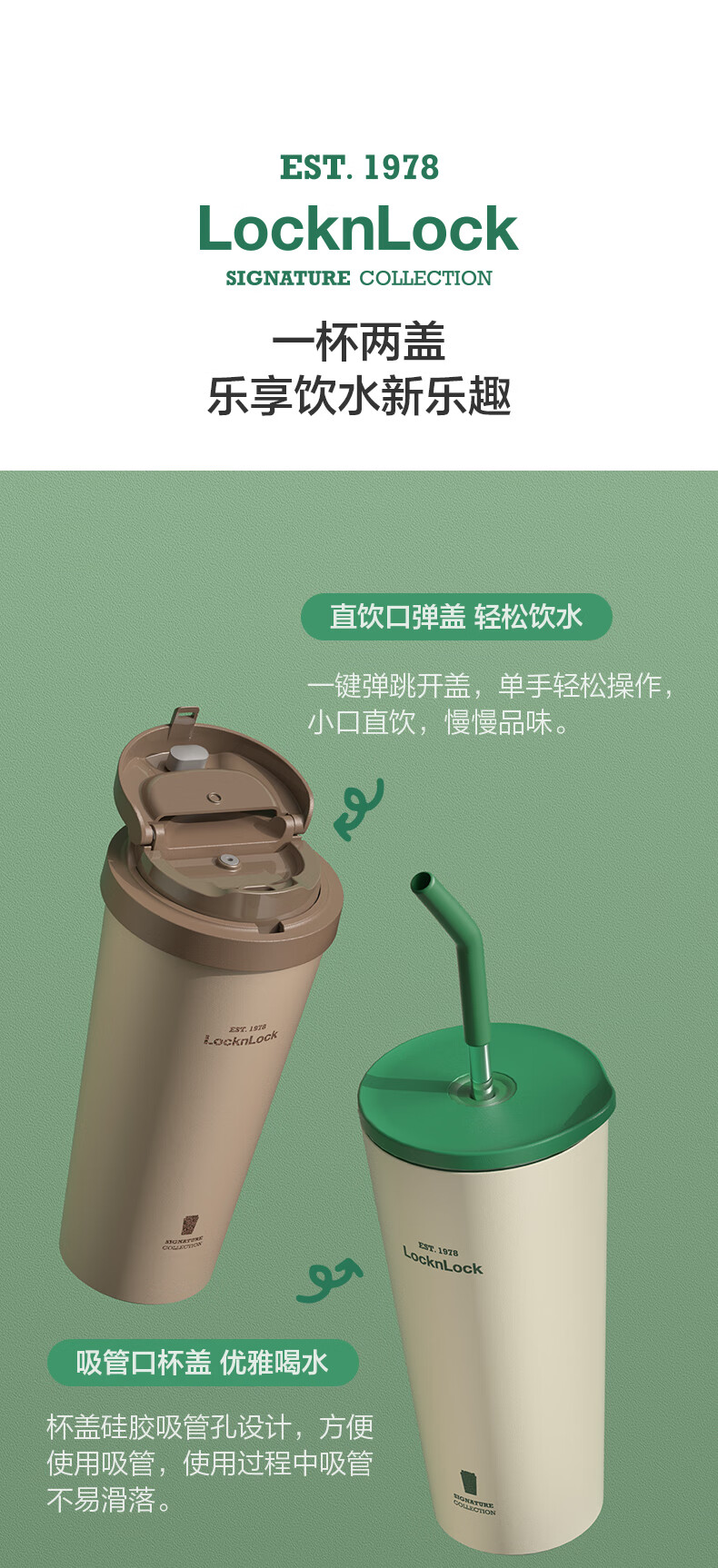 乐扣乐扣(LOCK&LOCK)陶瓷覆层保温保冷咖啡杯简约男女水杯双盖两用带吸管550ML白色