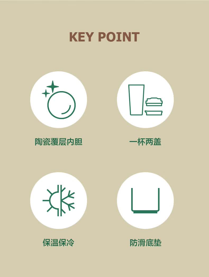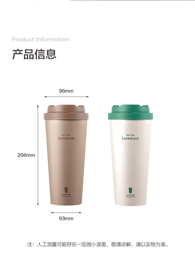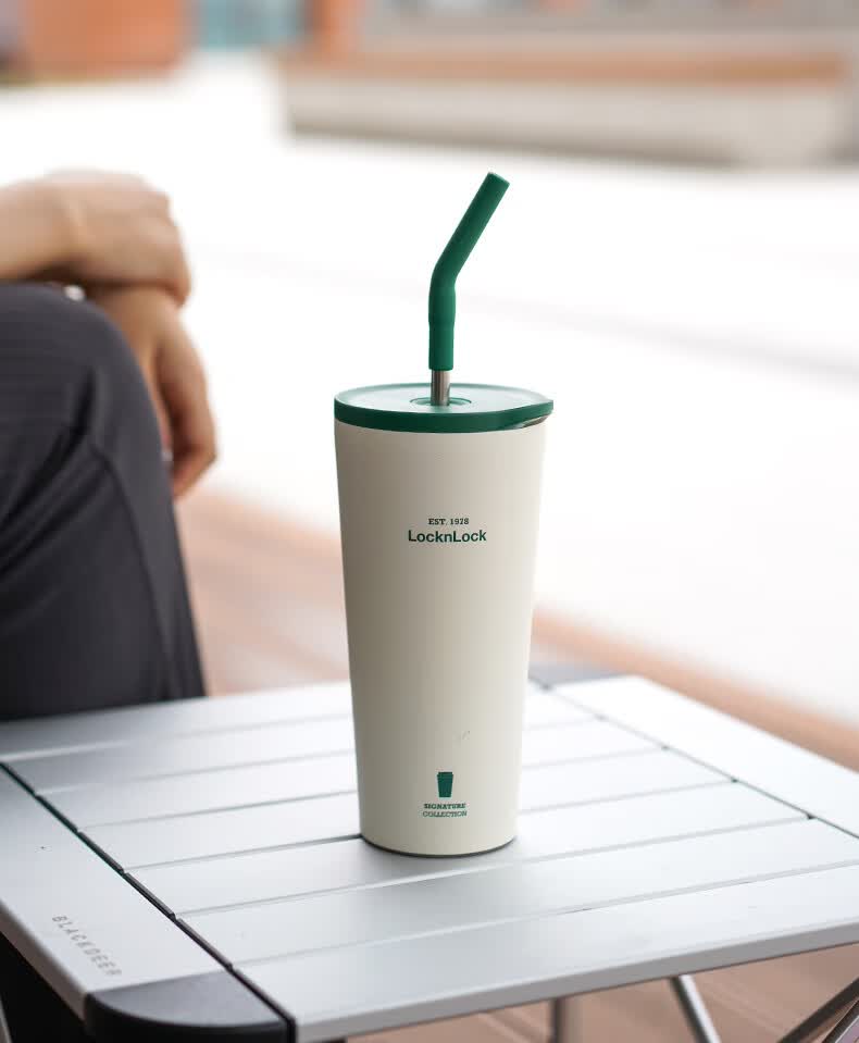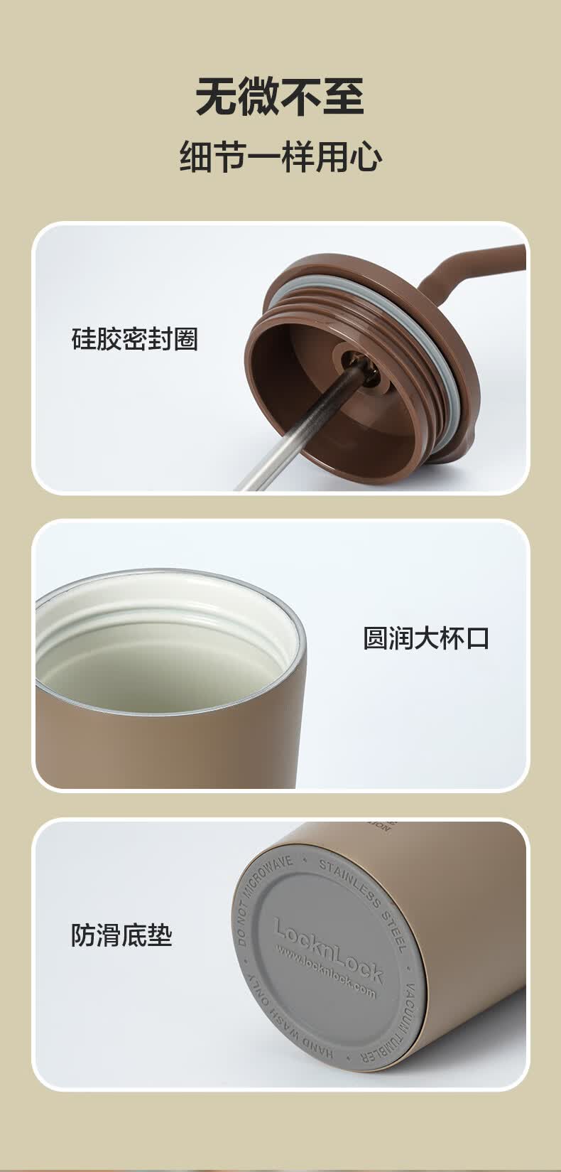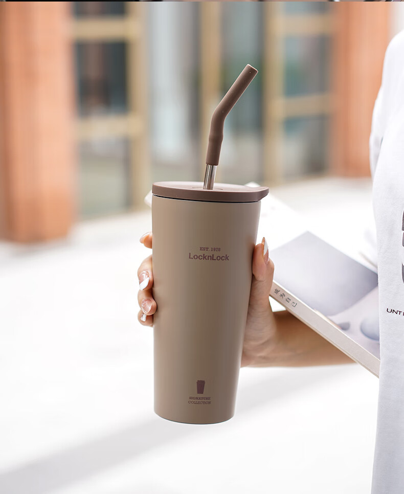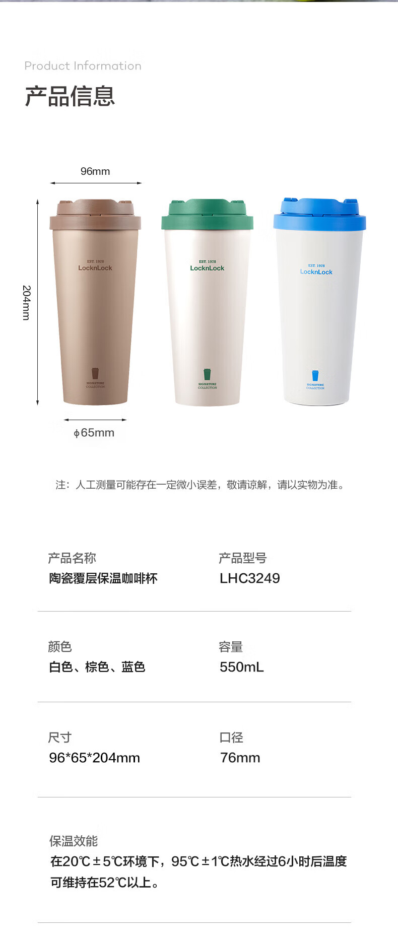 乐扣乐扣(LOCK&LOCK)陶瓷覆层保温保冷咖啡杯简约男女水杯双盖两用带吸管550ML白色