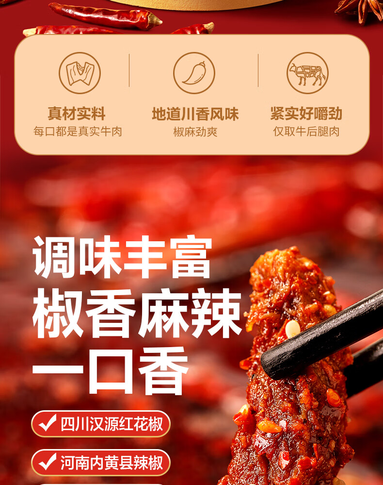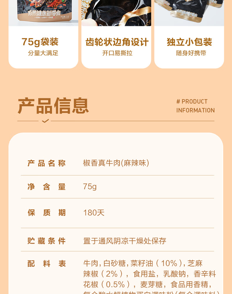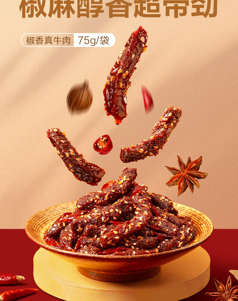 良品铺子椒香真牛肉麻辣味75g 牛肉干肉脯独立小袋装休闲零食