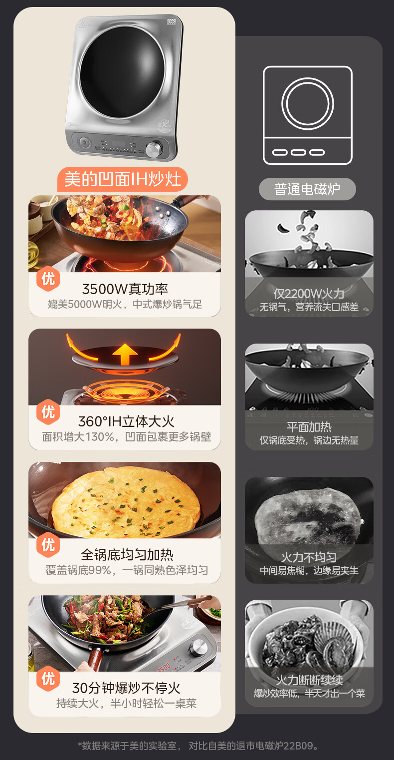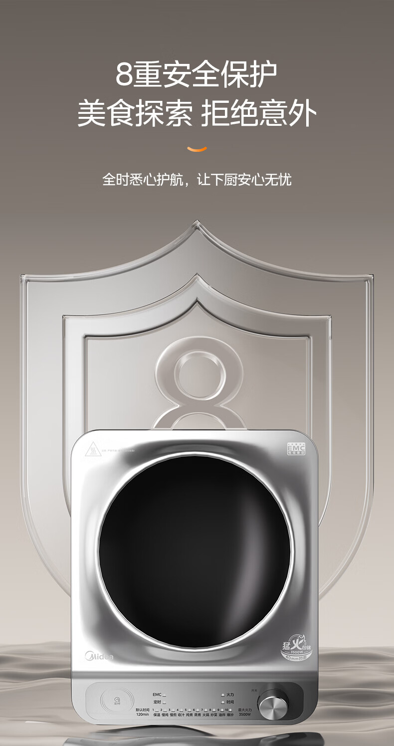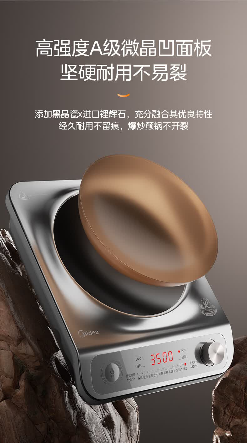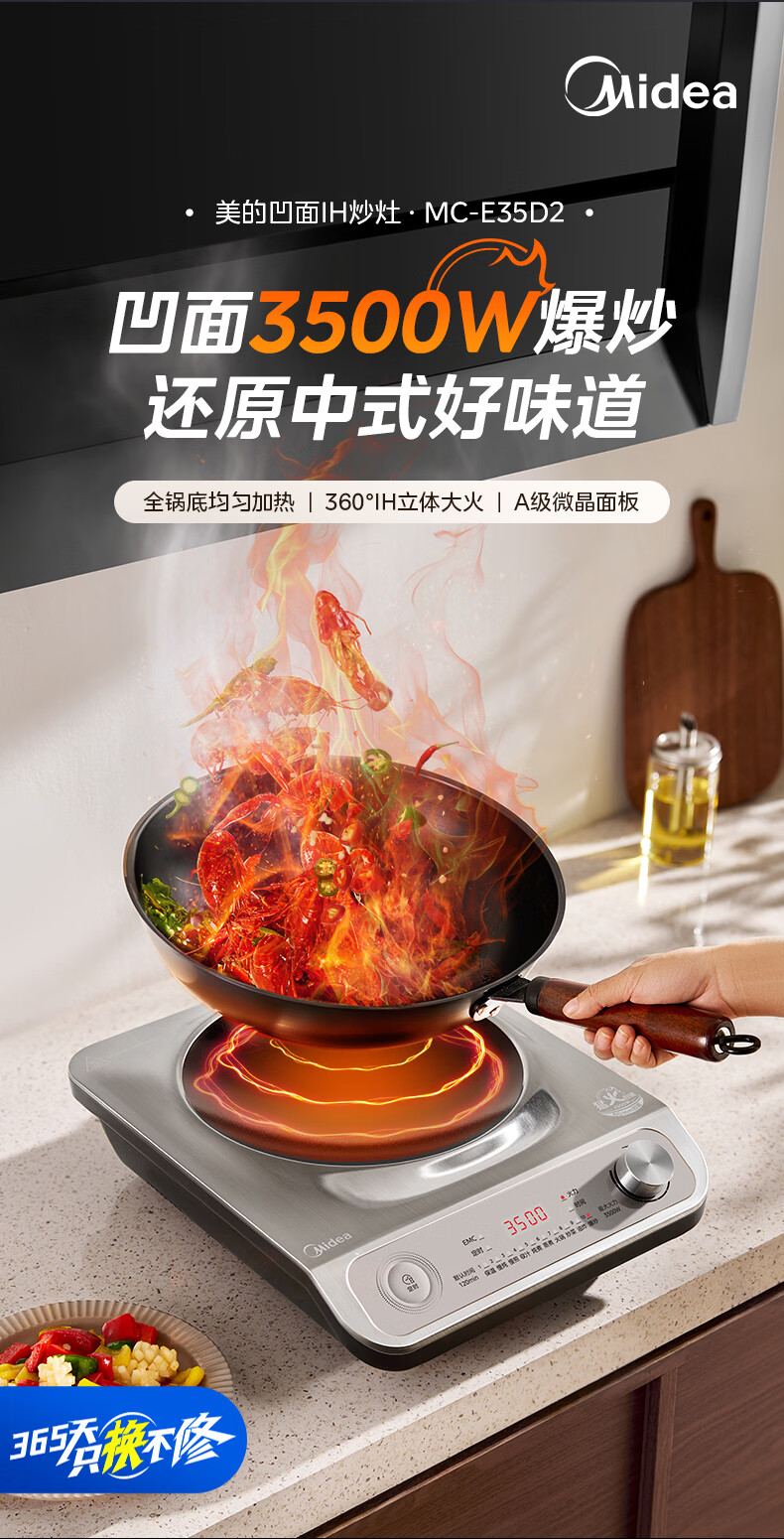 美的(Midea)【价低超头达播9折】电磁炉凹面家用猛火爆炒立体加热电陶炉3500W大功率炒菜耐磨易洁MC-E35D2