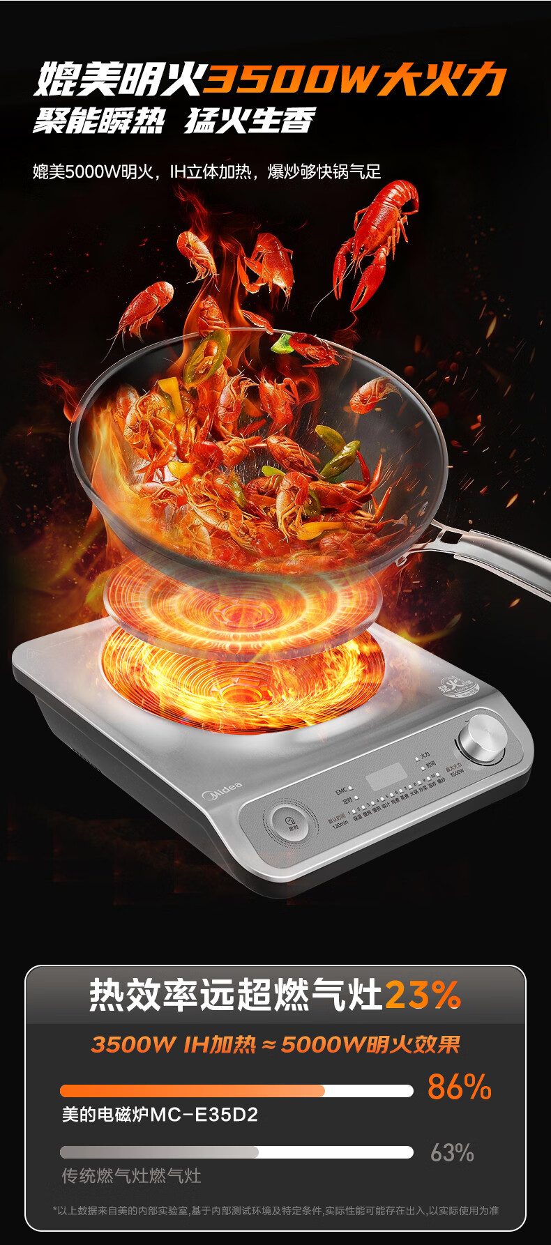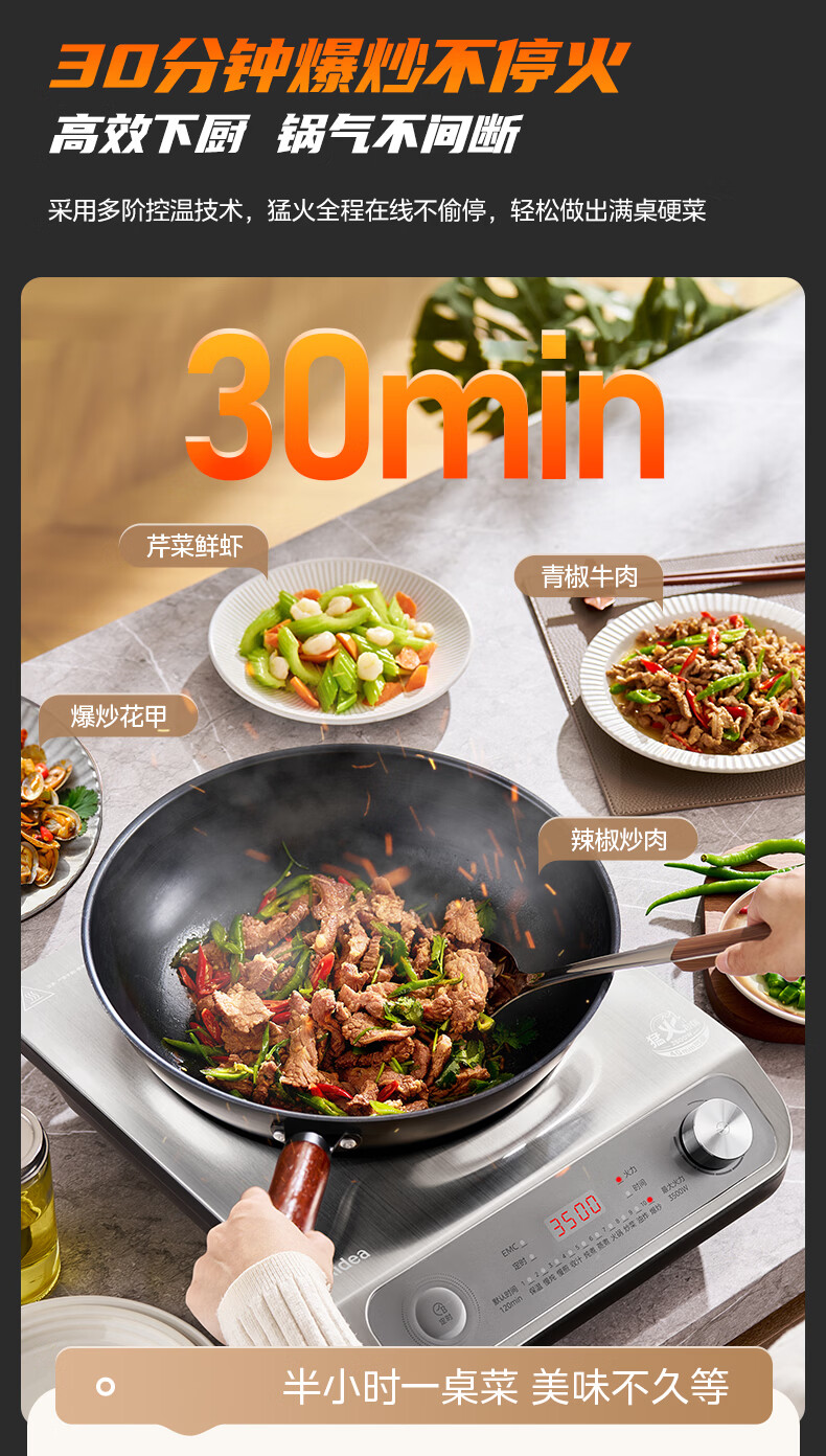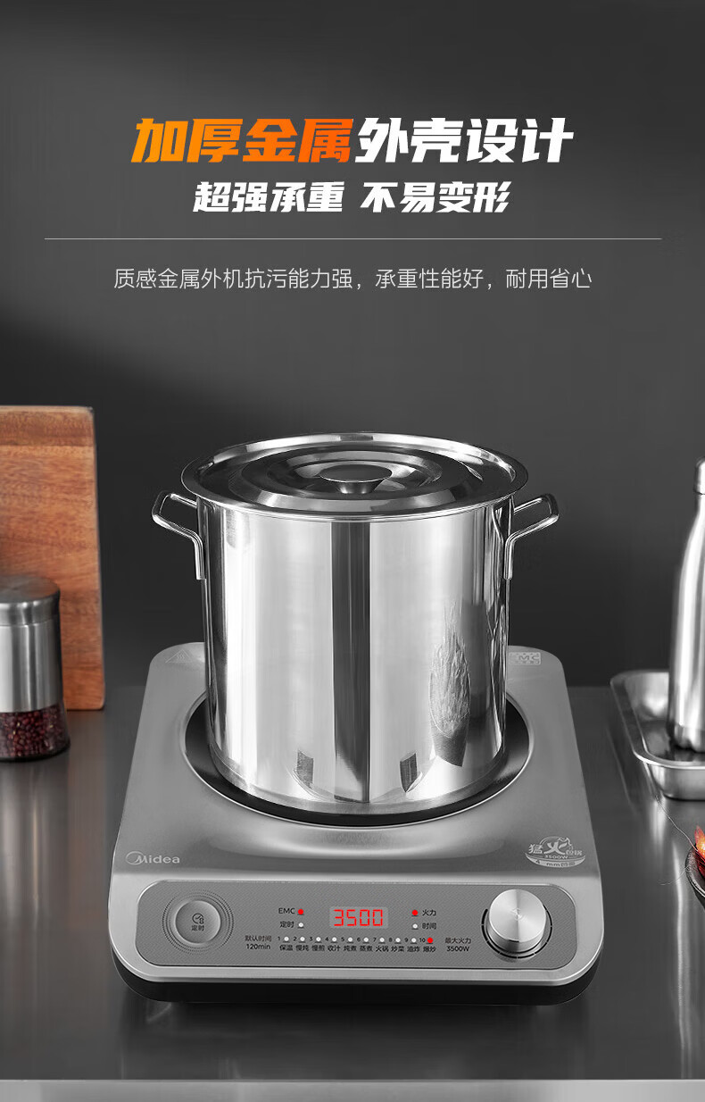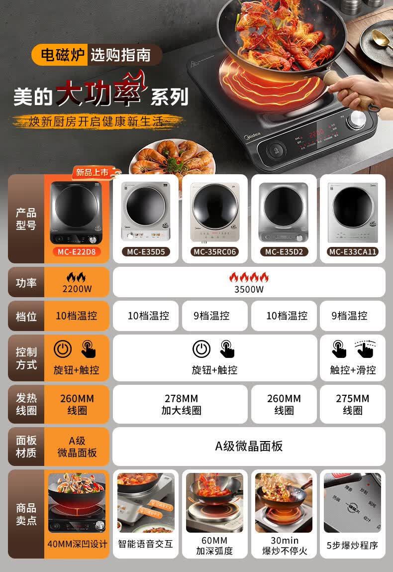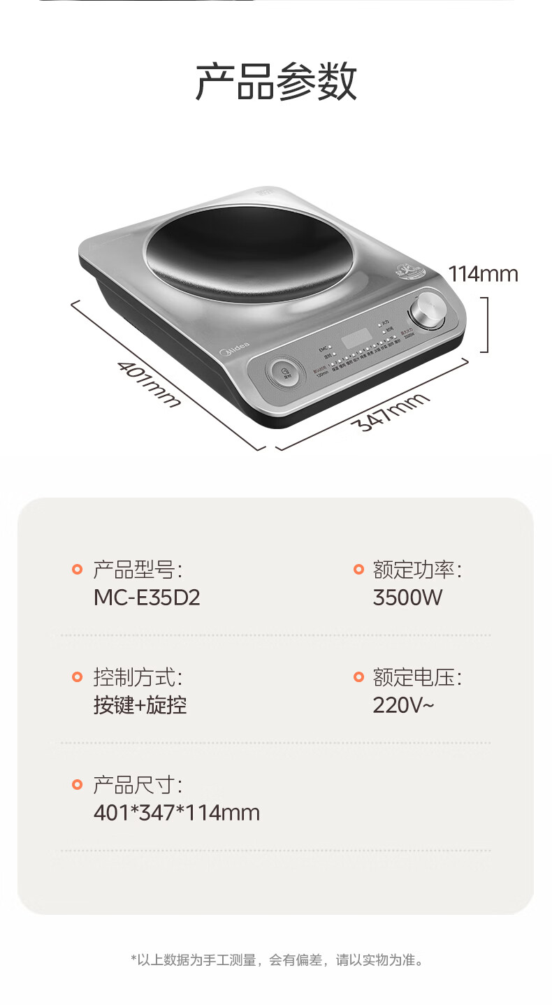 美的(Midea)【价低超头达播9折】电磁炉凹面家用猛火爆炒立体加热电陶炉3500W大功率炒菜耐磨易洁MC-E35D2