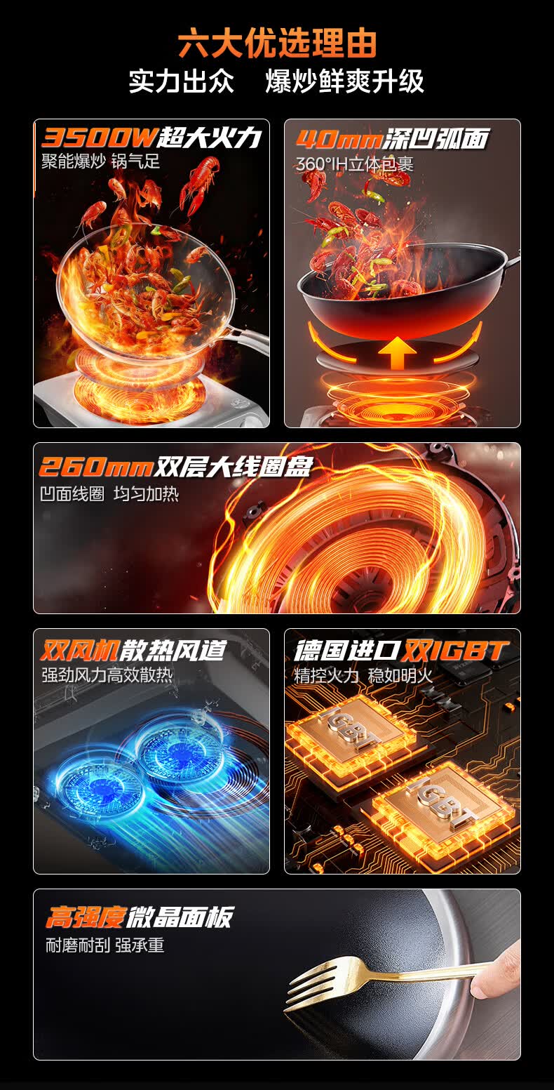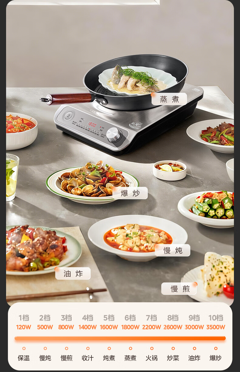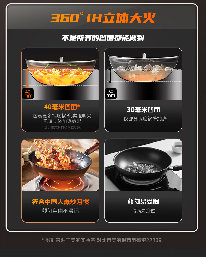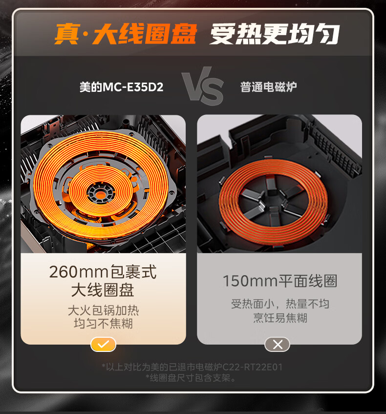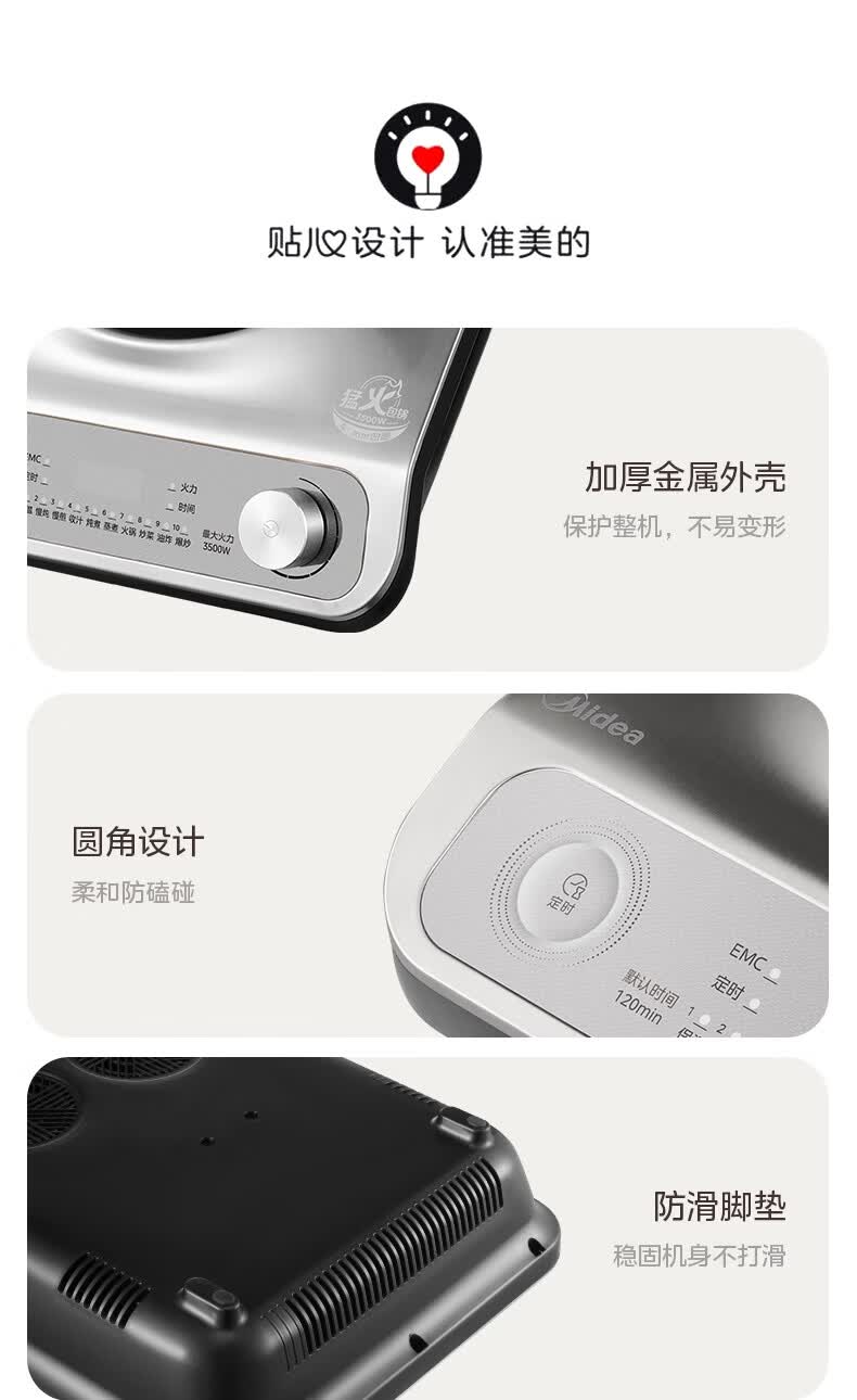 美的(Midea)【价低超头达播9折】电磁炉凹面家用猛火爆炒立体加热电陶炉3500W大功率炒菜耐磨易洁MC-E35D2