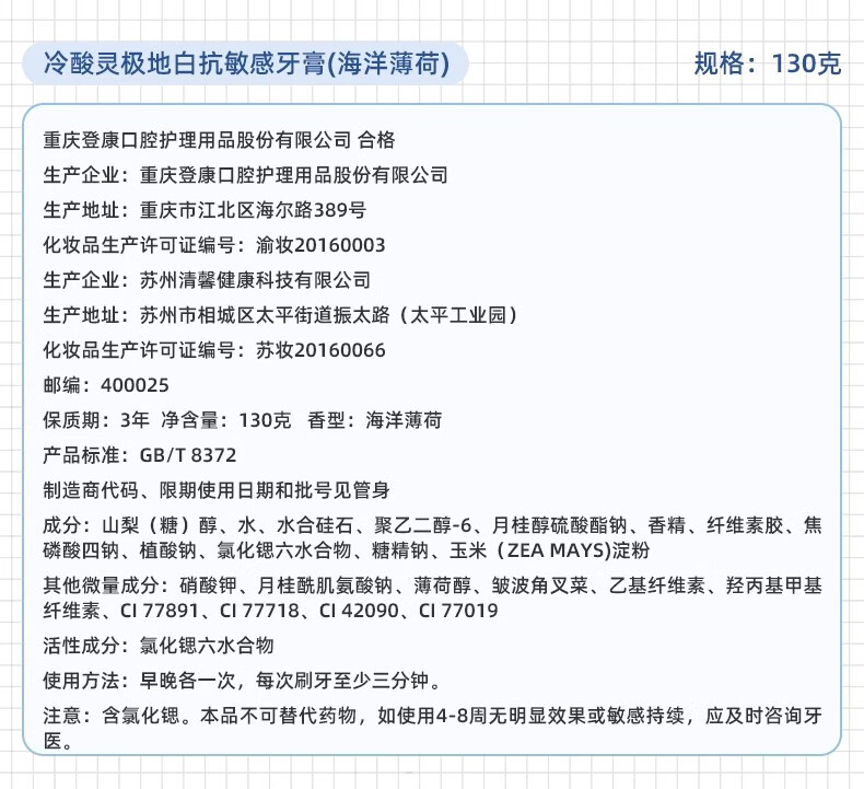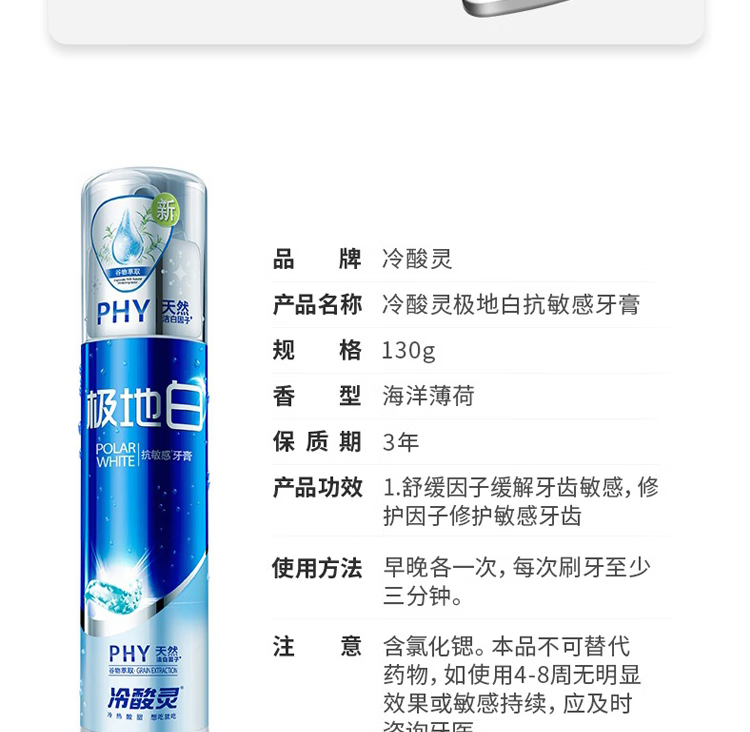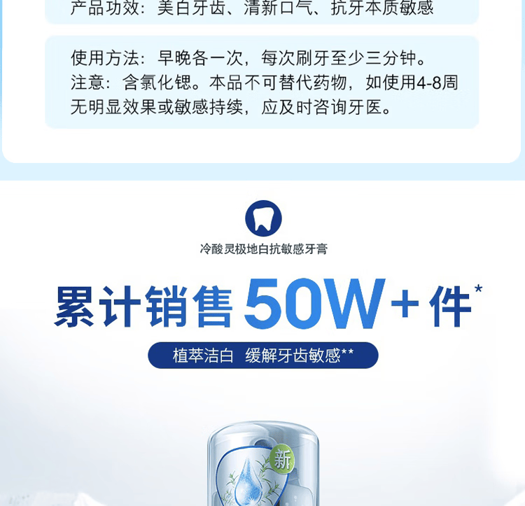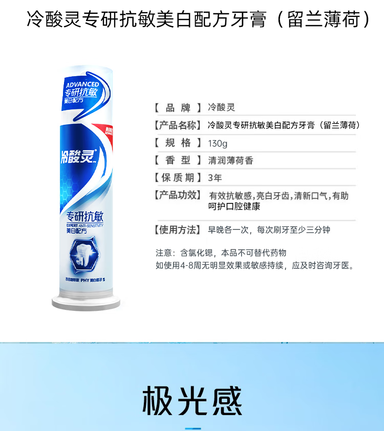 冷酸灵极地白按压式牙膏双重抗敏感牙齿酸痛清新口气美白护龈泵式 按压泵式极地白牙膏*3支+大师香氛液100g*2袋