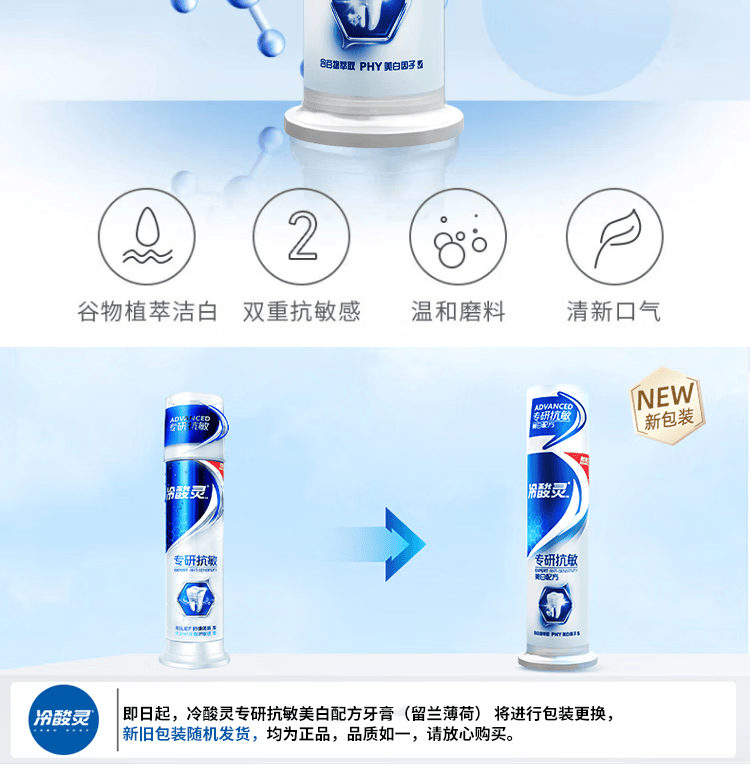 冷酸灵泵式双重抗敏感极地白极光感美白牙齿酵素配方抗敏感舒敏脱敏牙膏 抑菌140g+固齿140g+清火120g*2+护敏120g*2