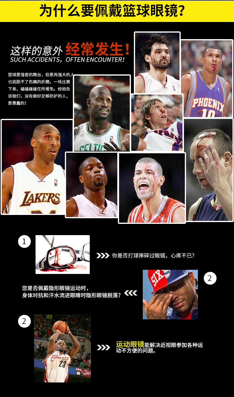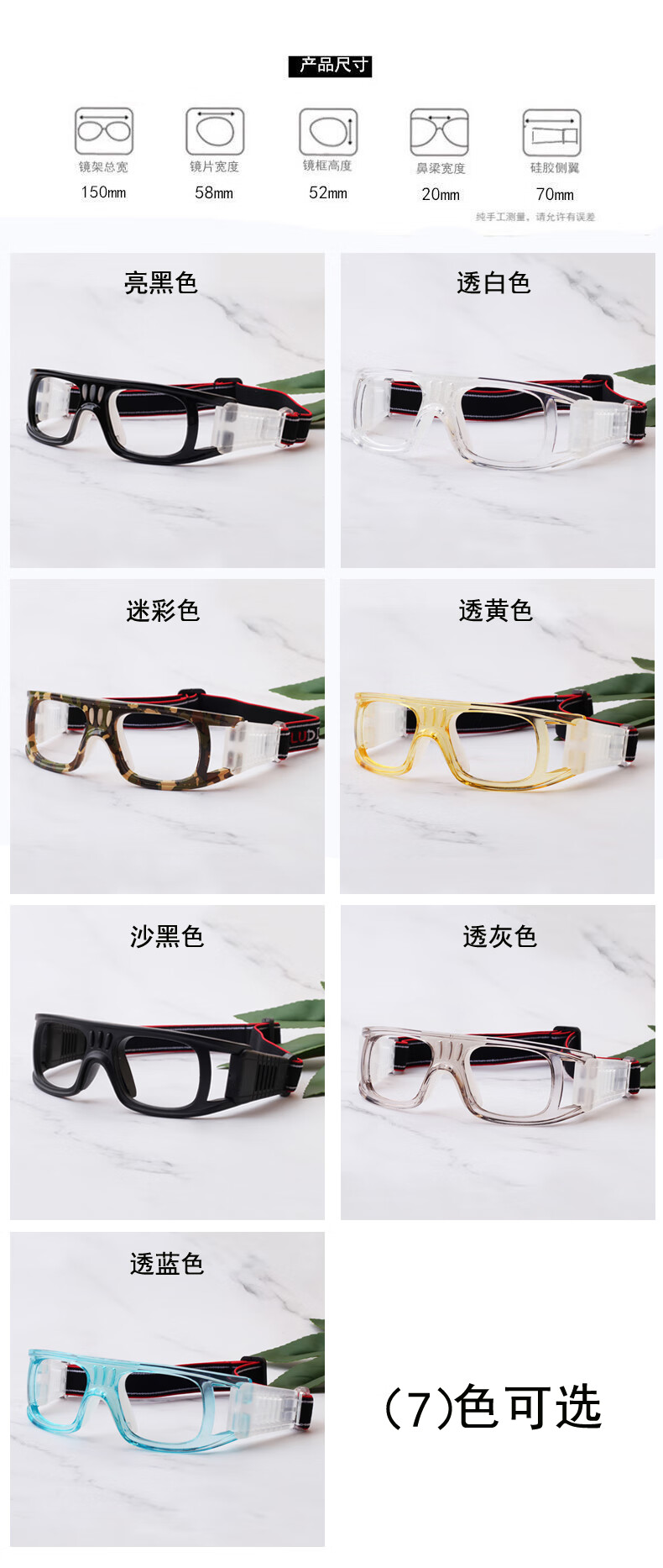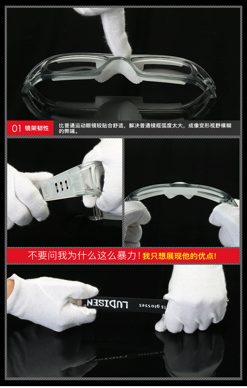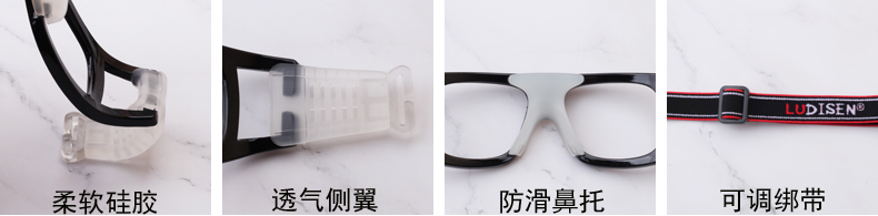 路迪森(LUDISEN)运动近视眼镜打篮球镜框配近视足球眼镜防撞击护目镜可配有度数男 框+配1.61超韧镜片(留言度数)