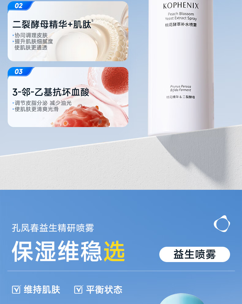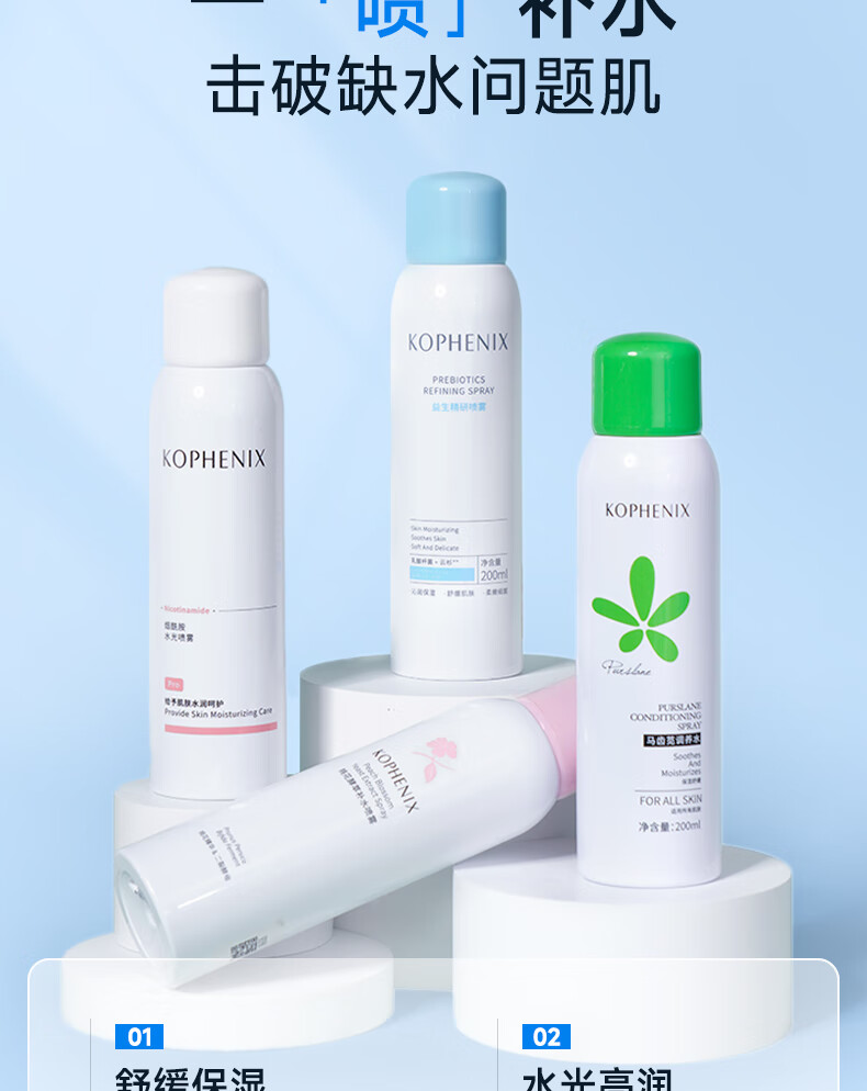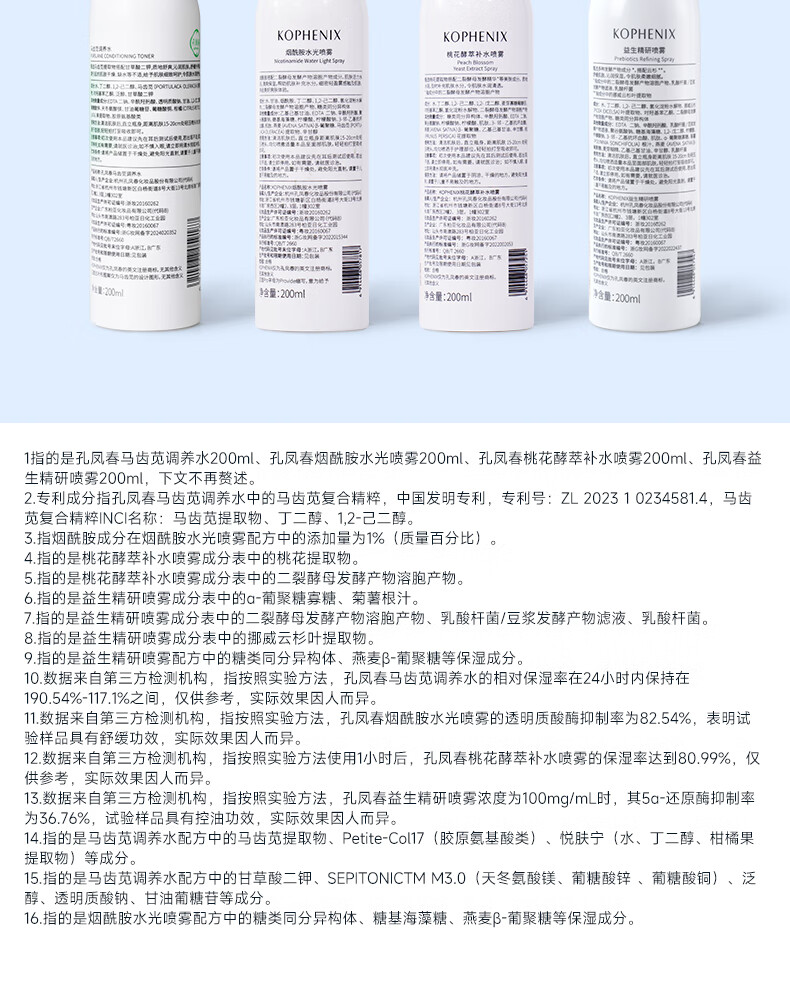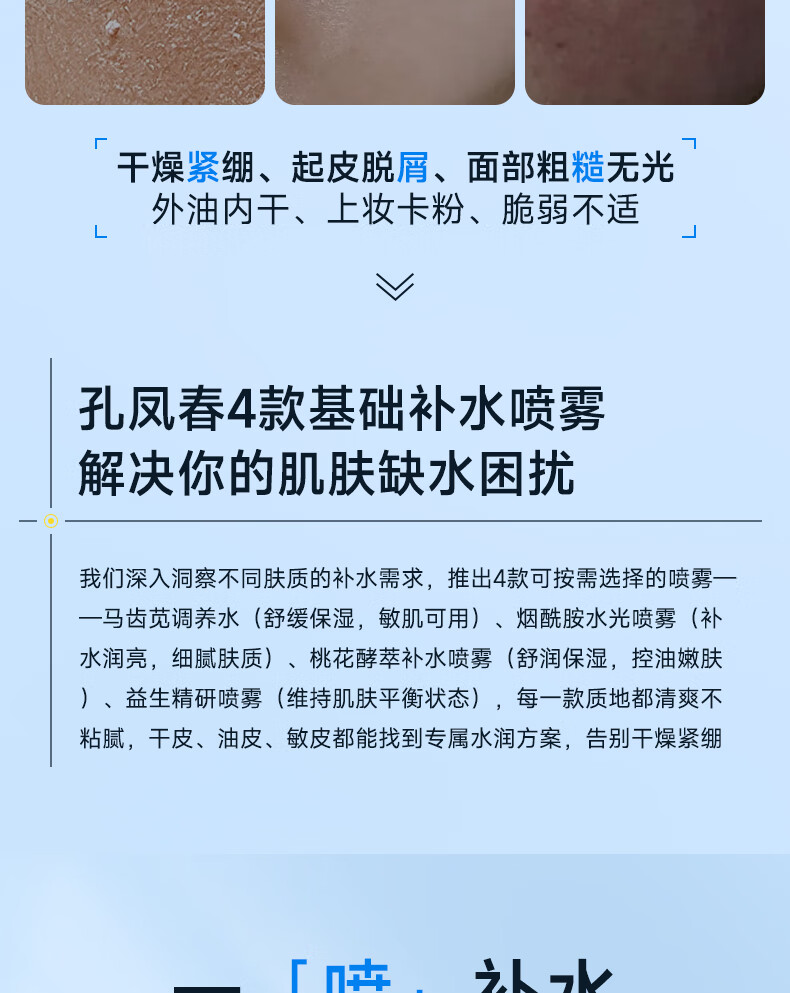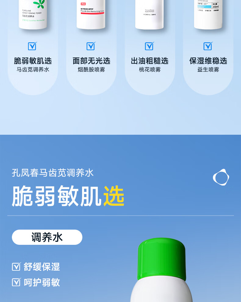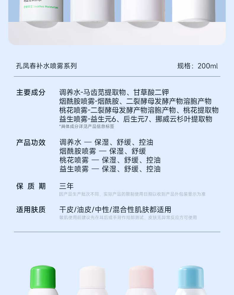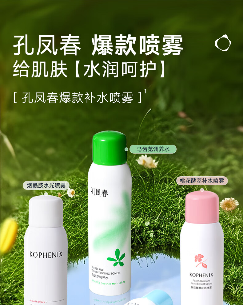孔凤春马齿苋舒缓补水喷雾保湿控油调养水烟酰胺喷雾提亮肤色桃花爽肤水 200ml(烟酰胺水光喷雾)
