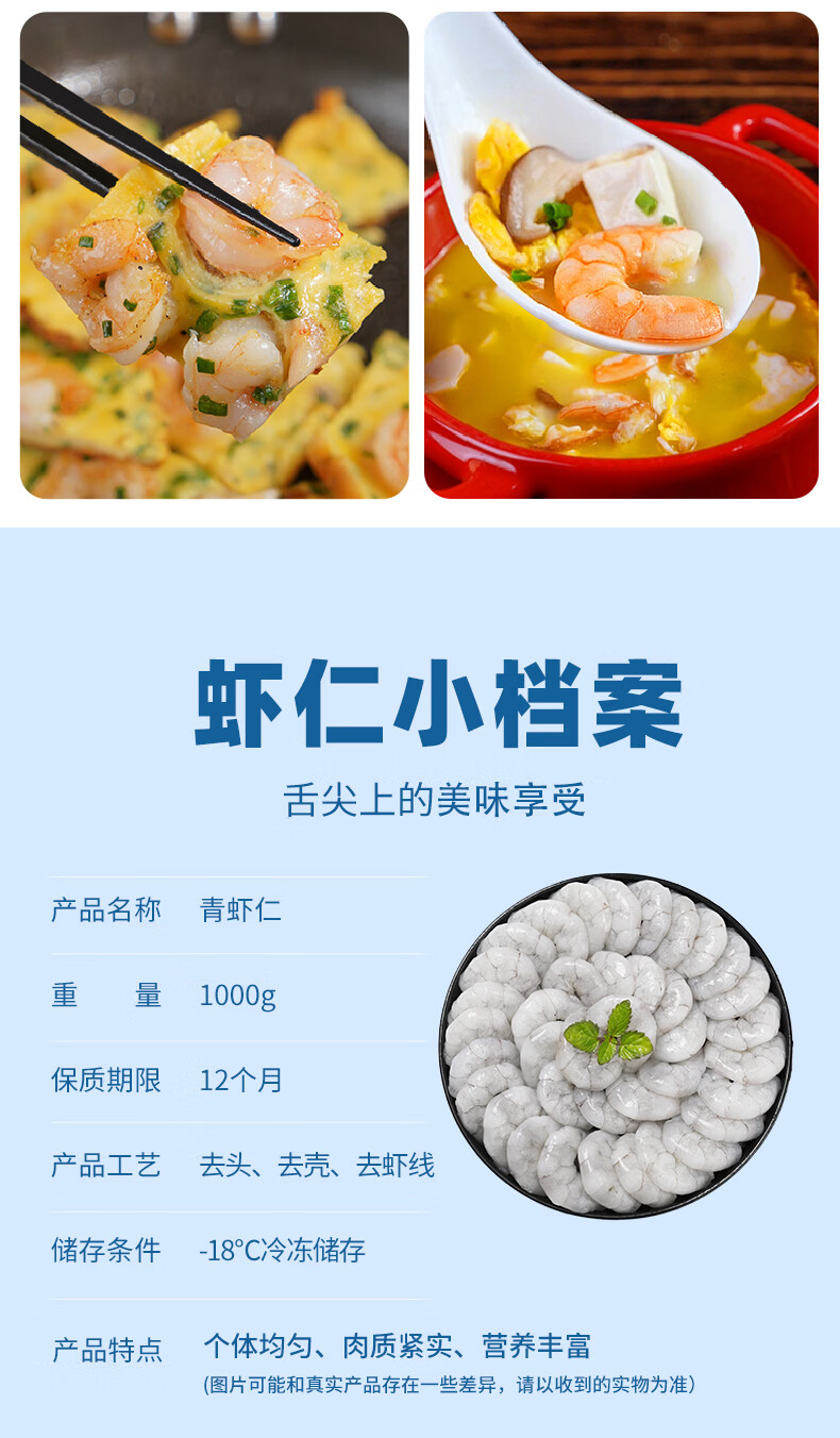 鲜谣国产大号青虾仁1kg 71/90规格 已去虾线 生鲜虾类 虾仁71/90规格 2斤(净重)