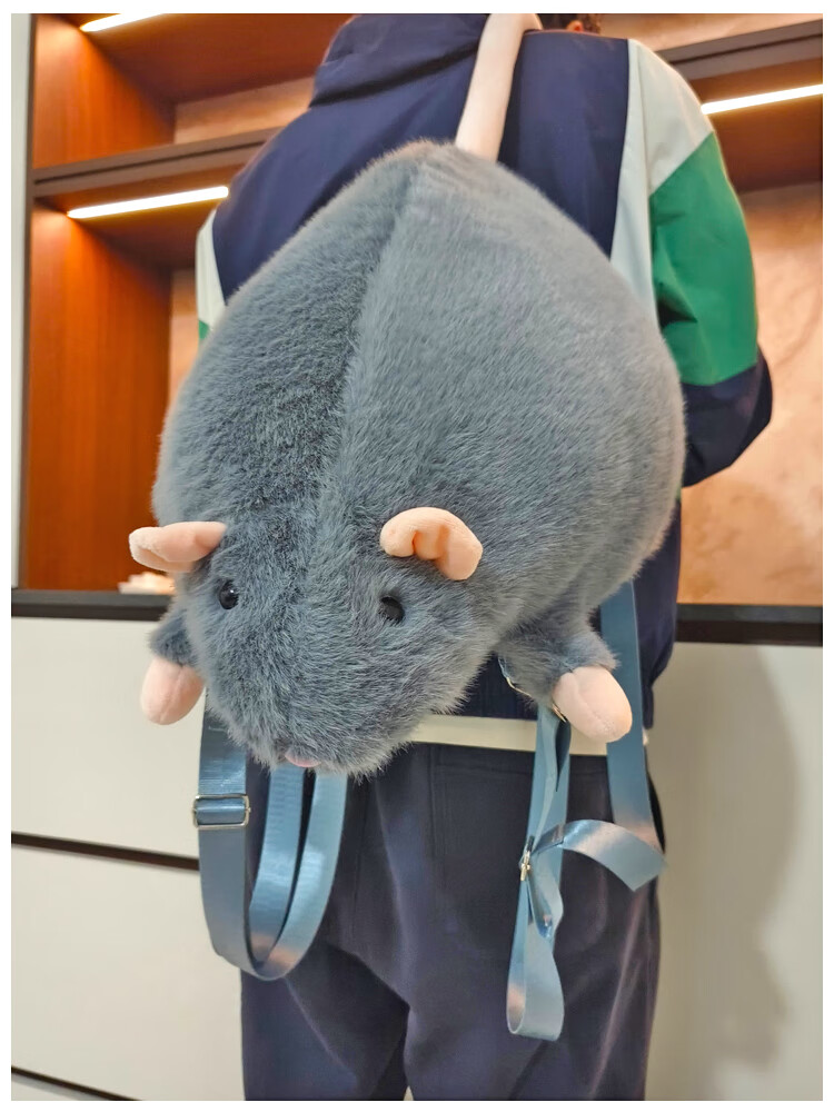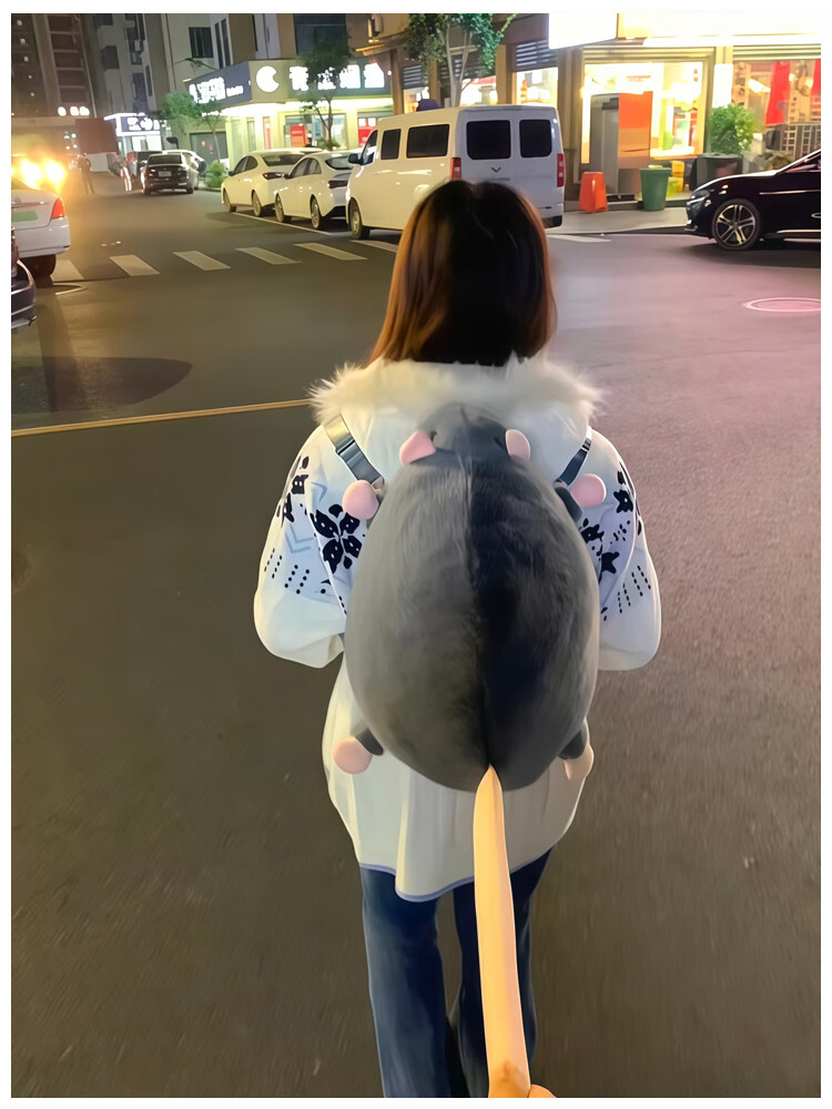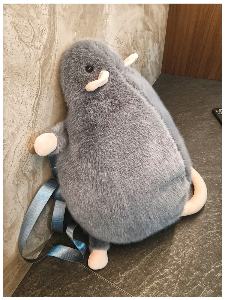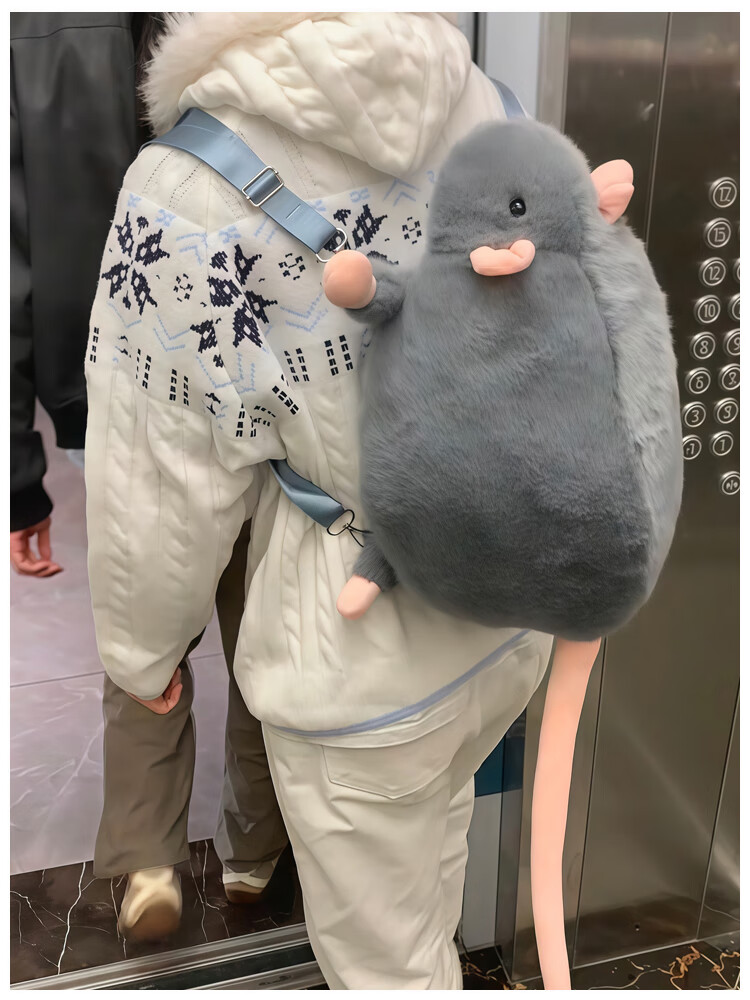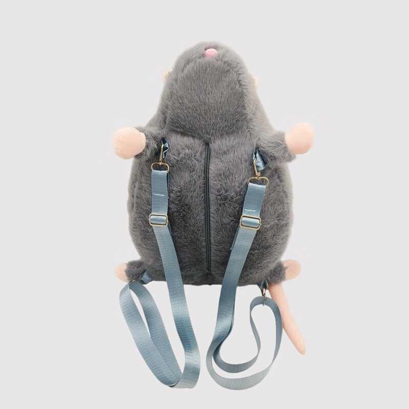 CLBD花枝鼠双肩包女小背包高颜值ins韩版可爱秋冬毛绒学生大容量书包 灰色 大号