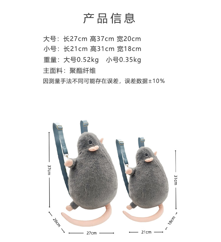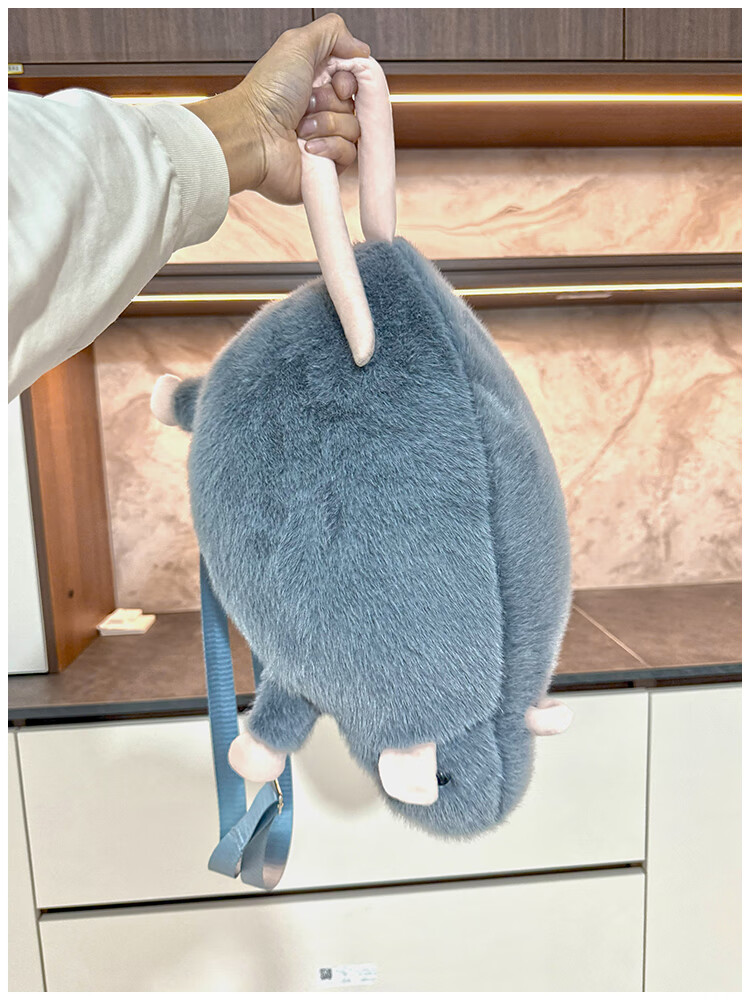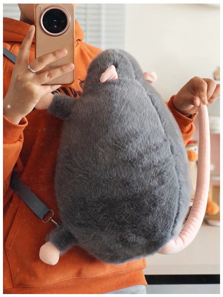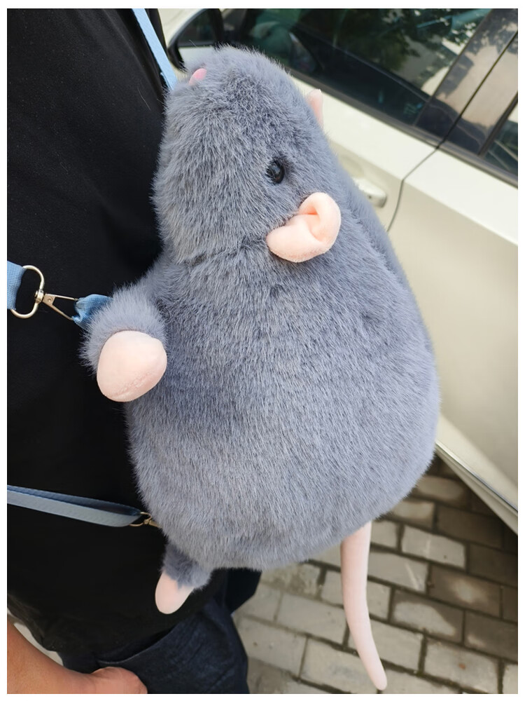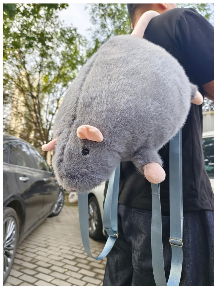 CLBD花枝鼠双肩包女小背包高颜值ins韩版可爱秋冬毛绒学生大容量书包 灰色 大号